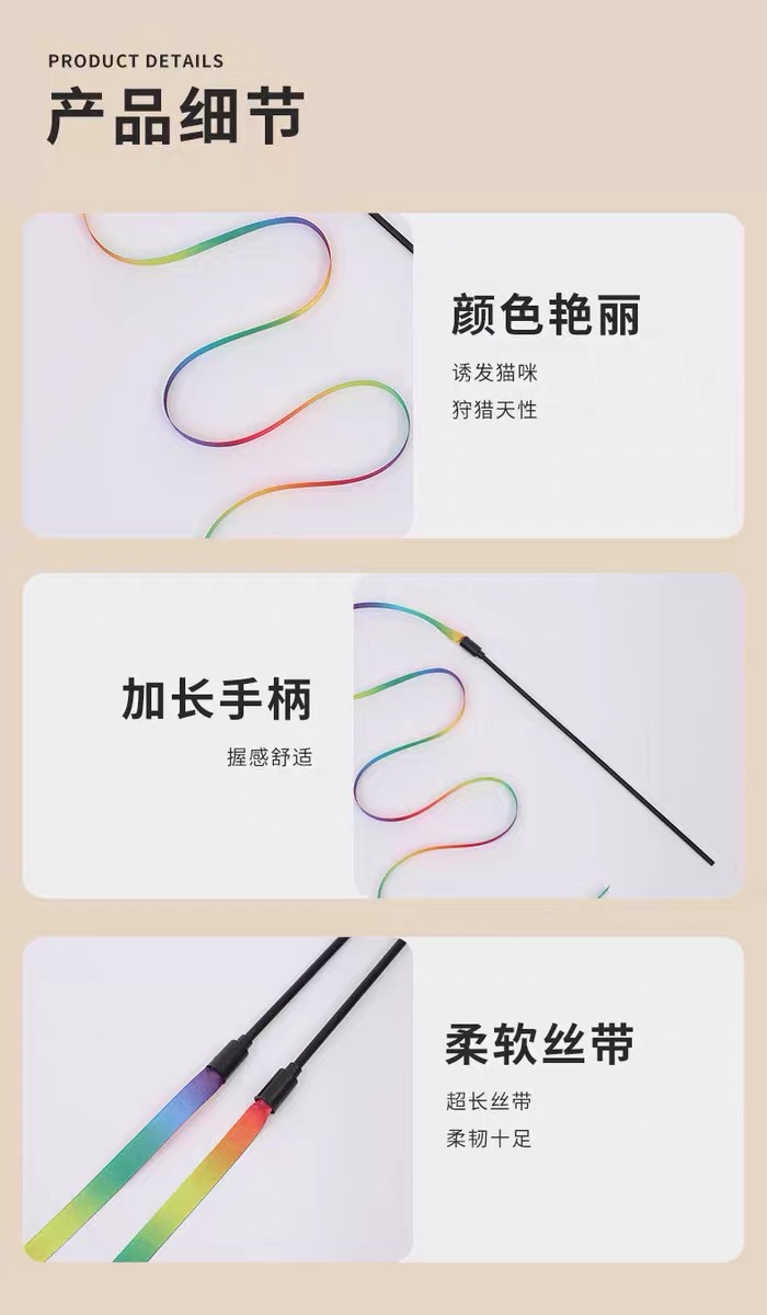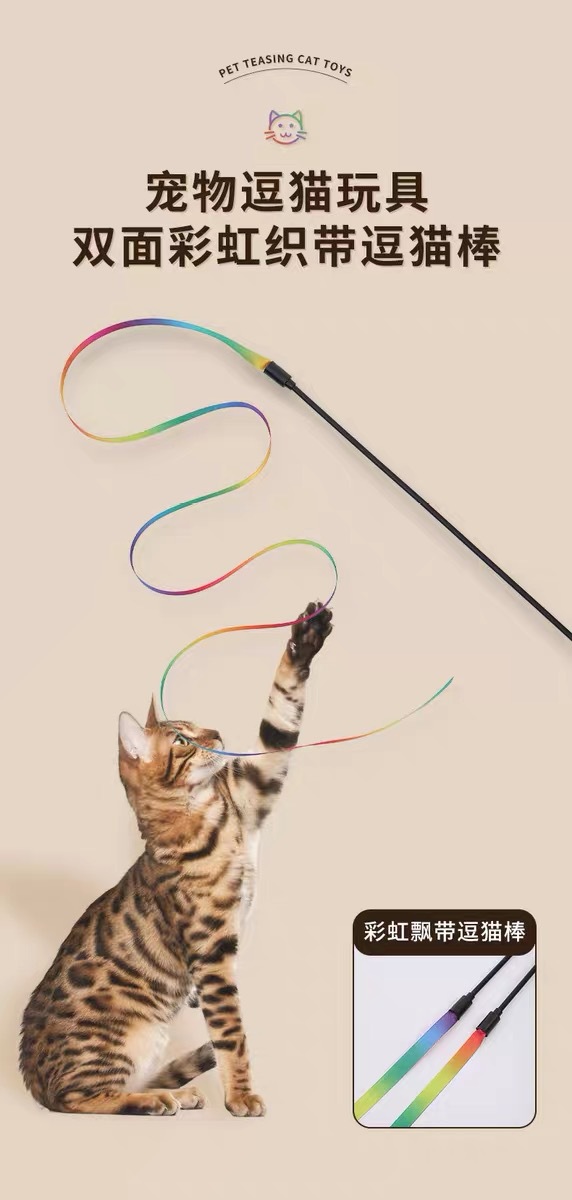고양이 장난감 고양이 스틱 긴 막대 무지개 버킷 고양이 스틱 고양이 양면 웨빙 재미있는 장난감 새끼 고양이 애완 동물 장난감