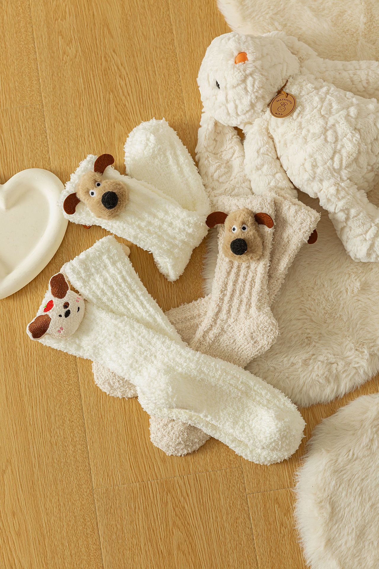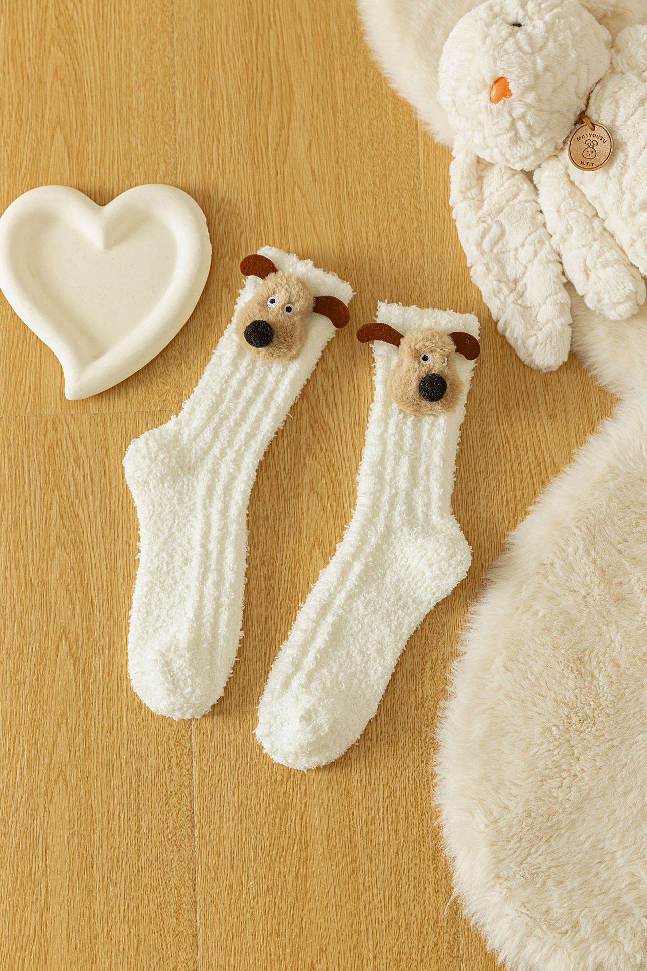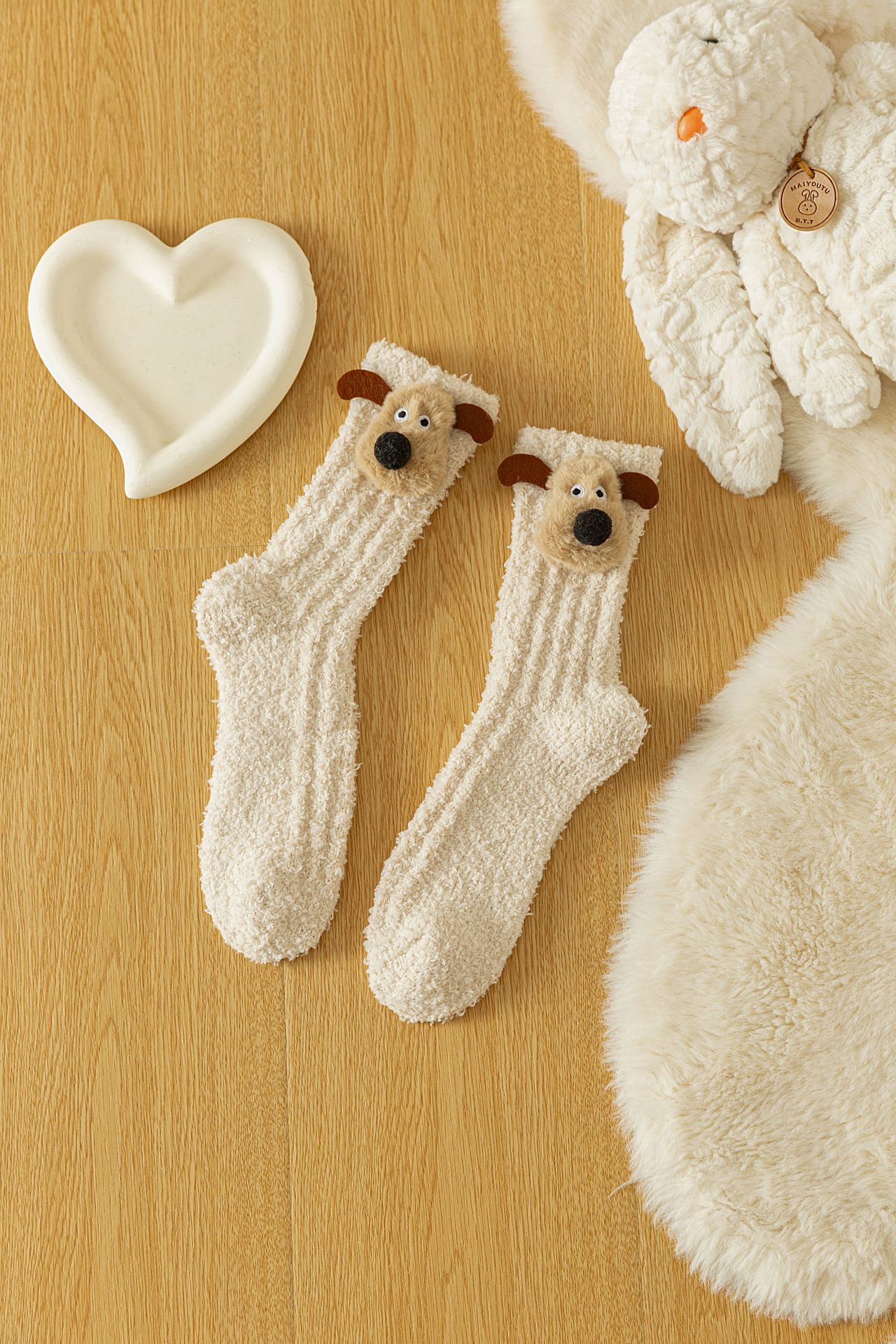 한국 동대문 산호 양털 보석 양말 여성 만화 항공기 개 수면 양말 가을과 겨울 기모 두꺼운 양말