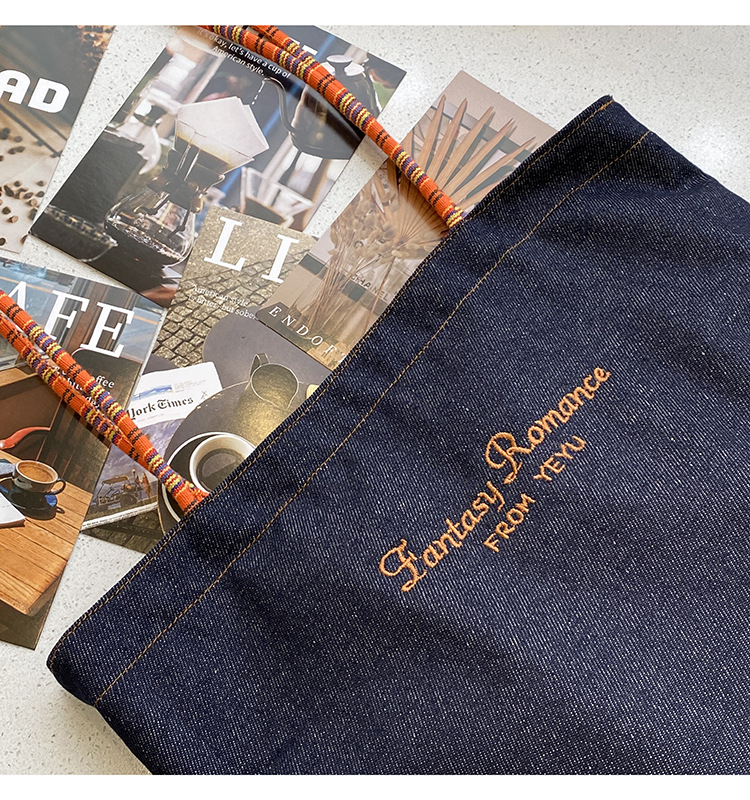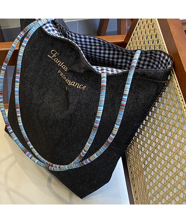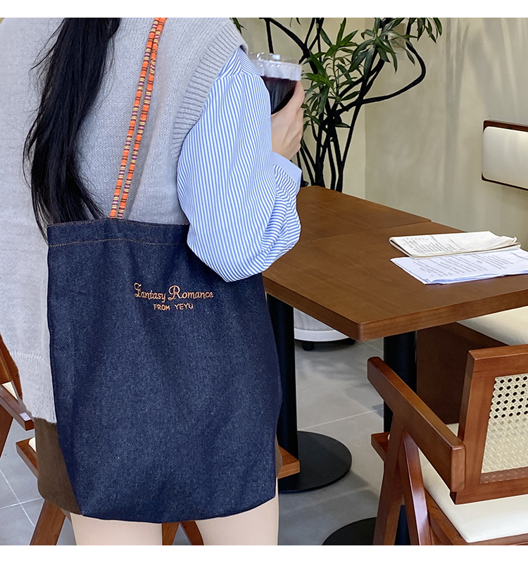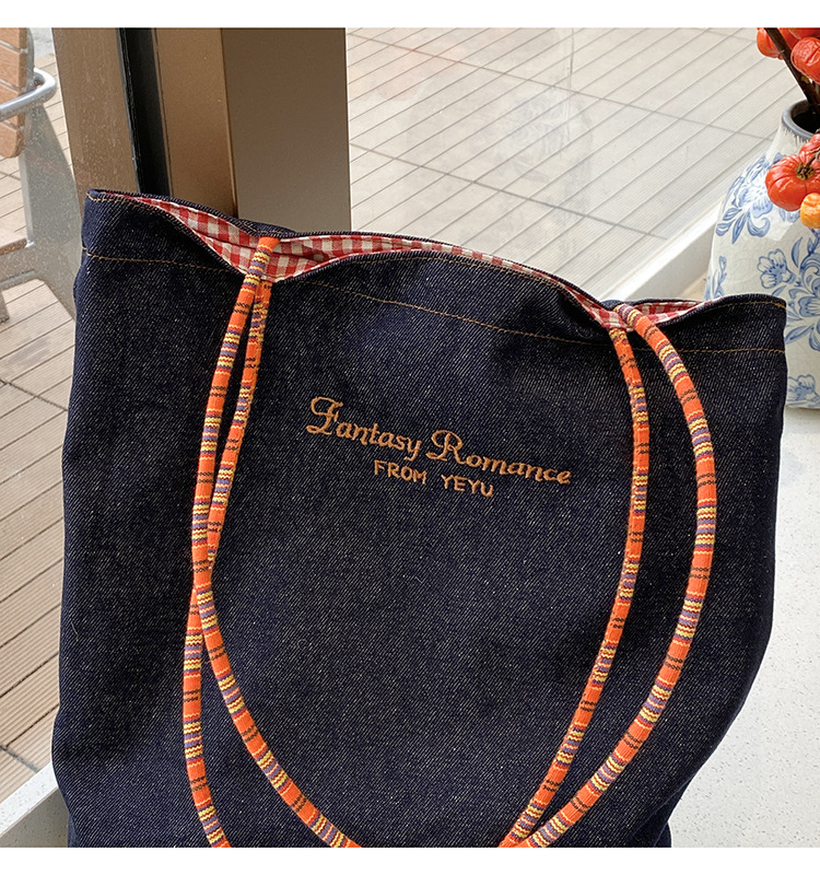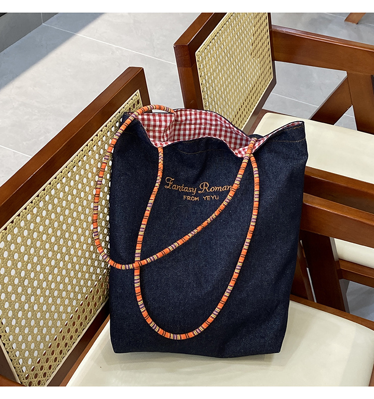 아메리칸 스타일 레트로 데님 이중 목적 양면 어깨 배낭 대용량 올 매치 통근 토트 백 Instagram 새로운 스타일스토어 가기