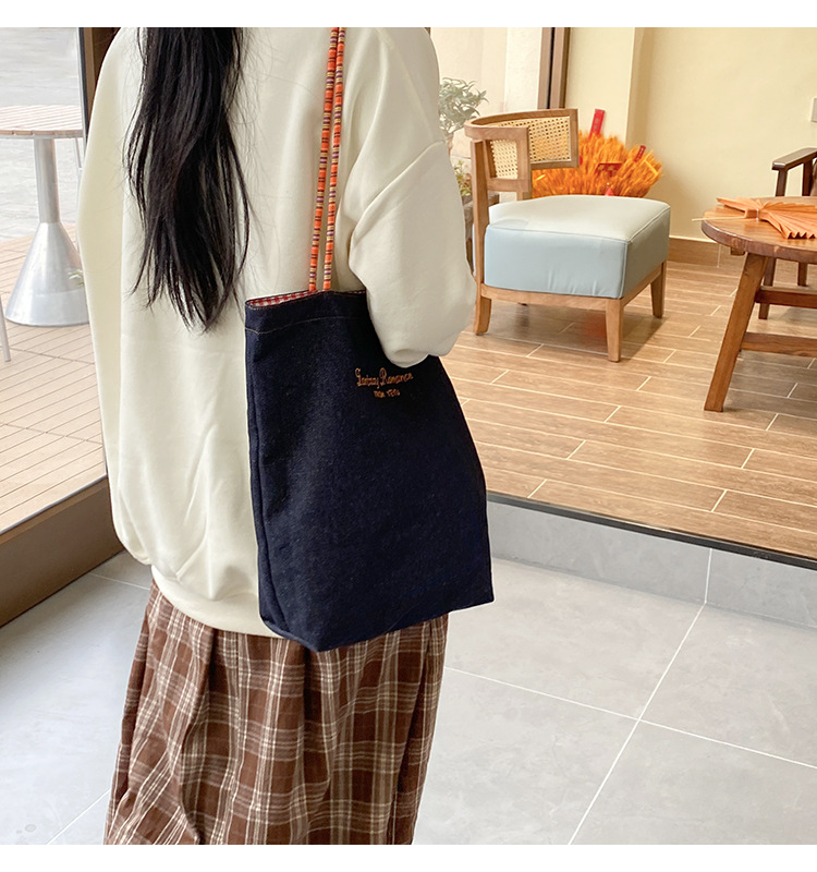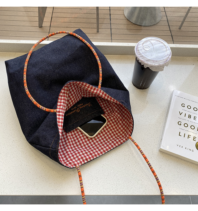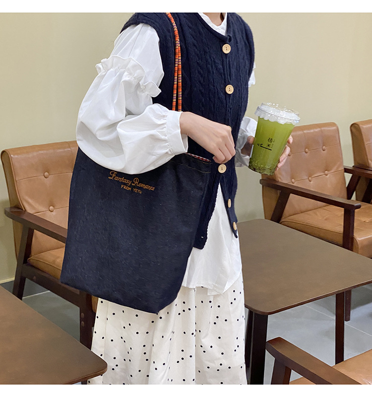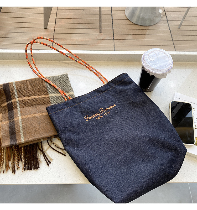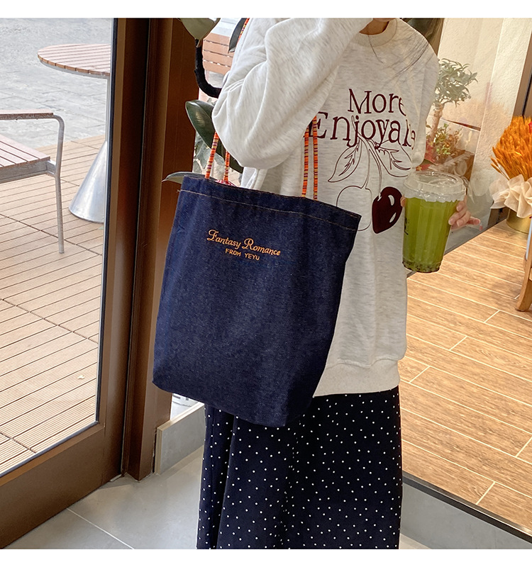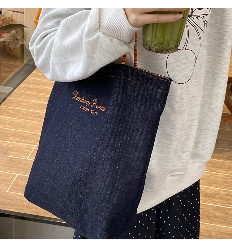 아메리칸 스타일 레트로 데님 이중 목적 양면 어깨 배낭 대용량 올 매치 통근 토트 백 Instagram 새로운 스타일스토어 가기