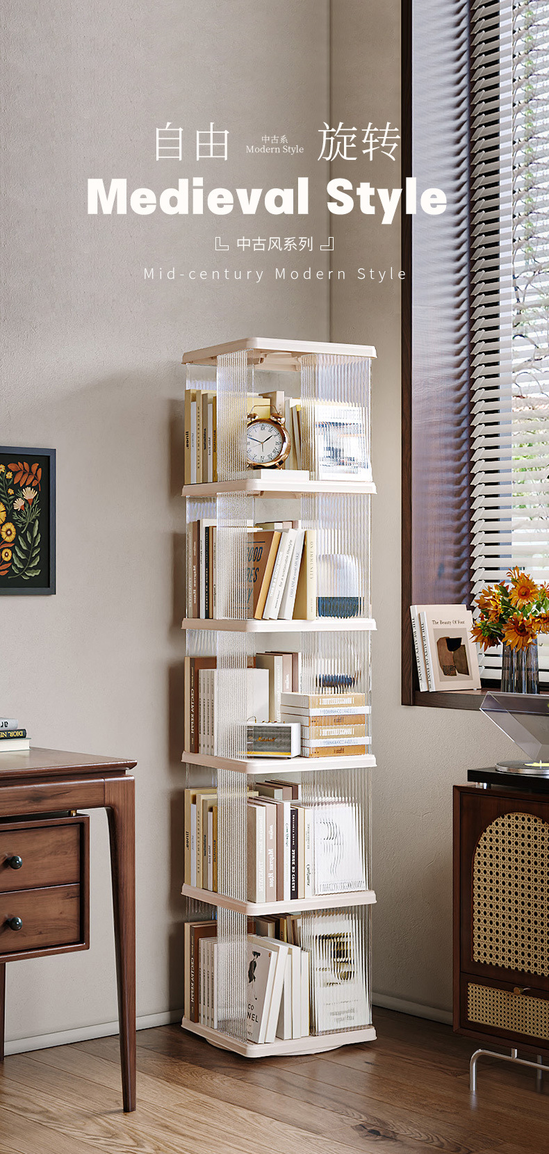 회전 책장 360도 대용량 거실 수납장 다층 선반 화분대 바닥형 심플 어린이 책장