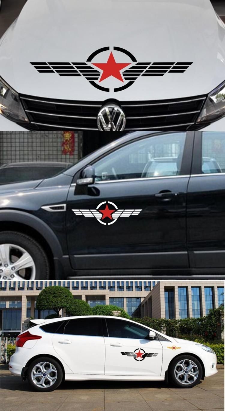 다섯 개의 별 자동차 스티커 장식 형제 회사 후드 스티커 제 2 차 세계 대전 풀 꽃 자동차 헤드 커버 스티커 꽃