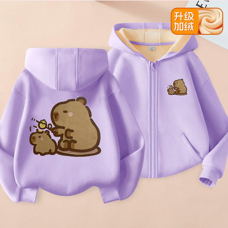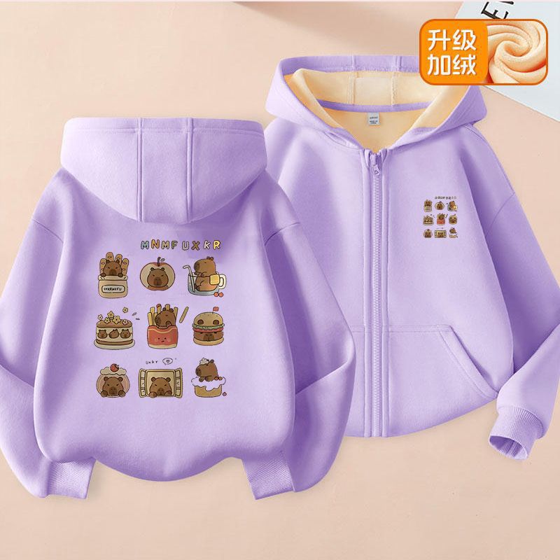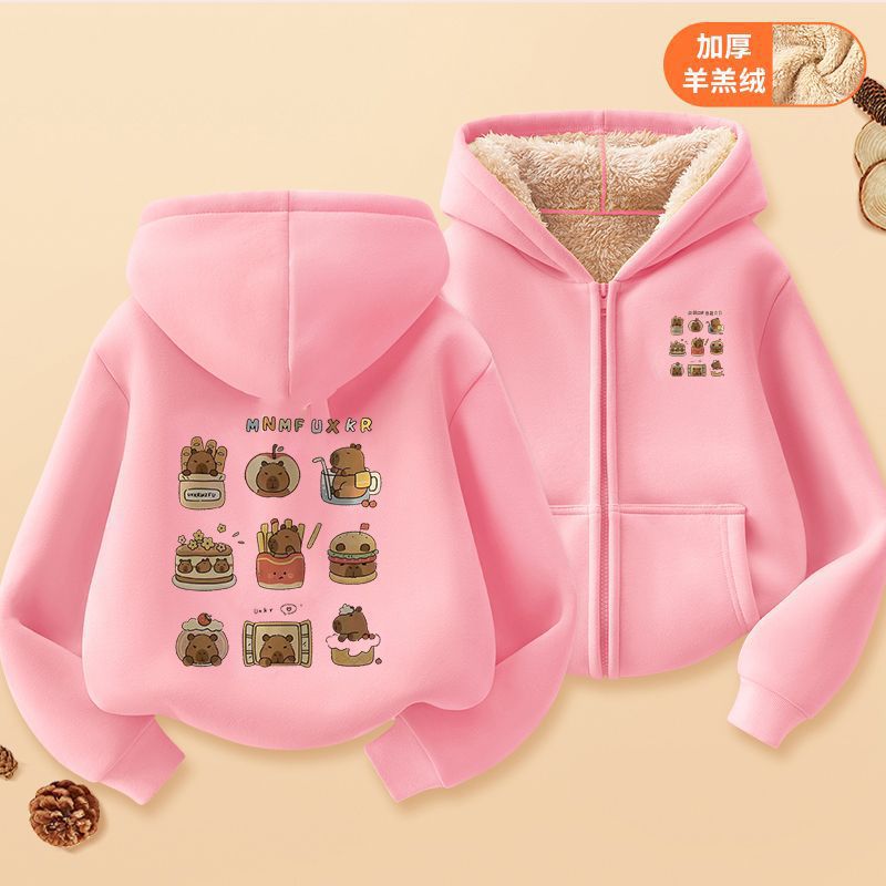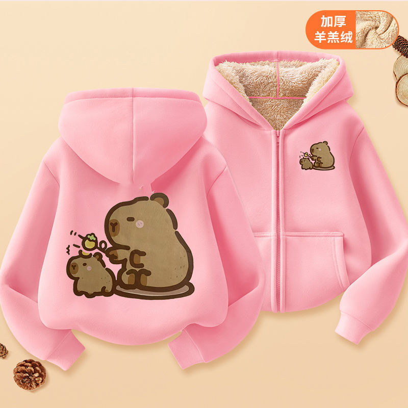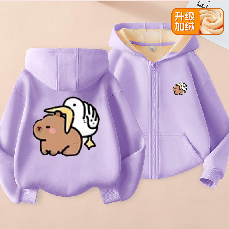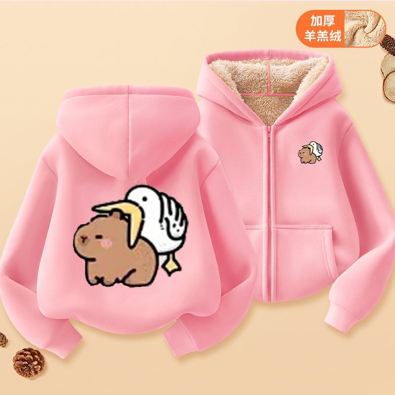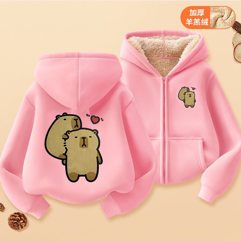 2024秋冬季新款女童开衫连帽卫衣卡皮巴拉儿童拉链卫衣外套可爱潮
