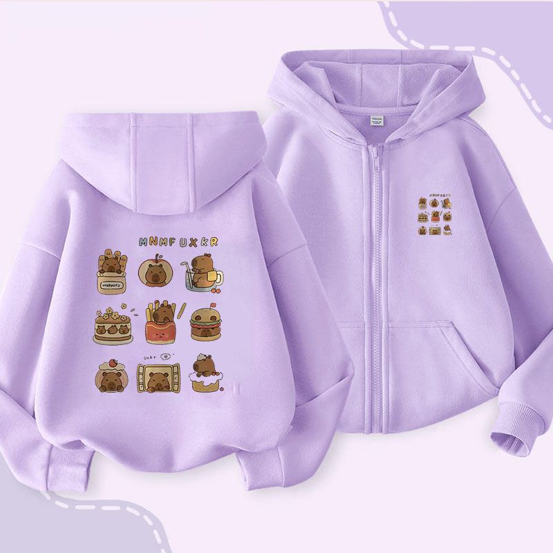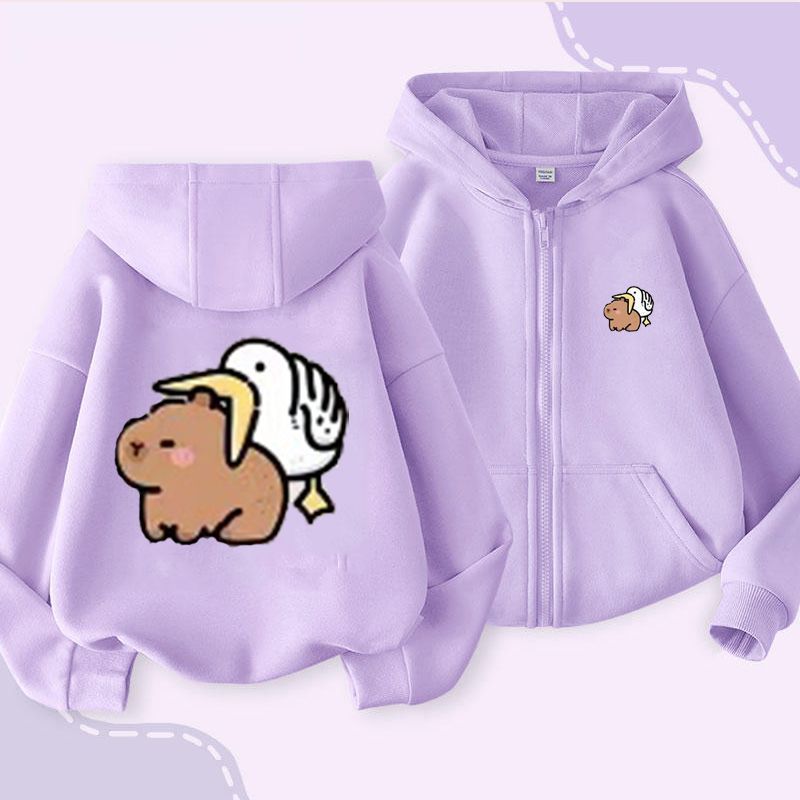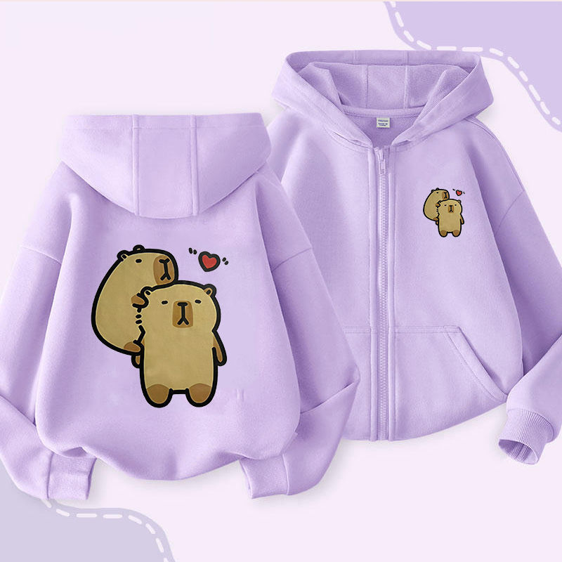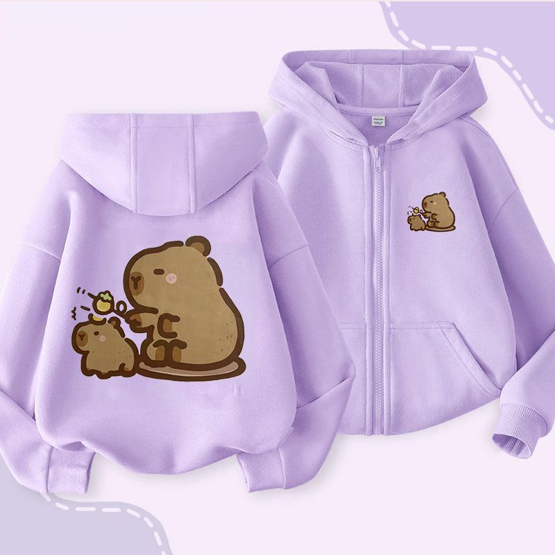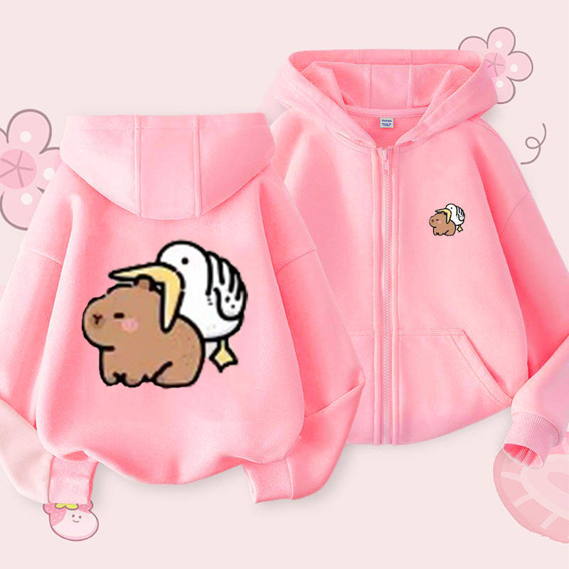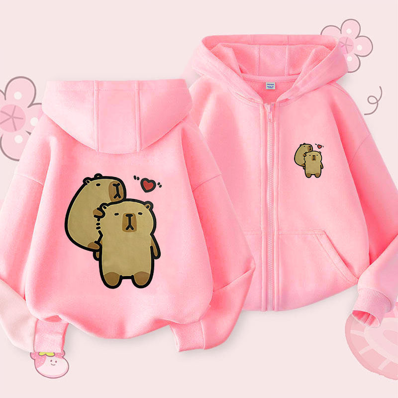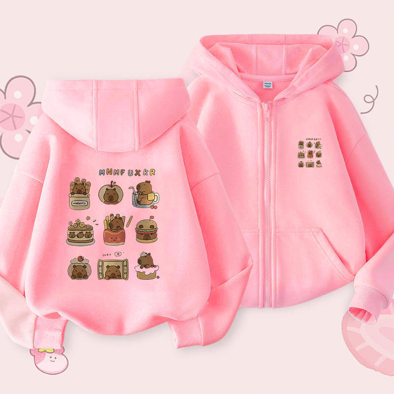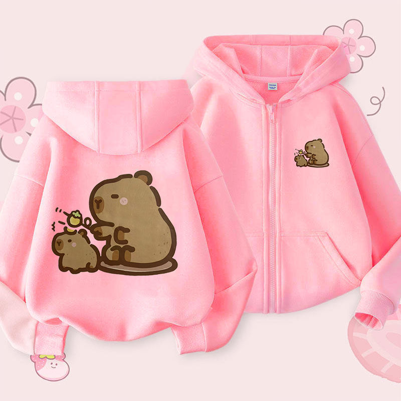 2024秋冬季新款女童开衫连帽卫衣卡皮巴拉儿童拉链卫衣外套可爱潮