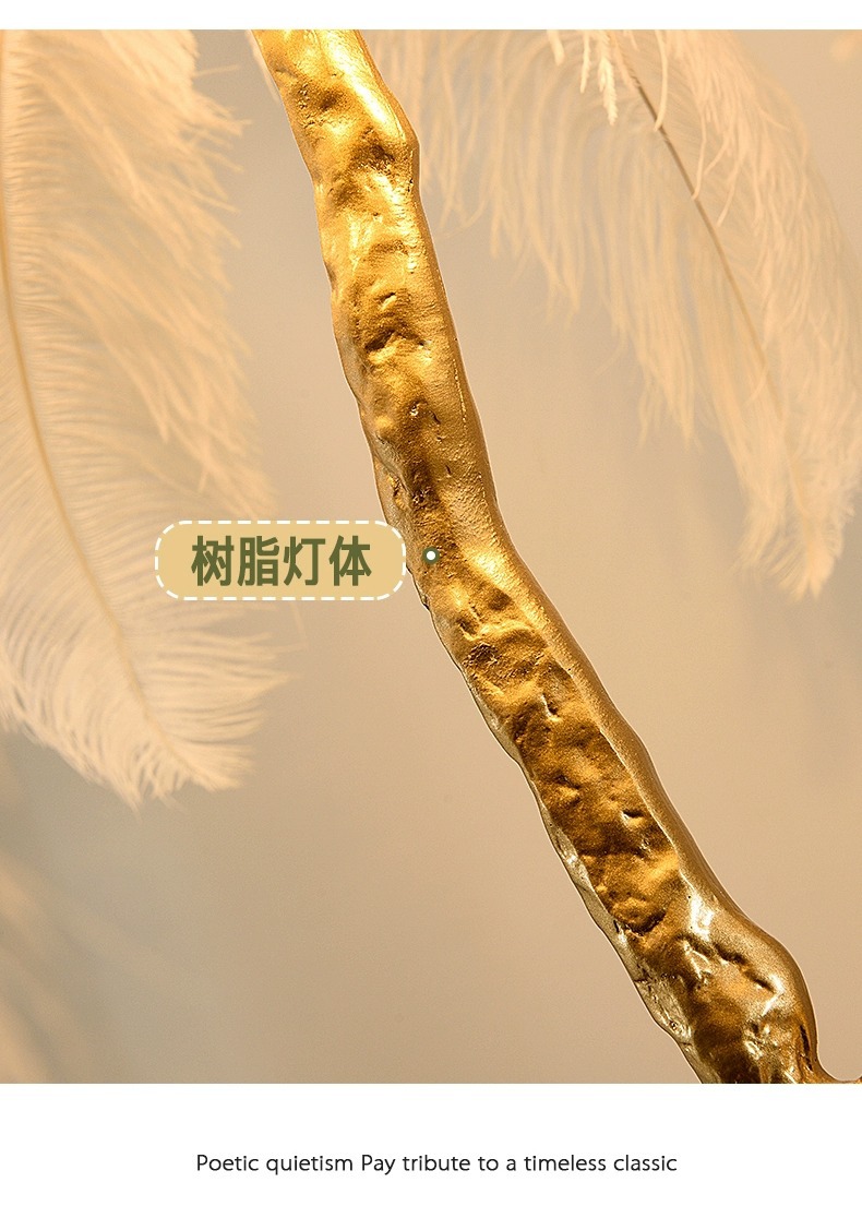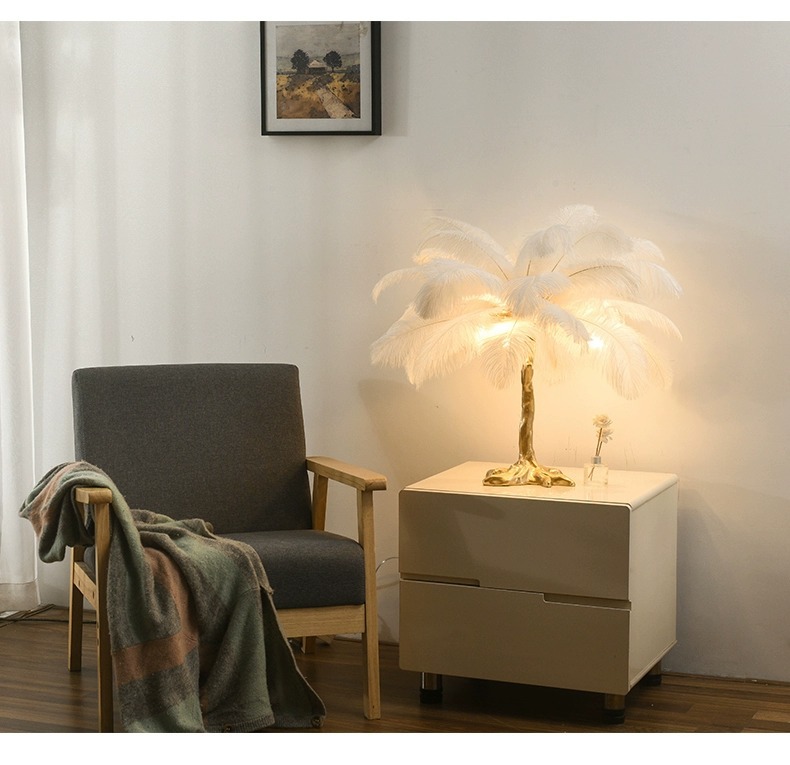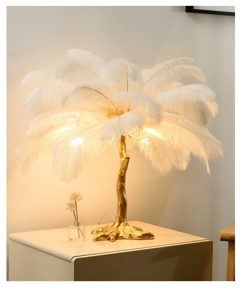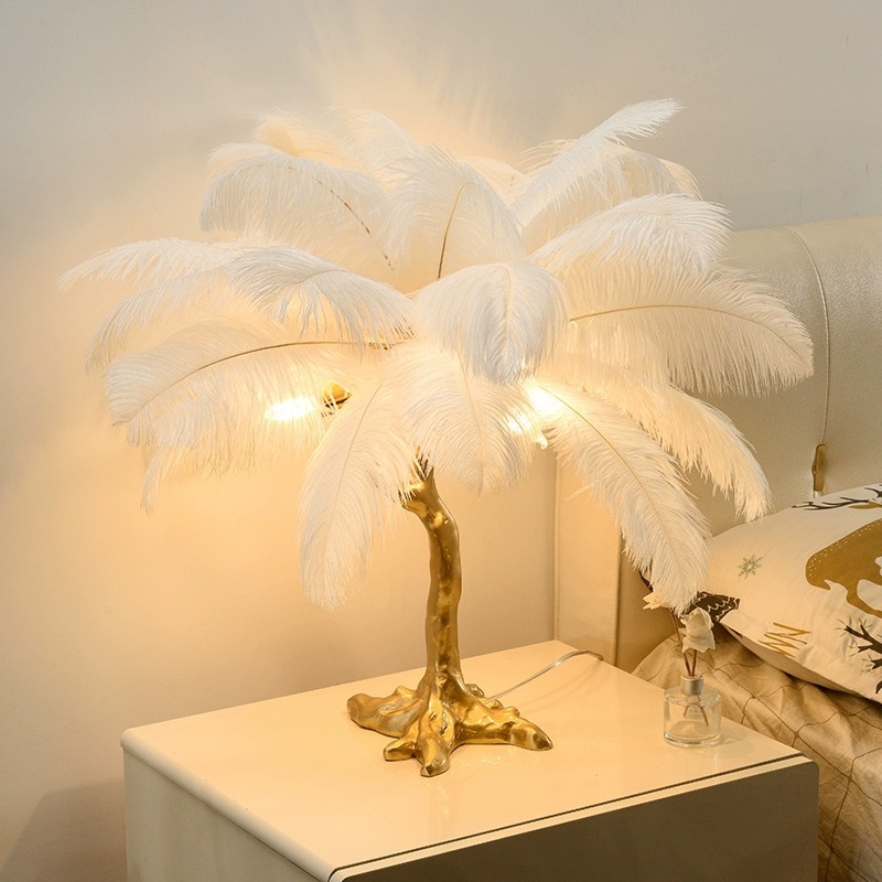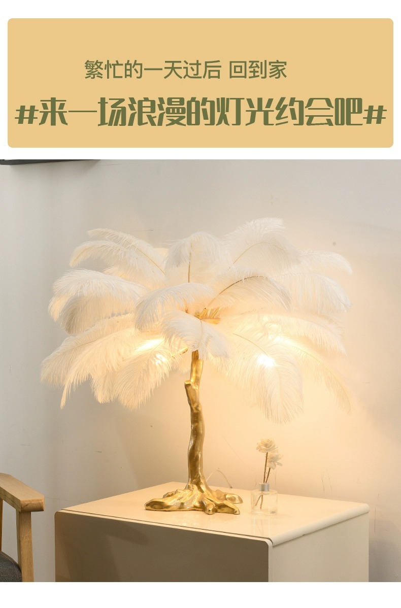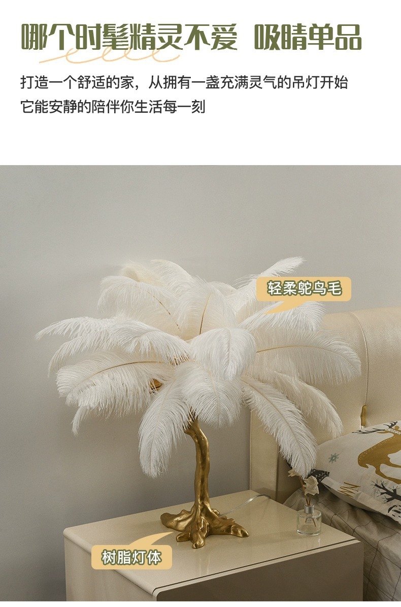 인터넷 연예인 인기 타조 깃털 테이블 램프 ins 따뜻하고 낭만적 인 장식 침실 머리맡 수지 테이블 램프 Zhongshan 램프