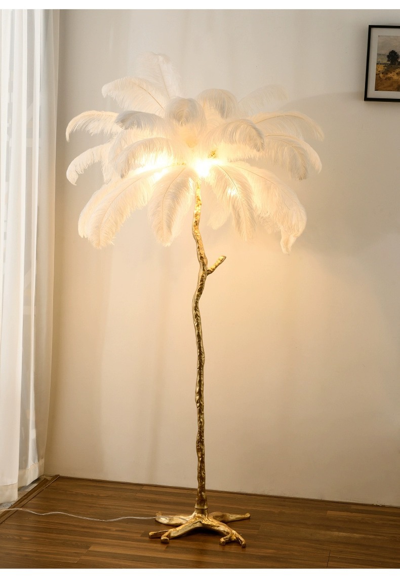 인터넷 연예인 인기 타조 깃털 테이블 램프 ins 따뜻하고 낭만적 인 장식 침실 머리맡 수지 테이블 램프 Zhongshan 램프스토어 가기