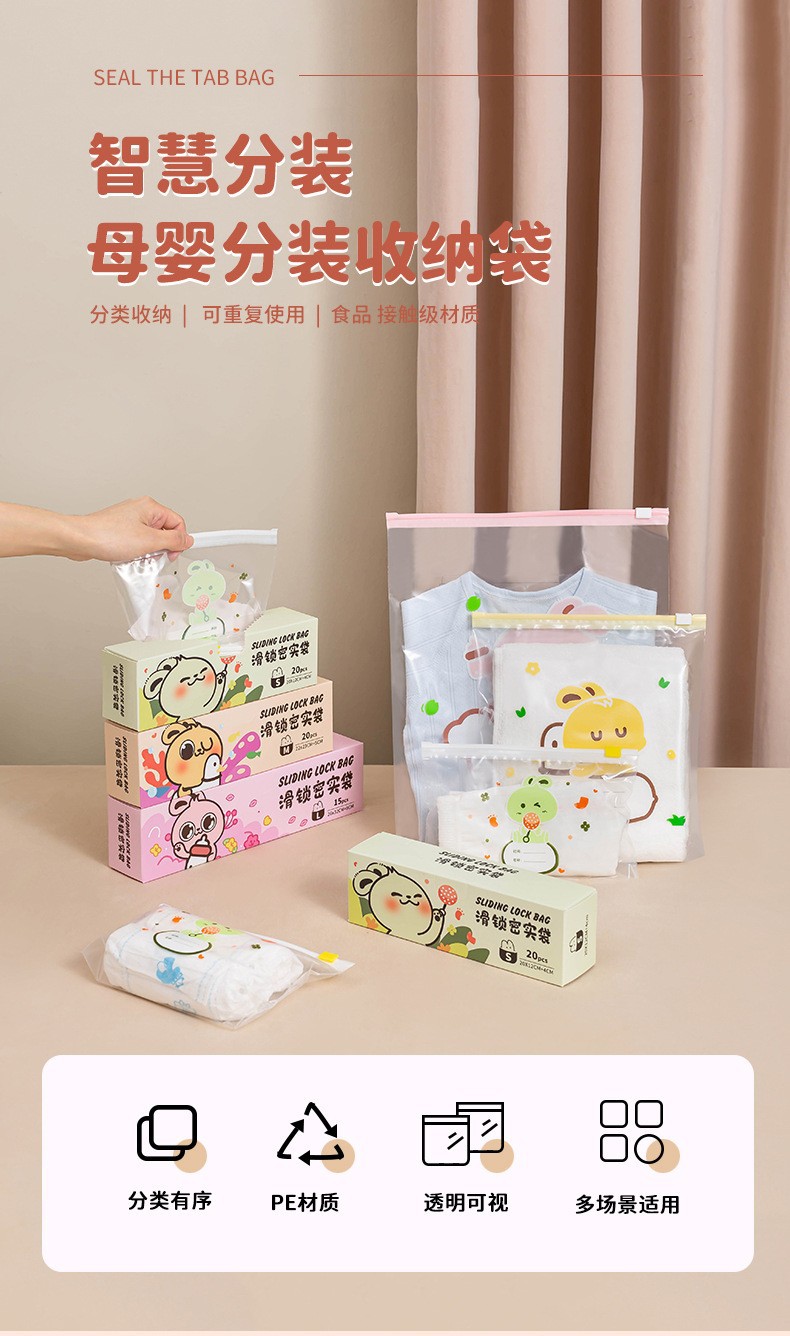 유치원 수납 가방, 어린이 옷, 유치원 용품 분리 가방, 여행용 밀봉 방수 지퍼 슬라이드 잠금 가방스토어 가기