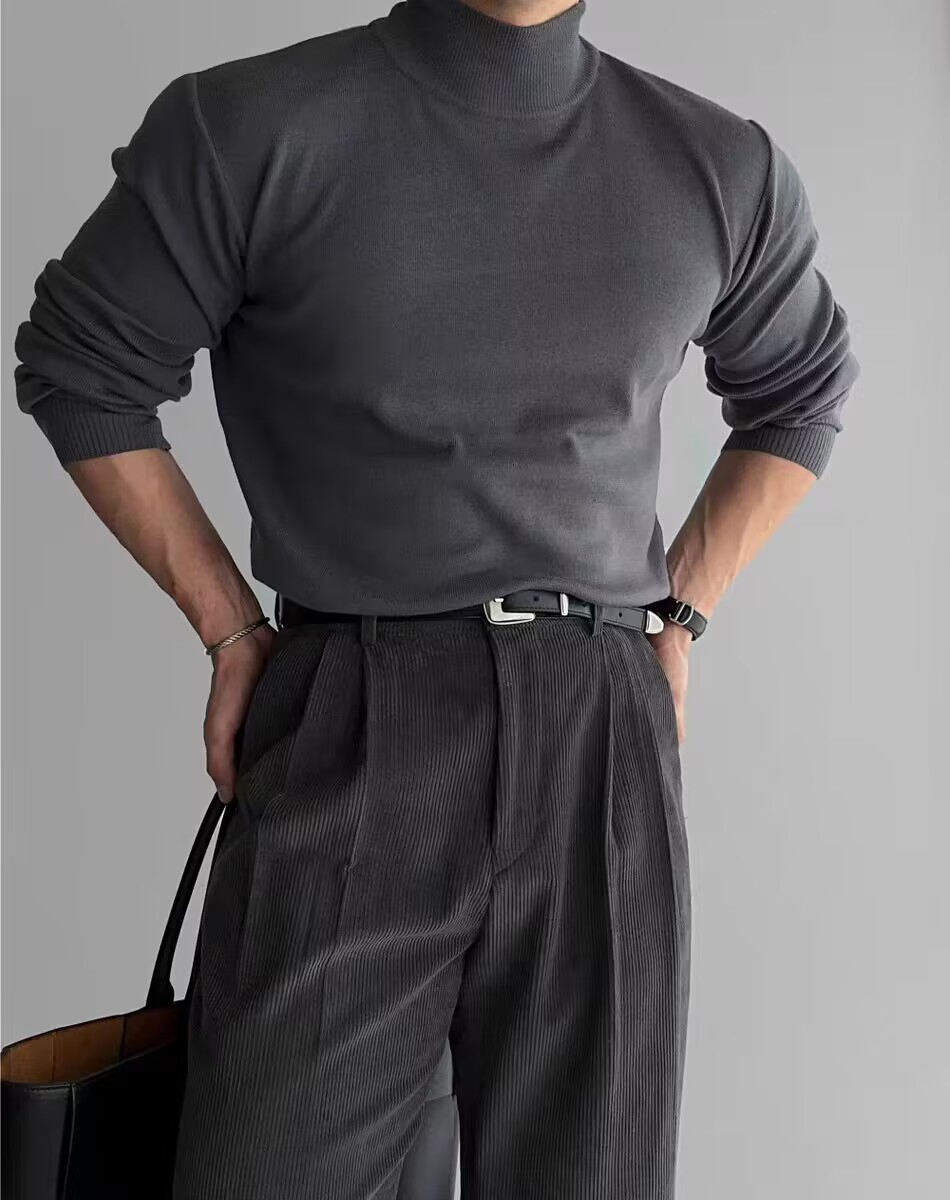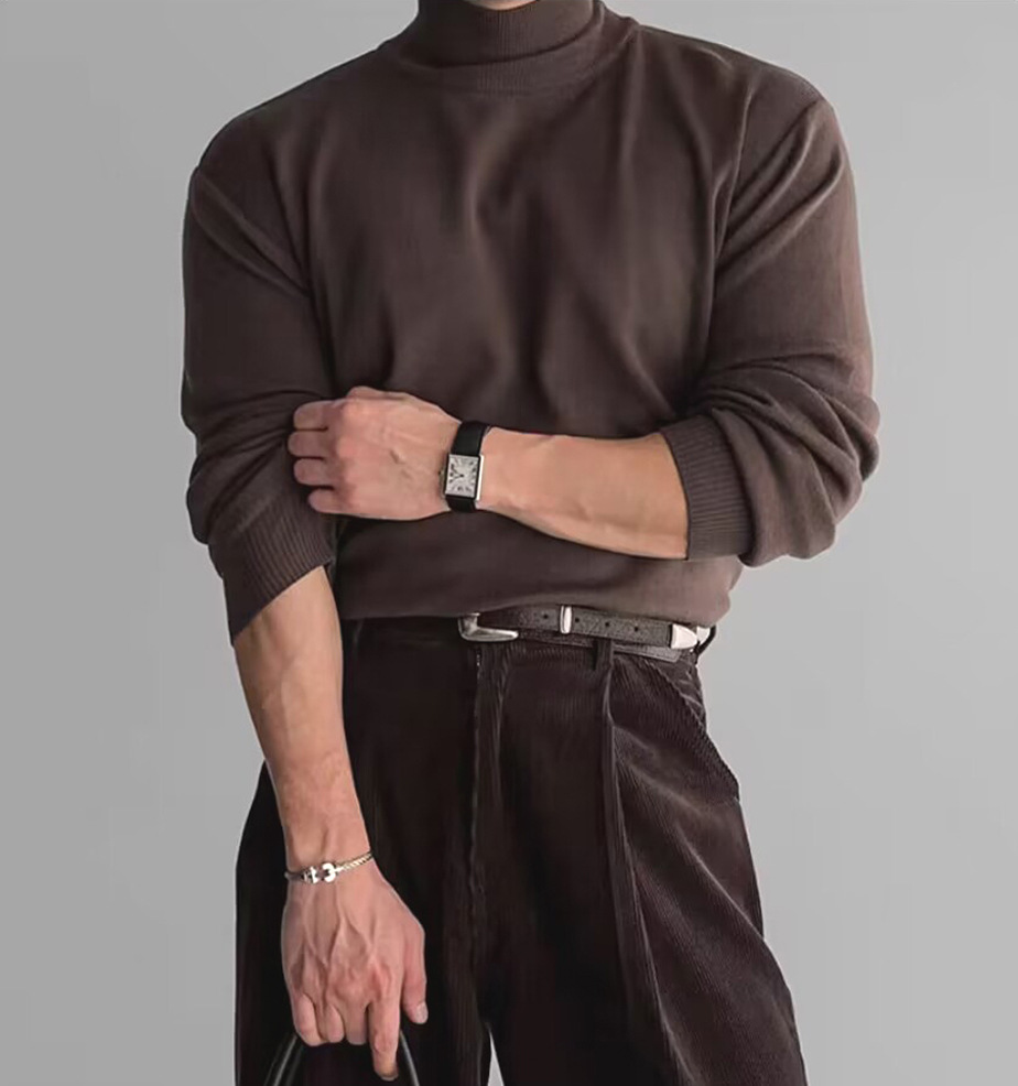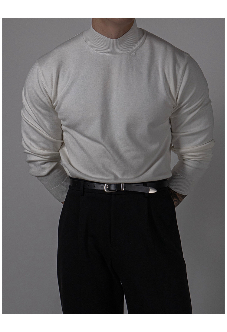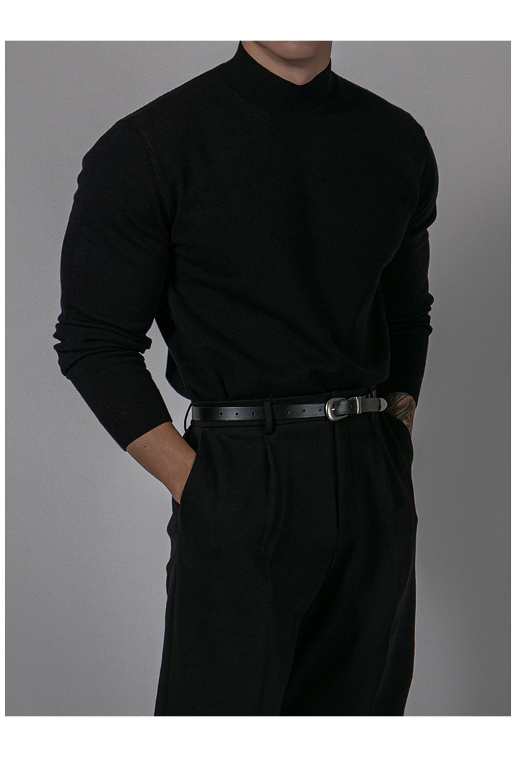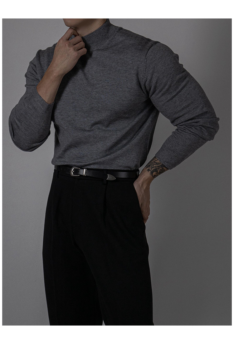 유럽 하프 터틀넥 코어-스펀 스웨터 남자 모달 타이트 긴팔 스웨터 미드 넥 베이스 울 스웨터스토어 가기