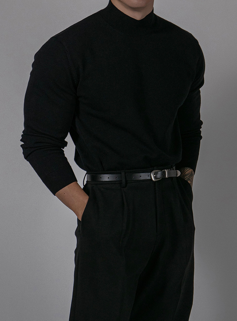 • 스몰 터틀넥 코어 방적사 스웨터 블랙