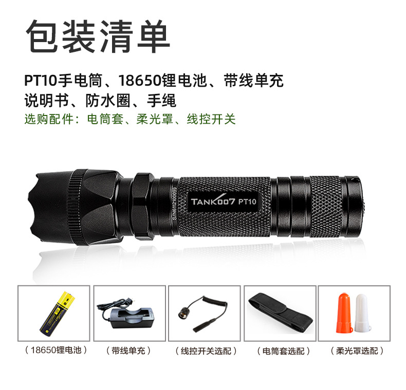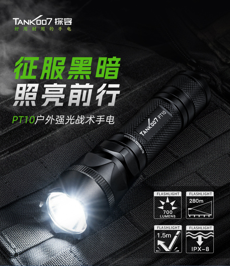 TANK007 형사 강한 손전등 다기능 충전 전술 방수 야외 캠핑 알루미늄 합금 손전등스토어 가기