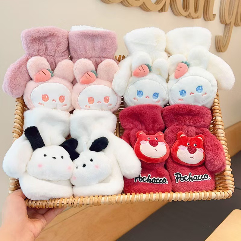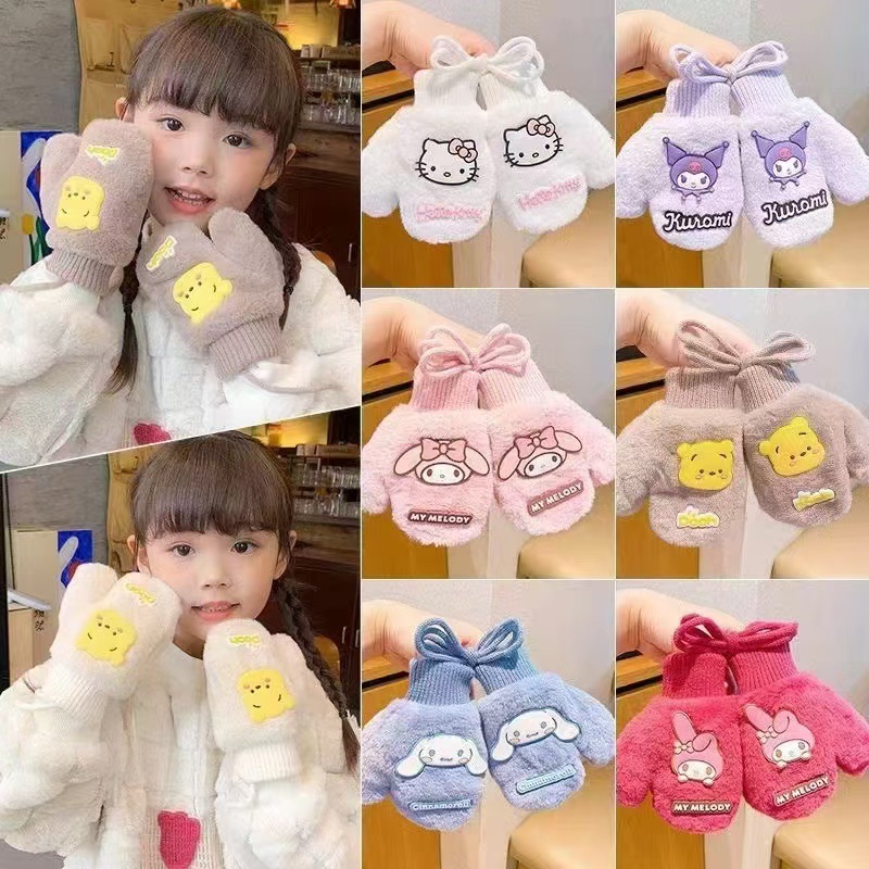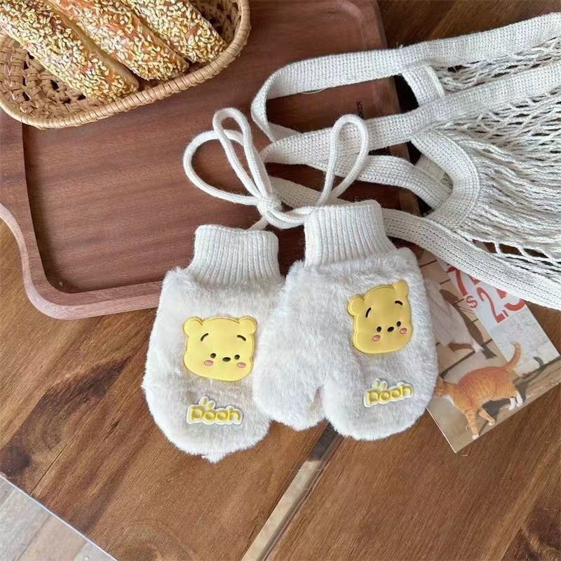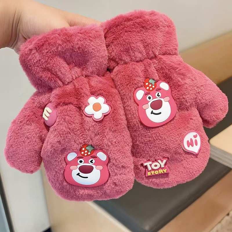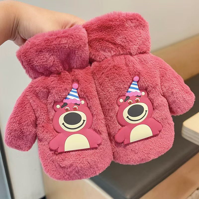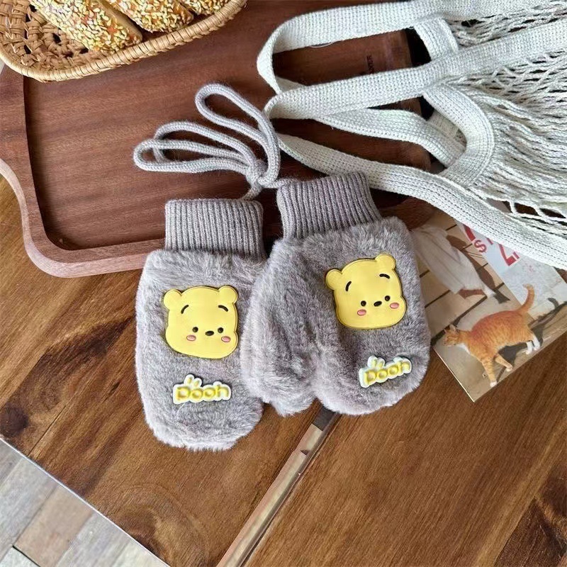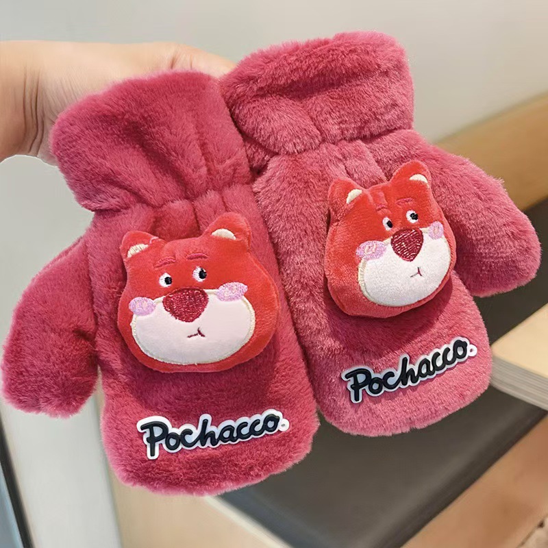 2023 가을 겨울 어린이 만화 곰돌이 플러시 장갑 겨울용 플러시 안감 따뜻하고 방한 기능이 있는 플립업 어린이 겨울 장갑