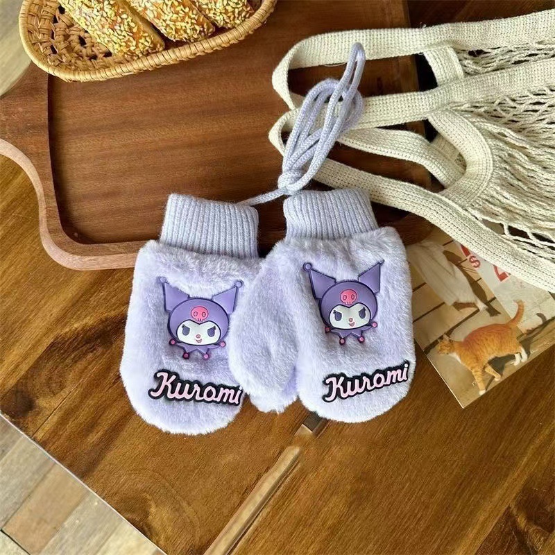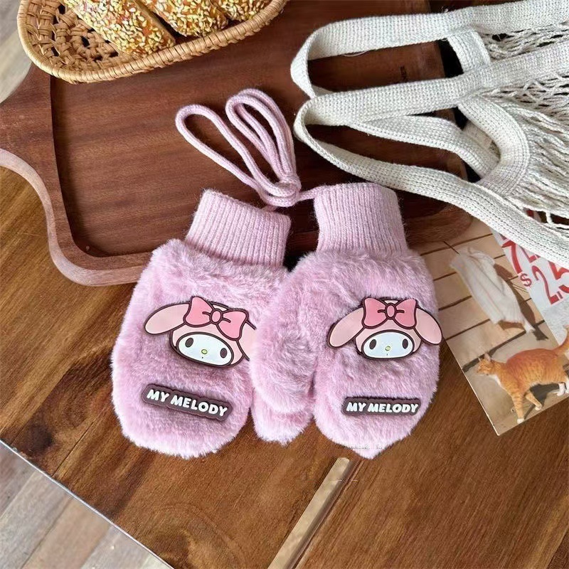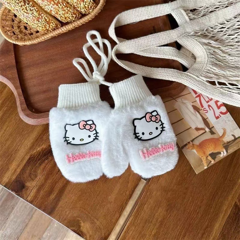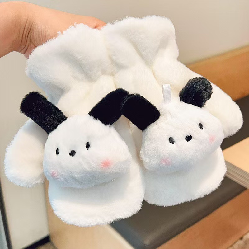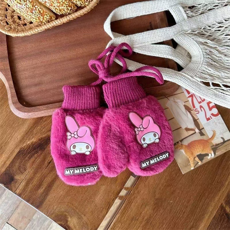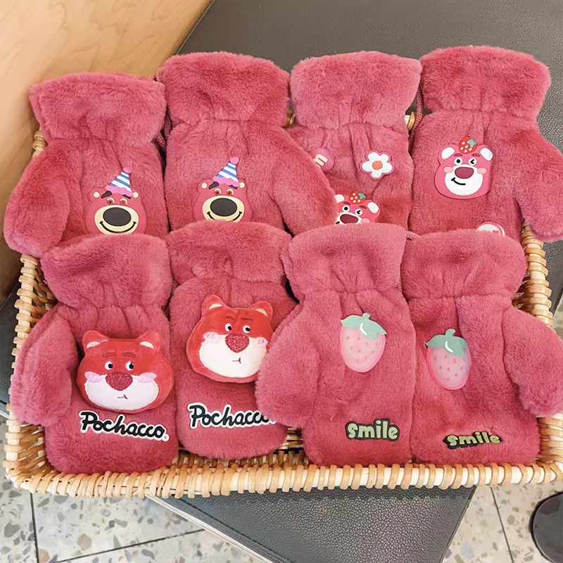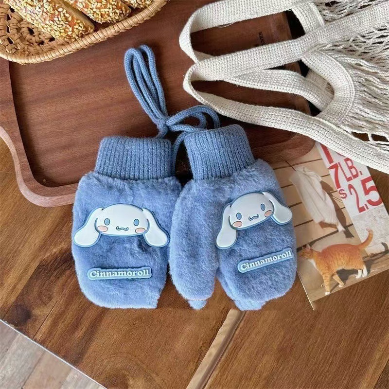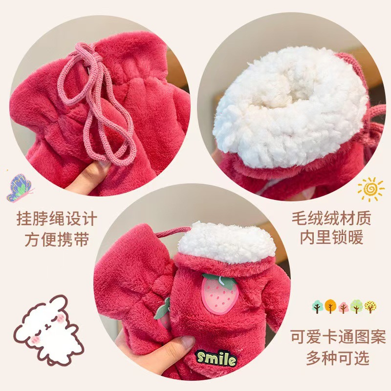 2023 가을 겨울 어린이 만화 곰돌이 플러시 장갑 겨울용 플러시 안감 따뜻하고 방한 기능이 있는 플립업 어린이 겨울 장갑