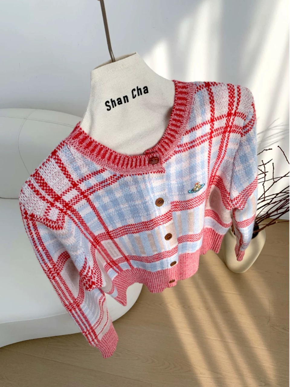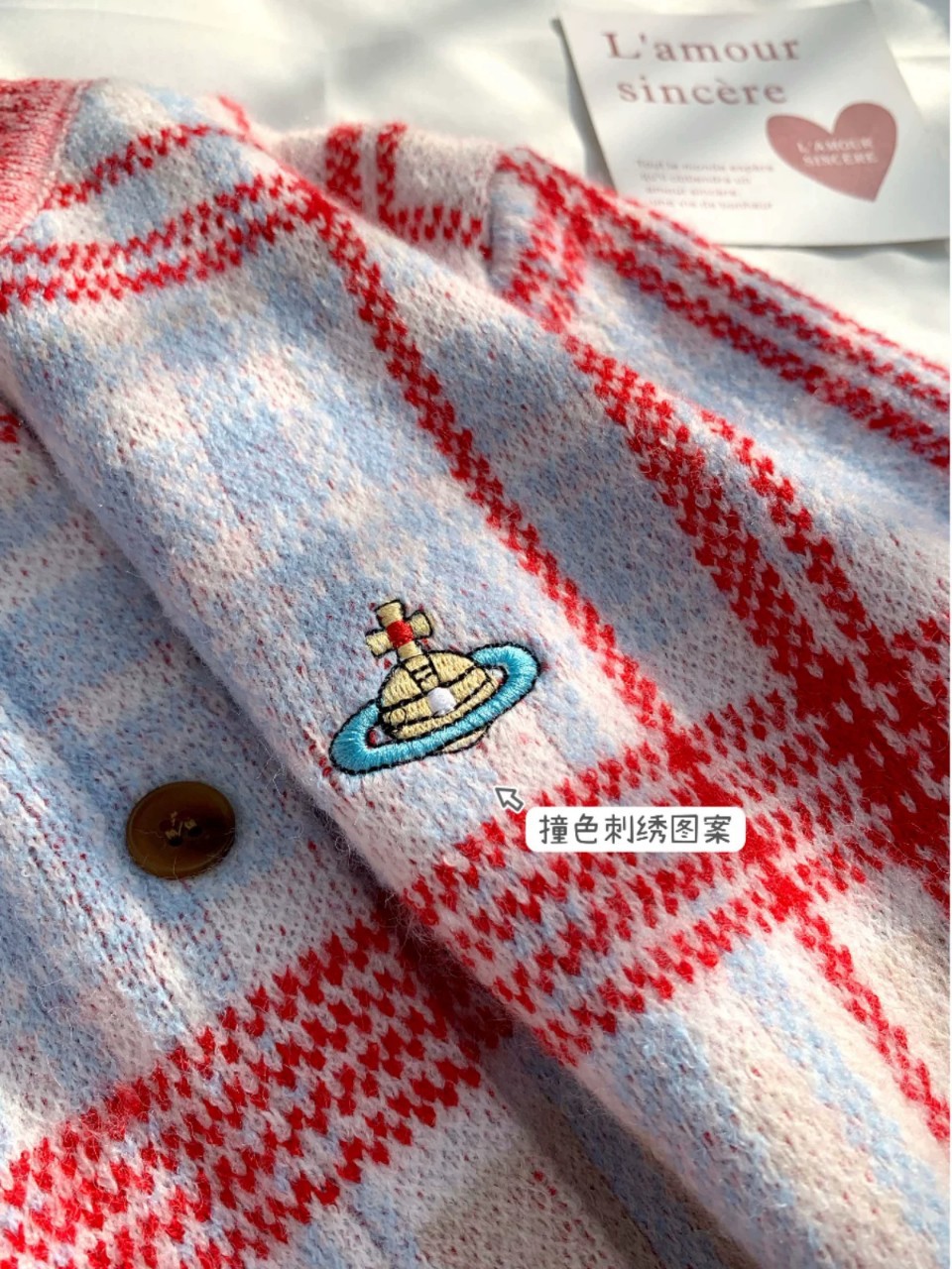vivienne west wood 웨스트 퀸 엘리자베스 토성 레터 트위스트 여성 울 혼방 스웨터 니트 가디건