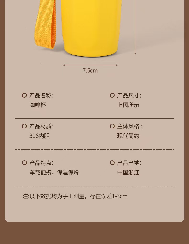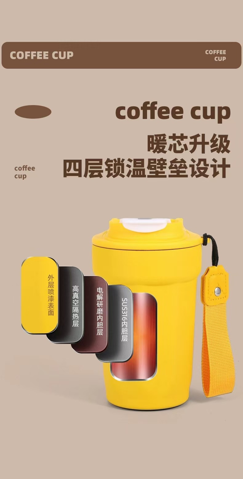새로운 316 스테인레스 스틸 커피 컵 더블 진공 끈 보온병 컵 인쇄 로고 동반 선물 컵