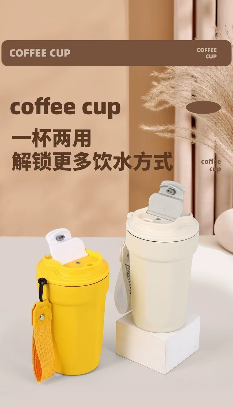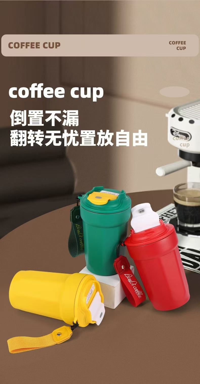 새로운 316 스테인레스 스틸 커피 컵 더블 진공 끈 보온병 컵 인쇄 로고 동반 선물 컵스토어 가기