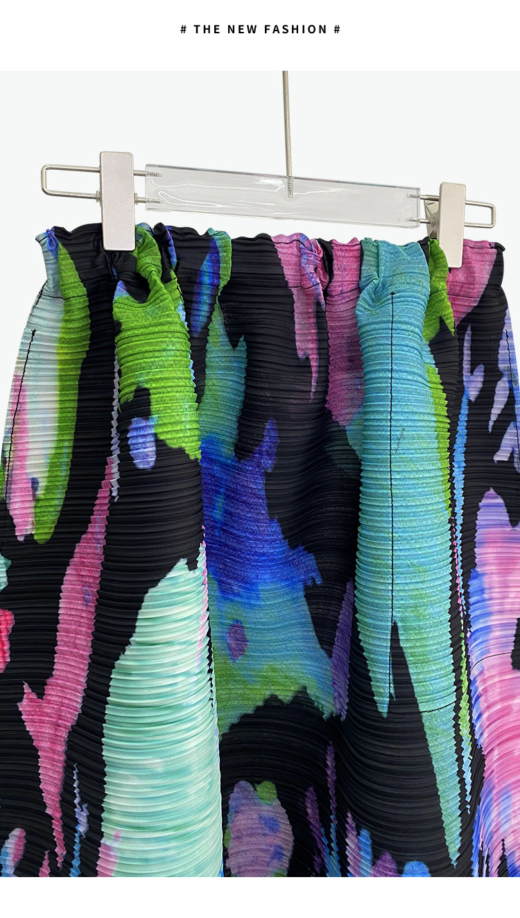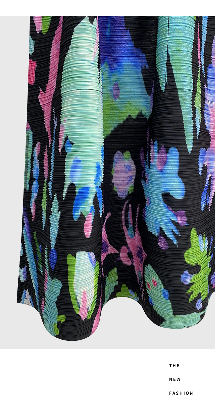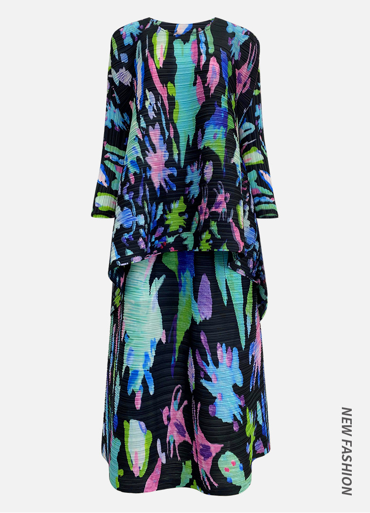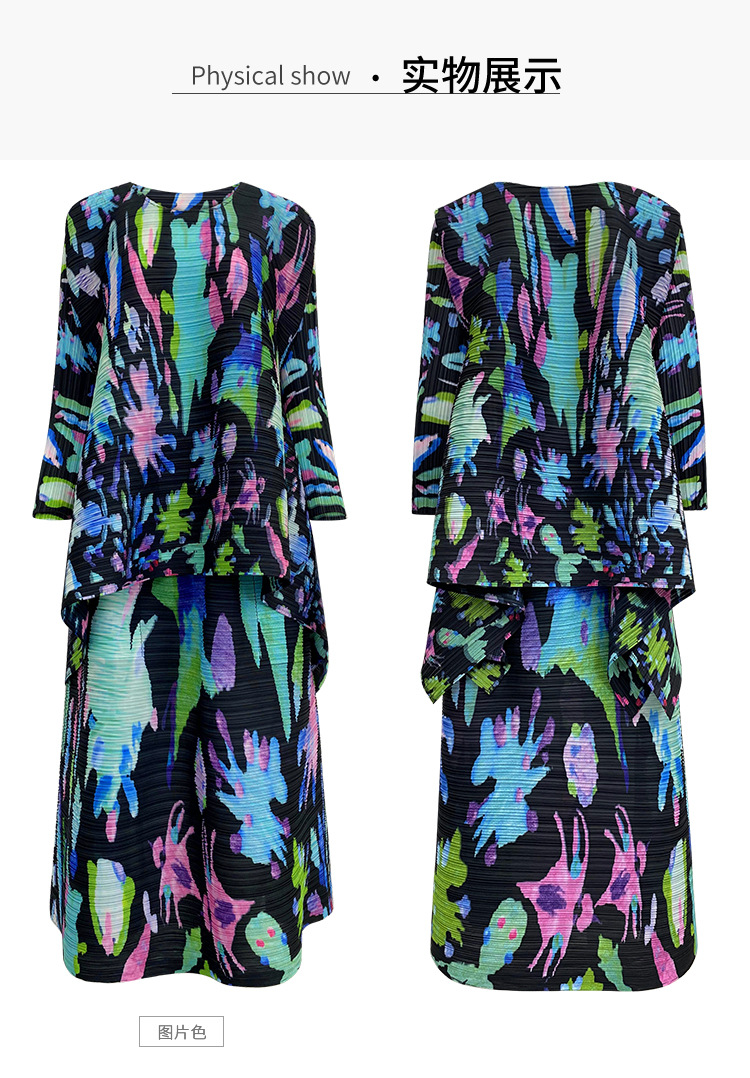 플리츠 프린트 세트 2026 신상 봄 해외 수출용 그래피티 긴팔 상의와 플리츠 루즈핏 하프 스커트 투피스 세트 여성용스토어 가기