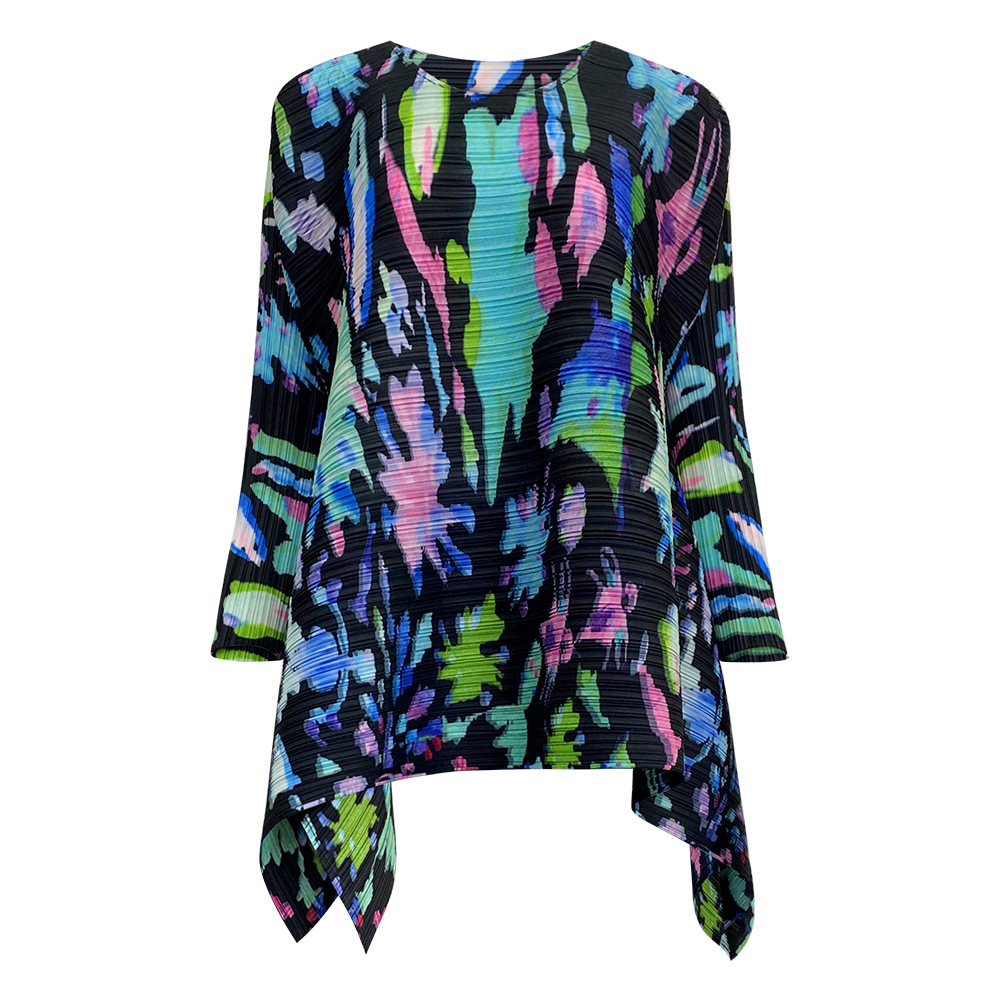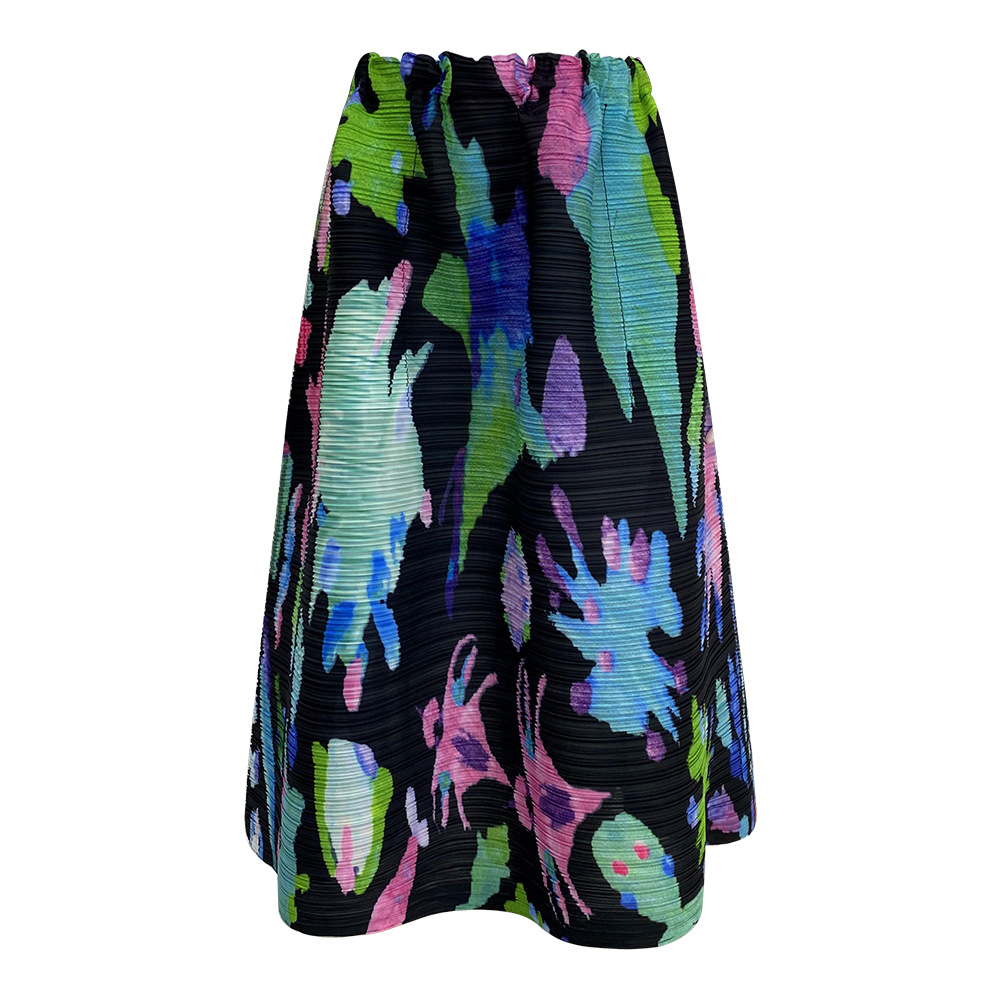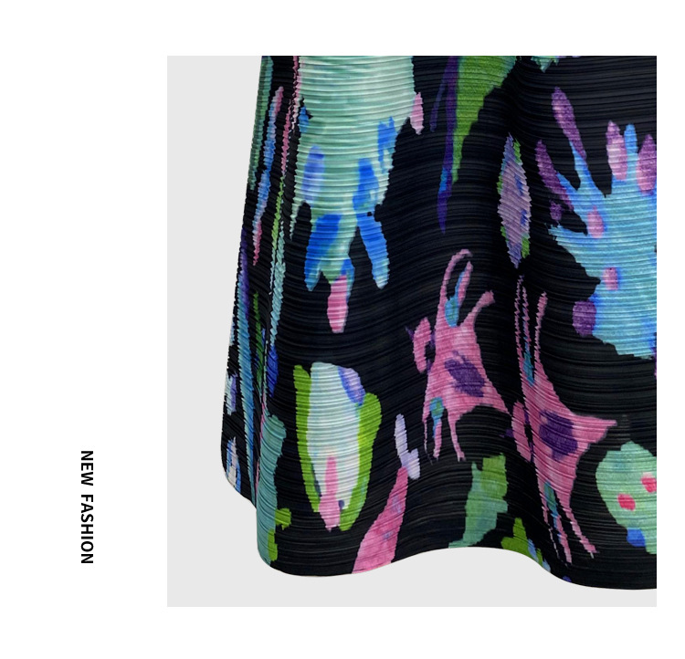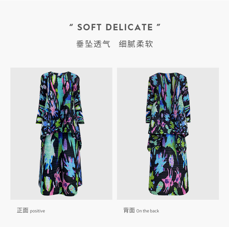 플리츠 프린트 세트 2026 신상 봄 해외 수출용 그래피티 긴팔 상의와 플리츠 루즈핏 하프 스커트 투피스 세트 여성용스토어 가기