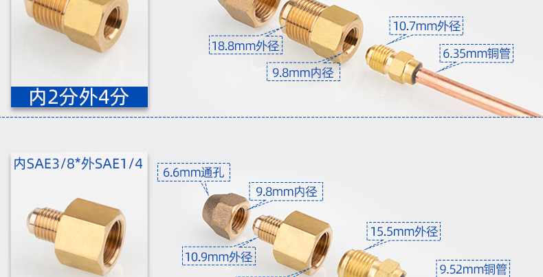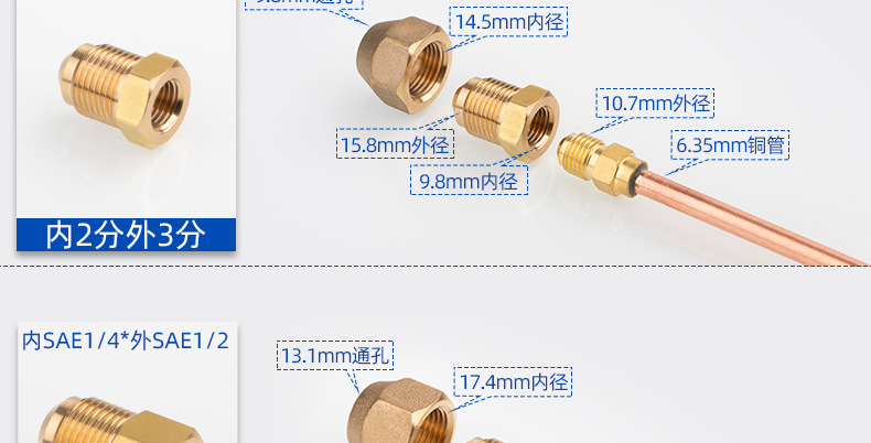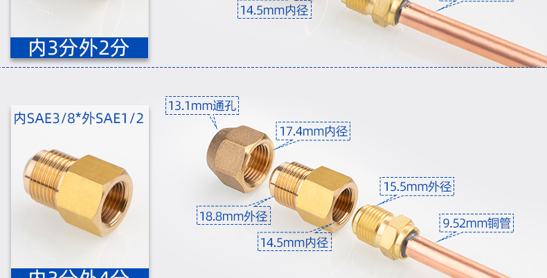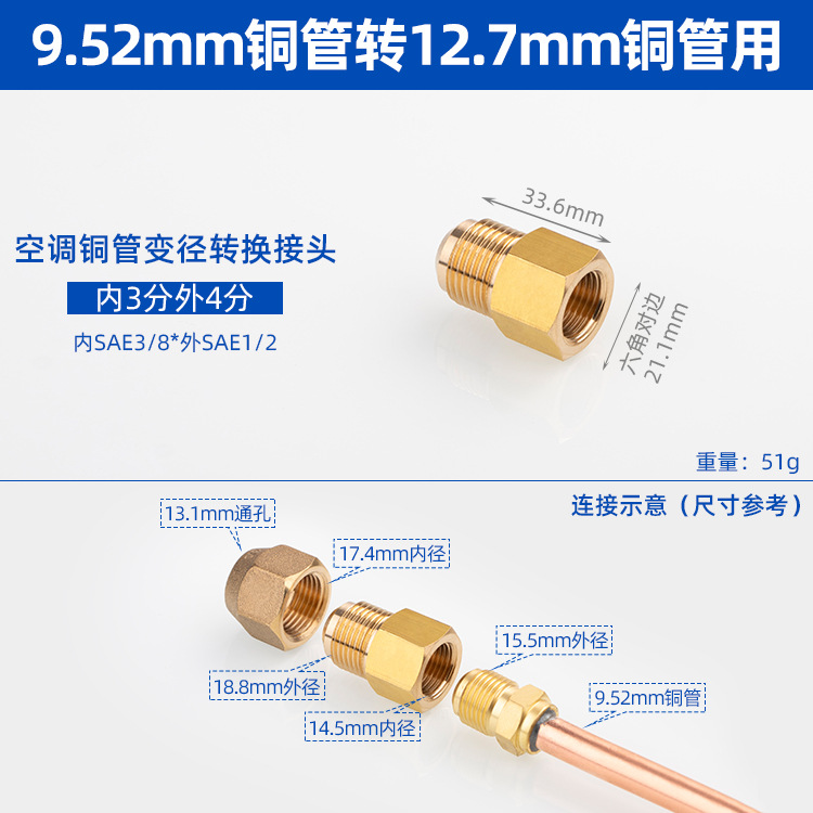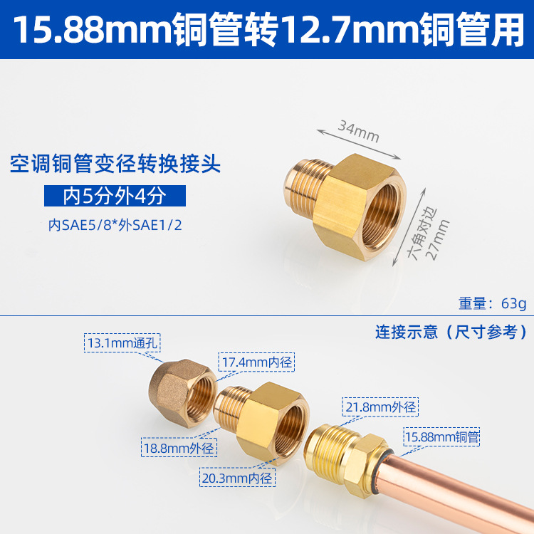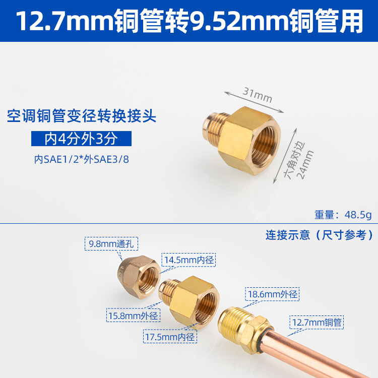에어컨 구리 파이프 크기 어댑터 구리 파이프 내부 및 외부 감속기 어댑터 벨 입 6mm10mm12mm16mm