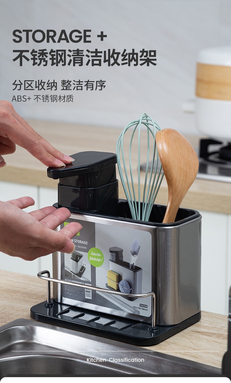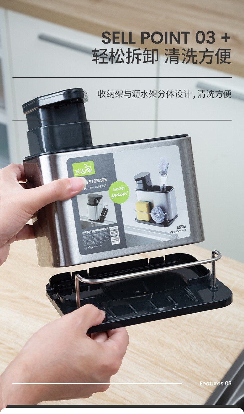 주방 싱크 스테인레스 스틸 식기 세척 스폰지 드레인 랙 스틸 볼 세제 컨테이너 3 대 1 스토리지 랙스토어 가기