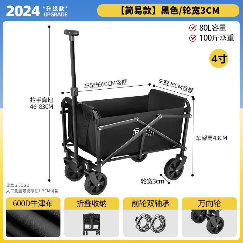 새로운 캠핑 카트 접이식 야외 핸드 푸시 피크닉 자동차 휴대용 캠프 트레일러 풀 로드 작은 당김 자동차 캠핑 차스토어 가기