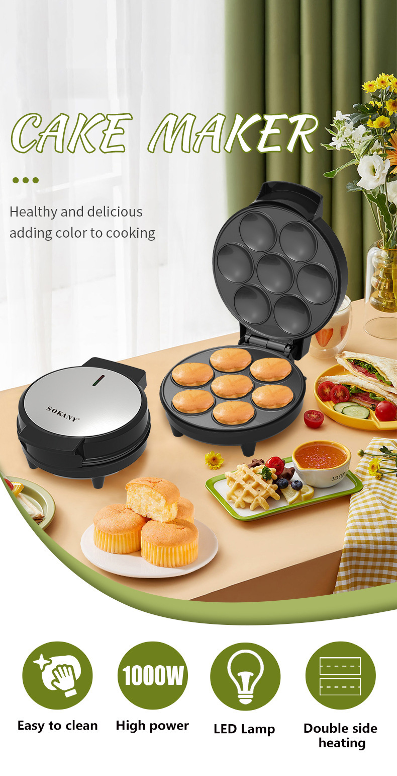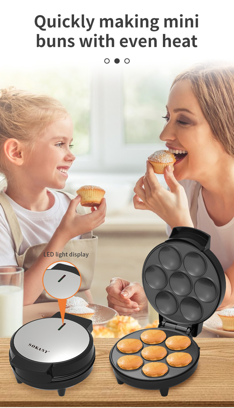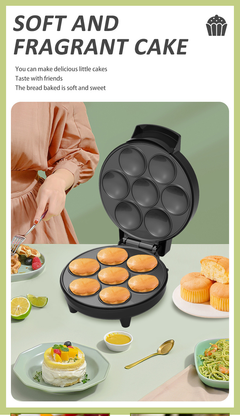 국경 간 미니 팬케이크 기계 계란 타르트 기계 가정용 7 홀 대용량 일정한 온도 케이크 기계 전기 케이크 팬 빵 기계