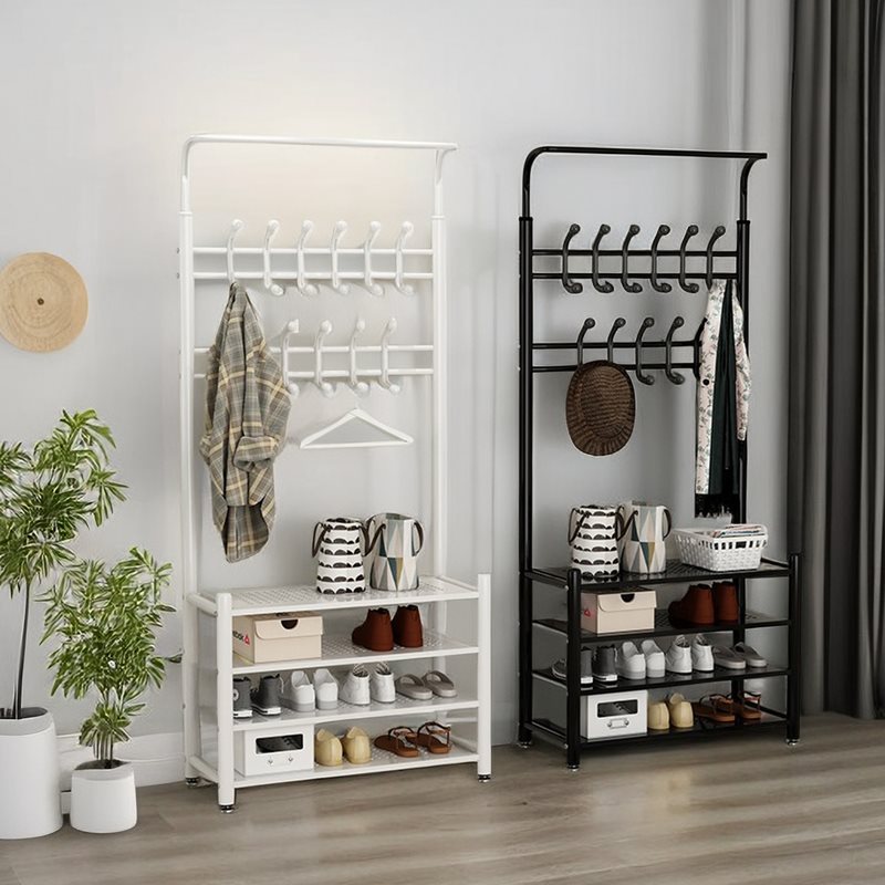 S * 도어 바닥 코트 랙 의류 걸이 철 가방 문 닫기 후 걸이 걸이 랙 다기능 걸이 신발 랙 통합