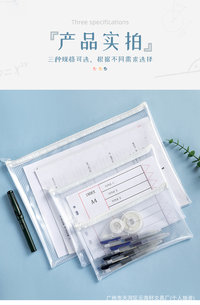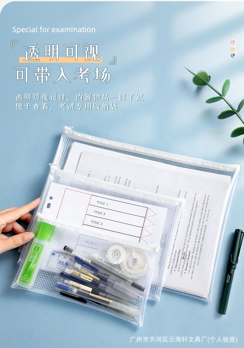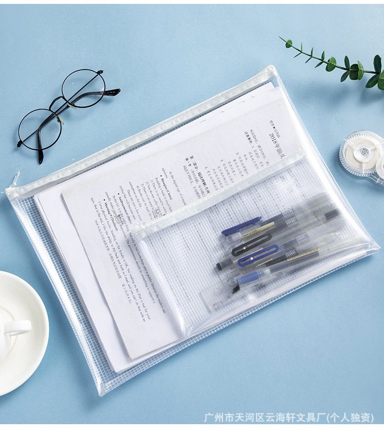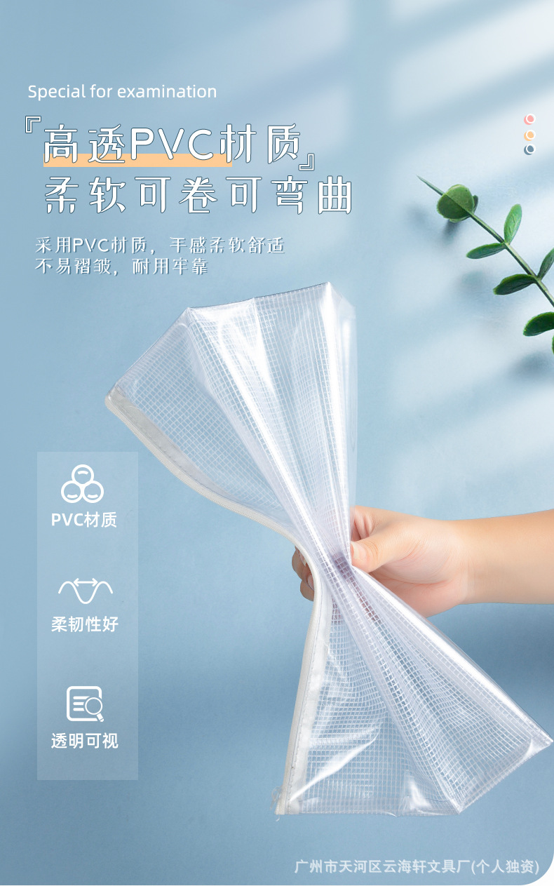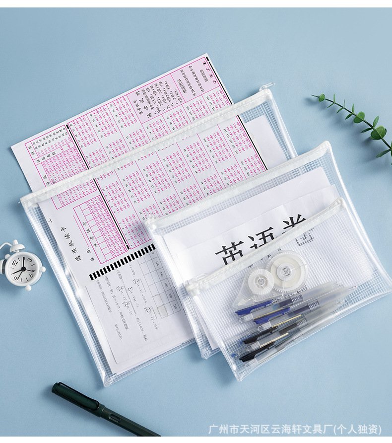 투명한 PVC 그리드 문서 가방 특수 연필 케이스 검사 방수 및 수분 방지 문서 문구 보관 가방