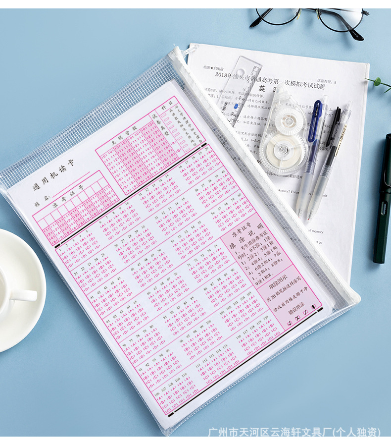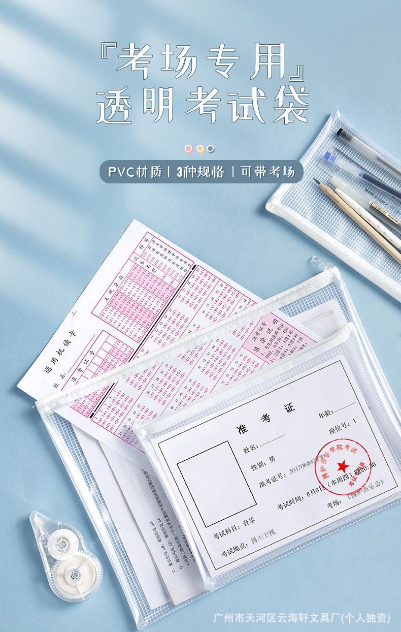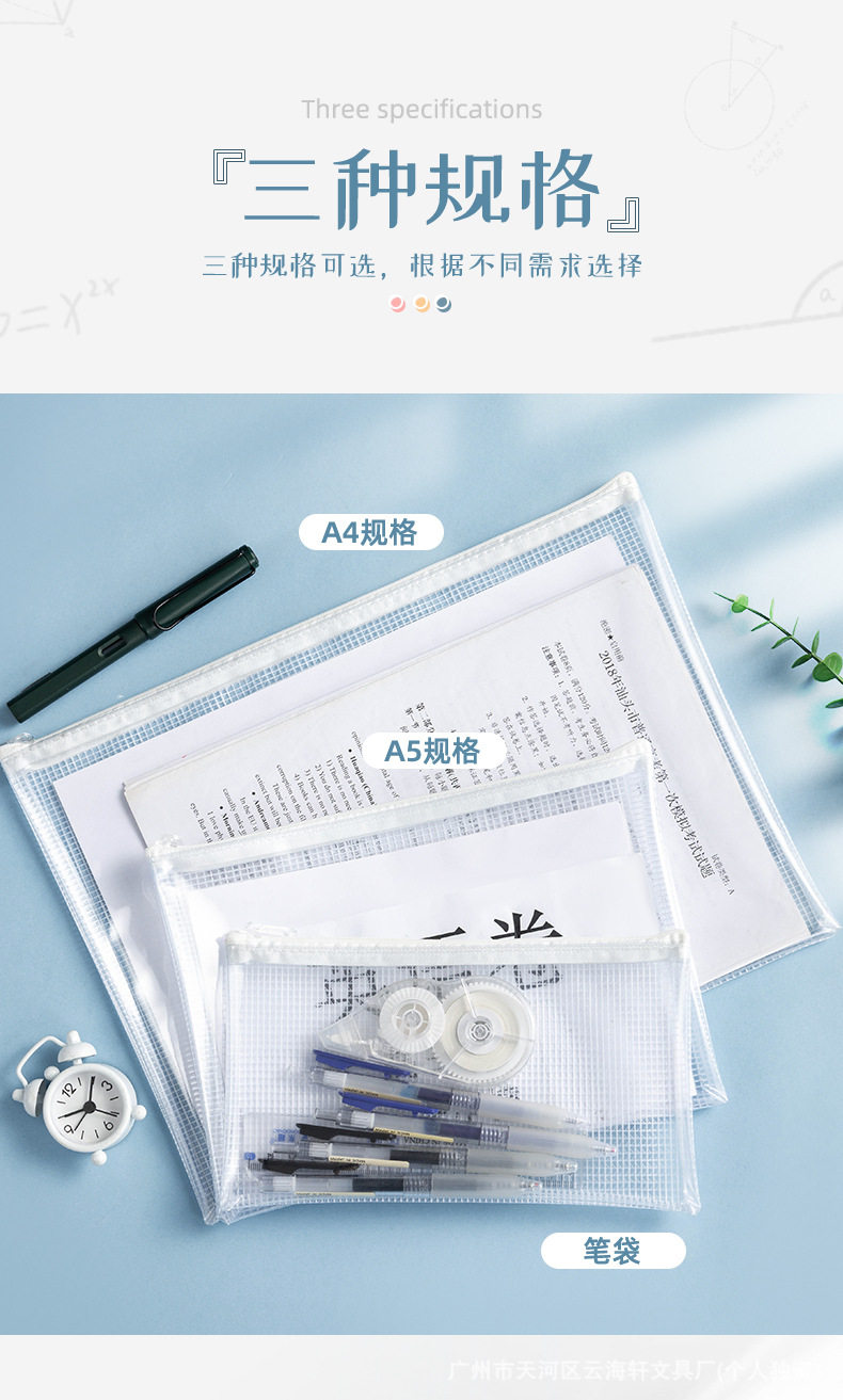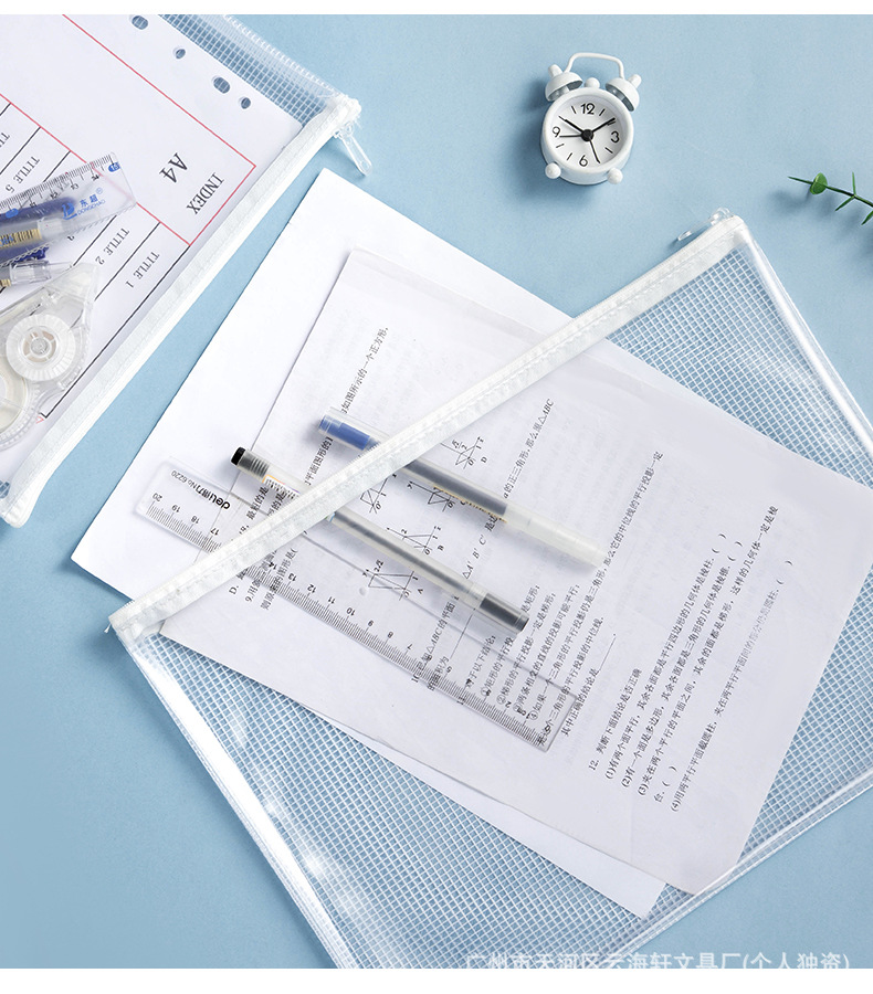 투명한 PVC 그리드 문서 가방 특수 연필 케이스 검사 방수 및 수분 방지 문서 문구 보관 가방