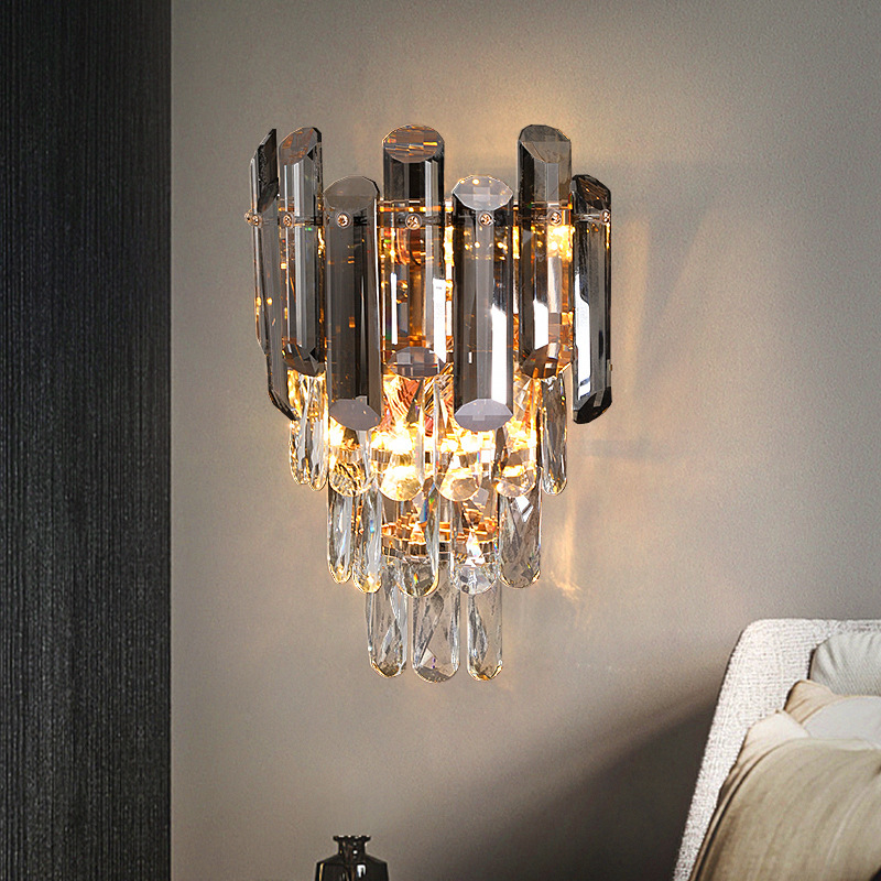 현대 빛 럭셔리 크리스탈 벽 램프 침실 침실 램프 간단한 개인화 된 모델 룸 거실 복도 TV 배경 벽 램프
