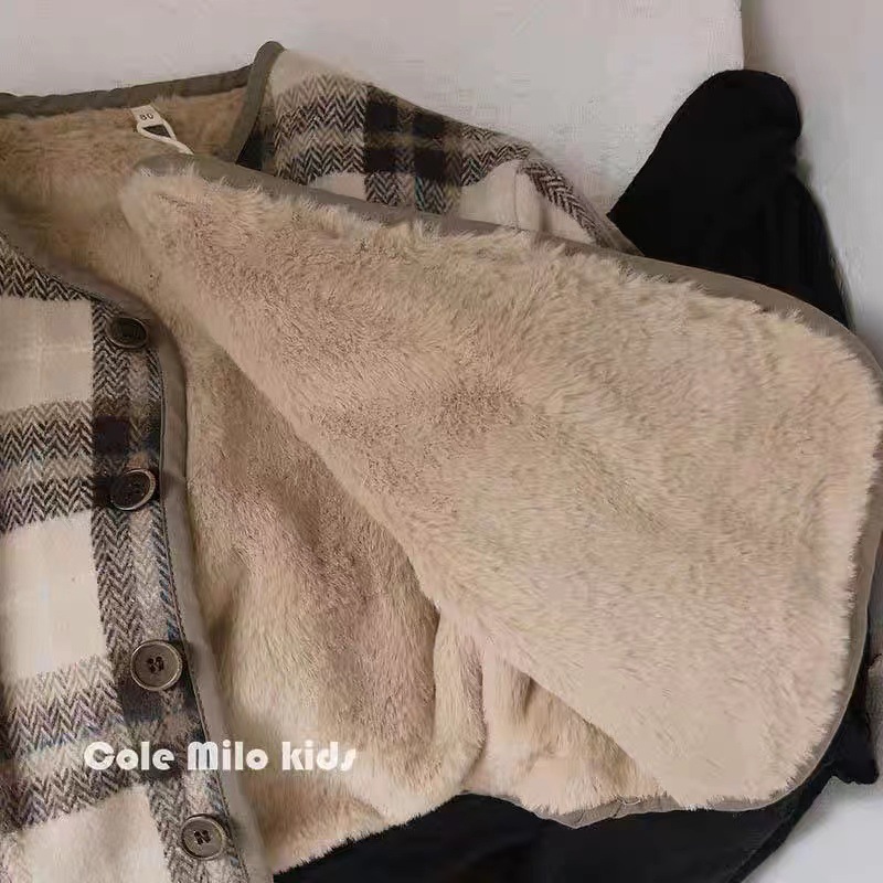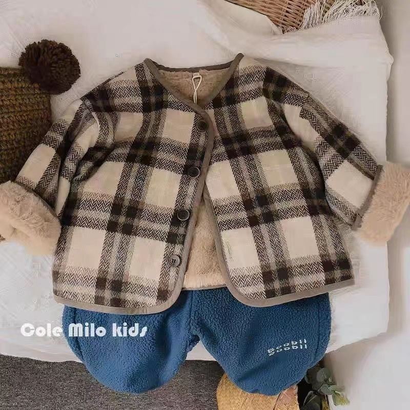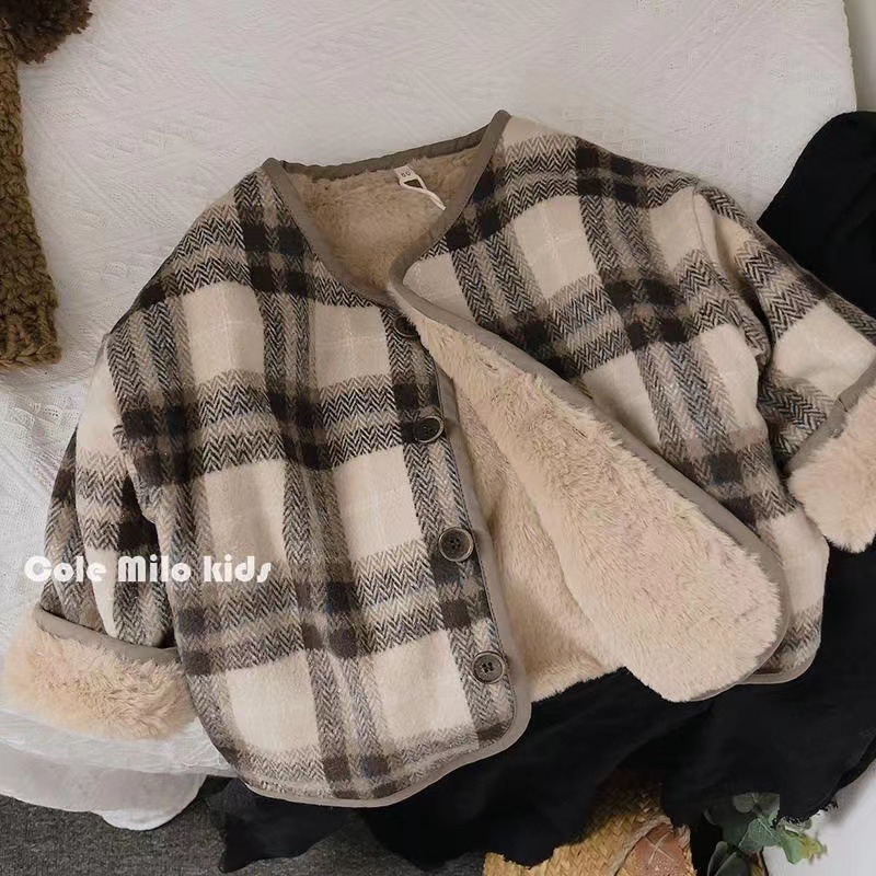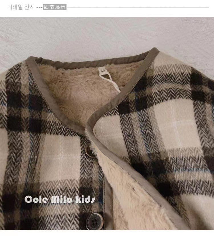 어린이 격자 무늬 양털 코트 한국식 신작 모직 가을과 겨울 코트 아기의 캐주얼 올매치 두꺼운 코튼 코트스토어 가기