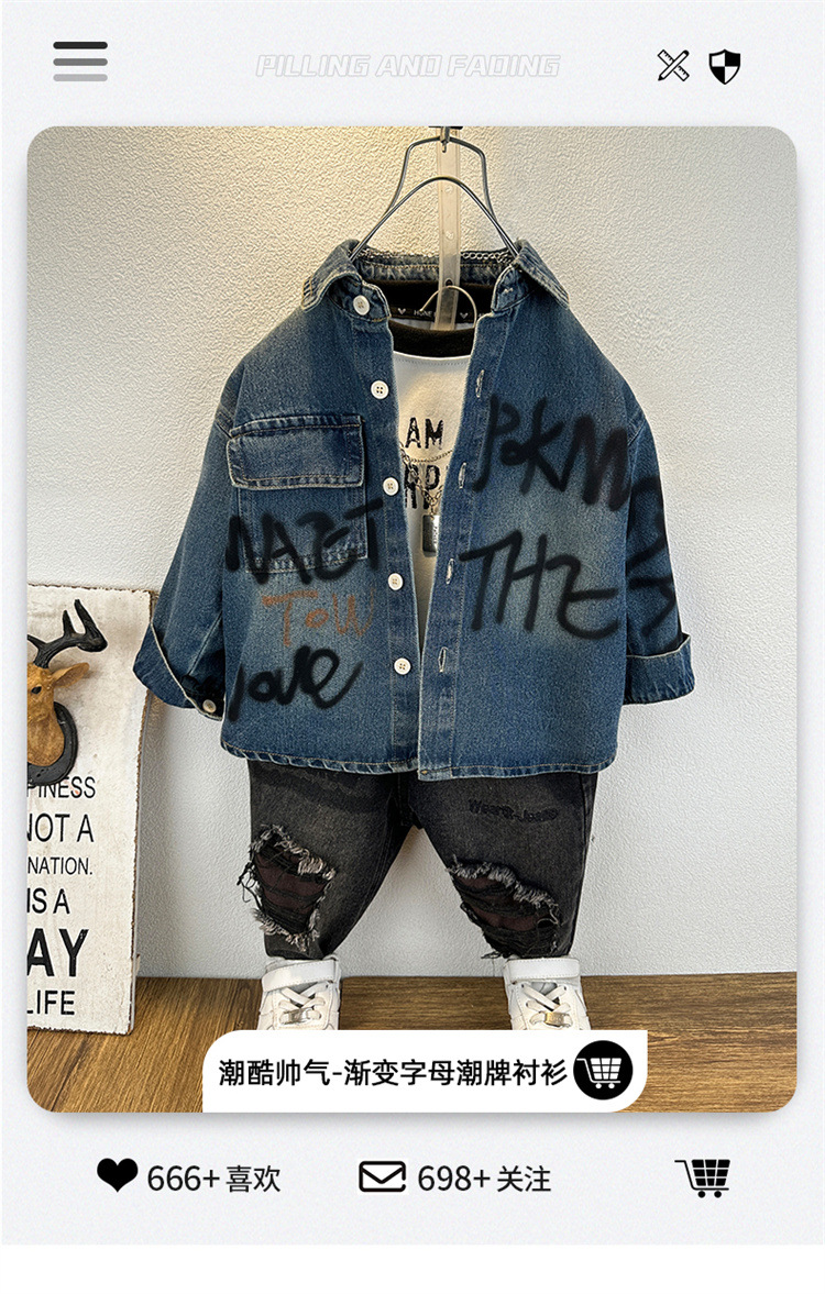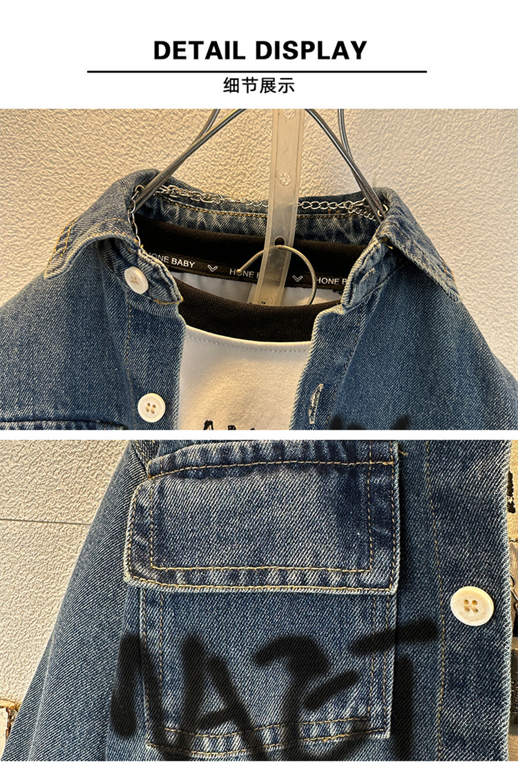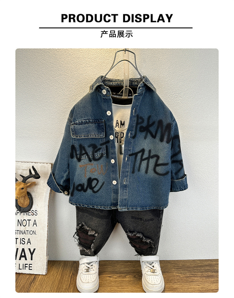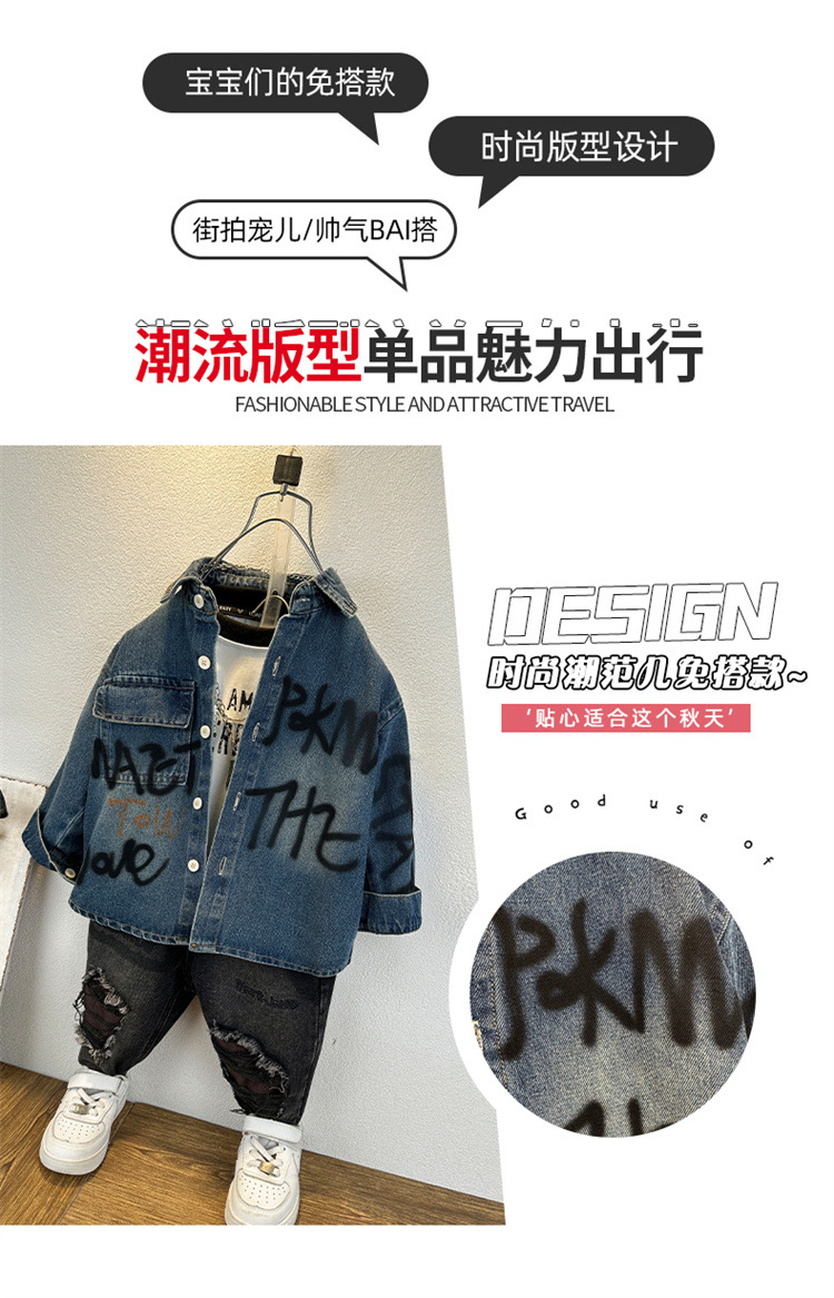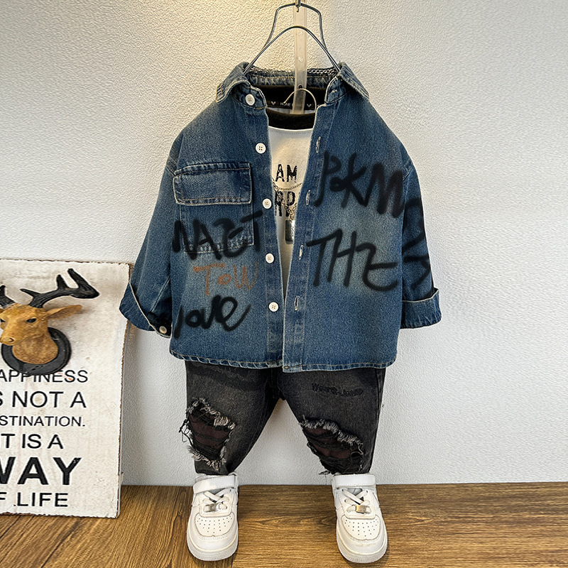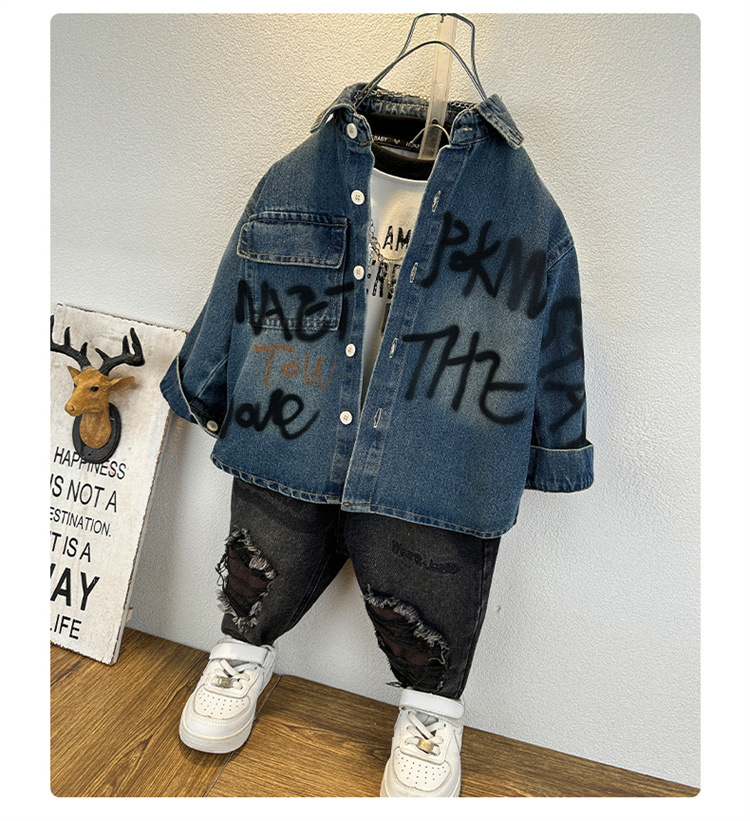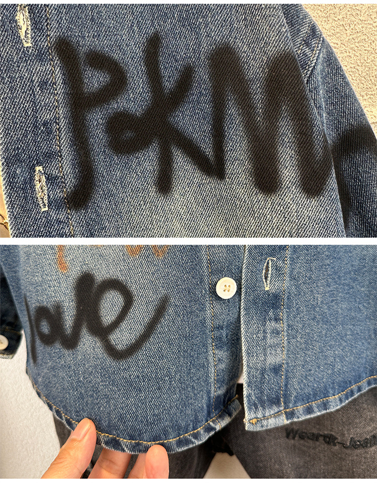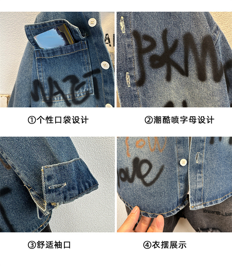 소년의 점진적 변화 스프레이 캐릭터 트렌디 한 브랜드 셔츠 봄과 가을 옷 어린이 잘 생긴 캐주얼 셔츠 어린이 서양식 올 매치 재킷