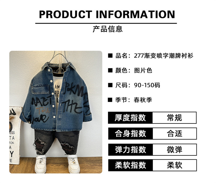소년의 점진적 변화 스프레이 캐릭터 트렌디 한 브랜드 셔츠 봄과 가을 옷 어린이 잘 생긴 캐주얼 셔츠 어린이 서양식 올 매치 재킷스토어 가기