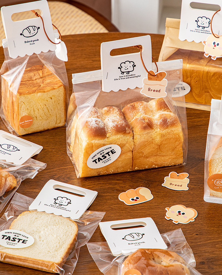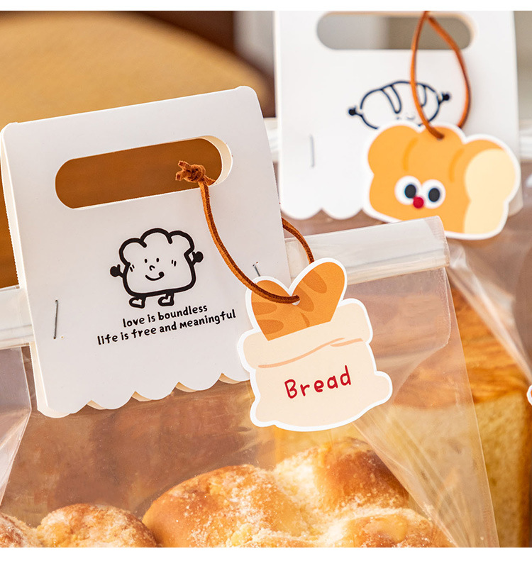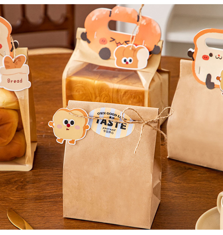 토스트 빵 포장 가방 귀여운 스티커 카드 태그 작은 카드 라벨 베이킹 패커 가방 장식