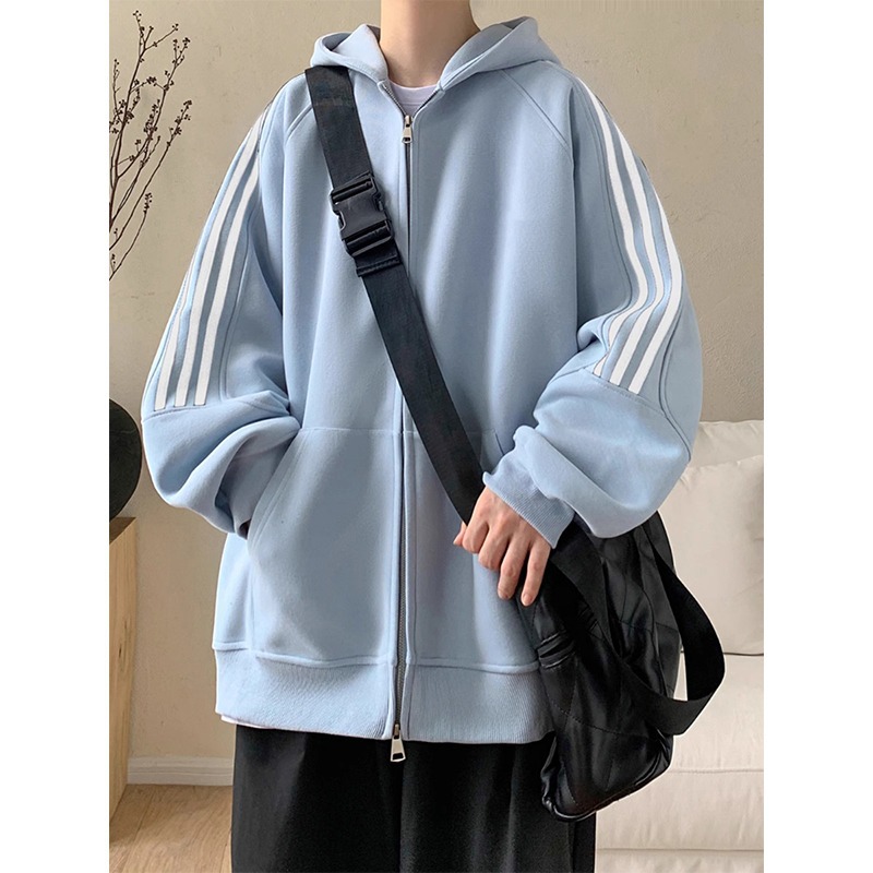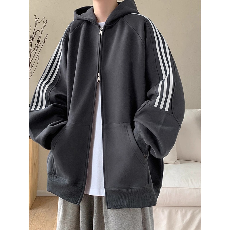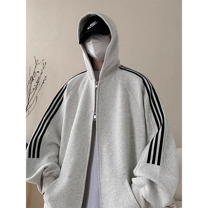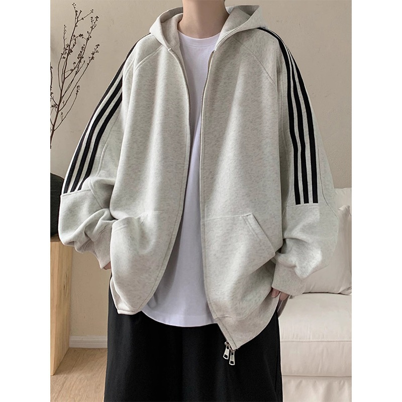 아메리칸 레트로 3 바 후드 카디건 스웨터 남성 봄과 가을 패션 브랜드 디자인 센스 루즈 캐주얼 스포츠 자켓스토어 가기