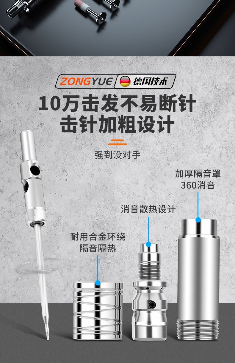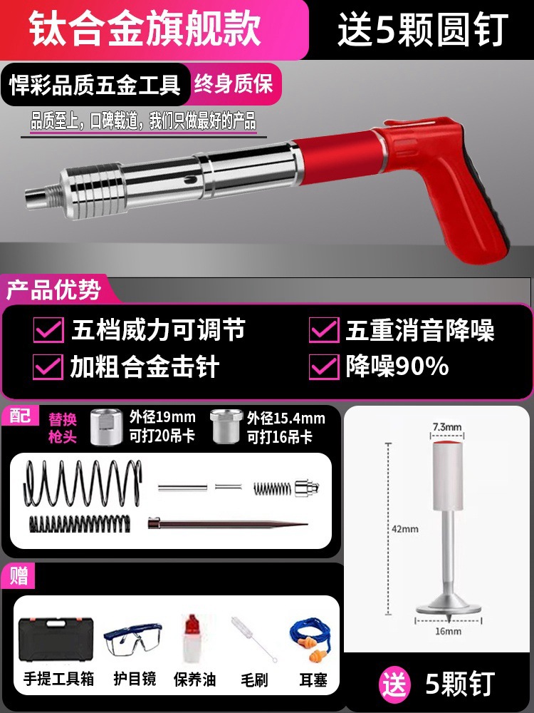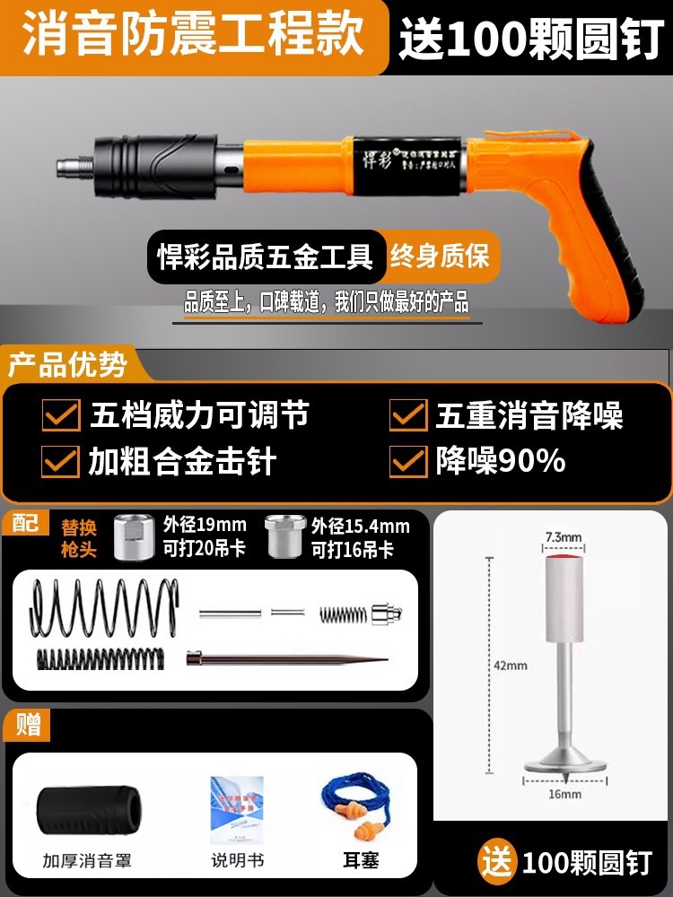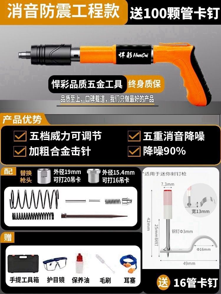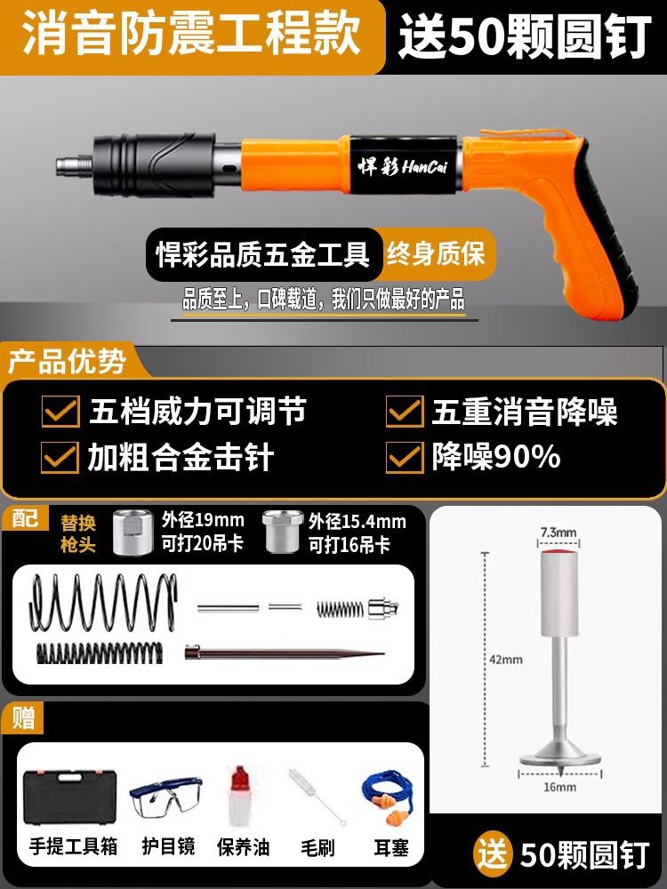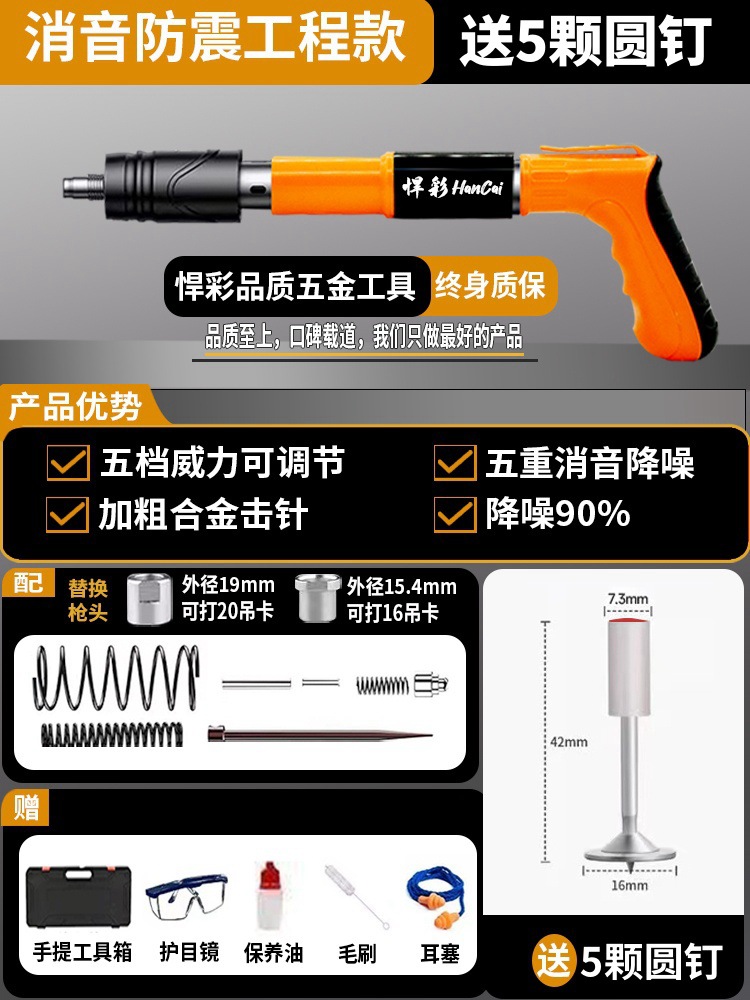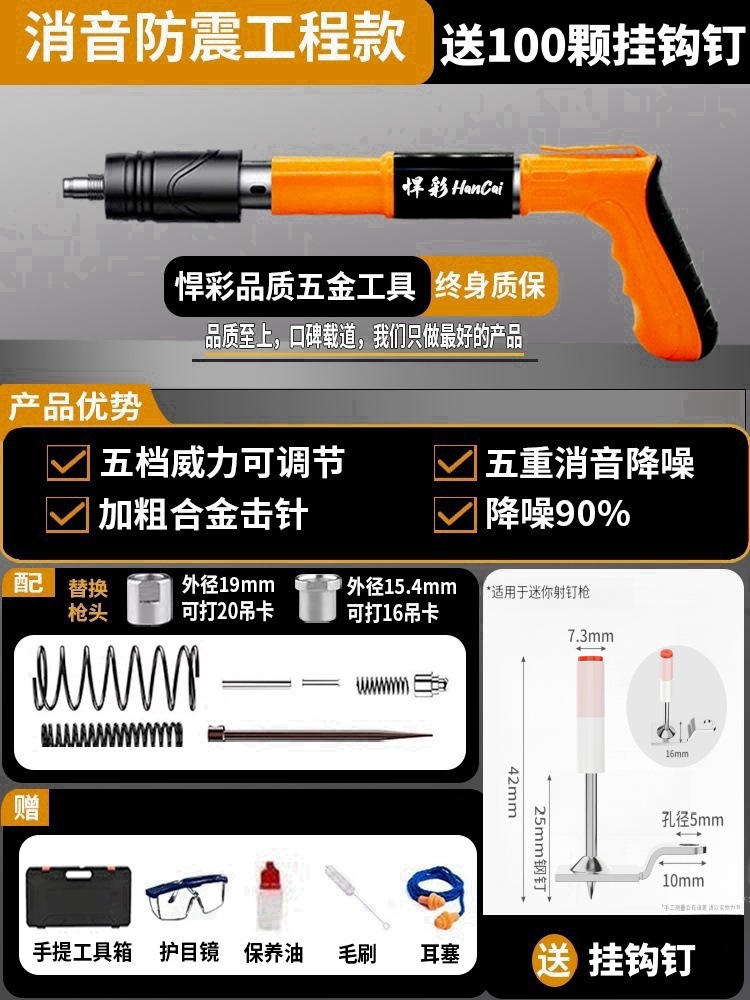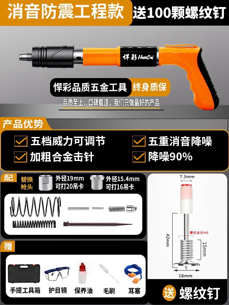 • [독일 기술 - 평생 보증] 전체 강철 몸체 건 못총 + 도구 상자 + 나사산 못 100개(무료 너트), 5단 조절 및 3건 헤드