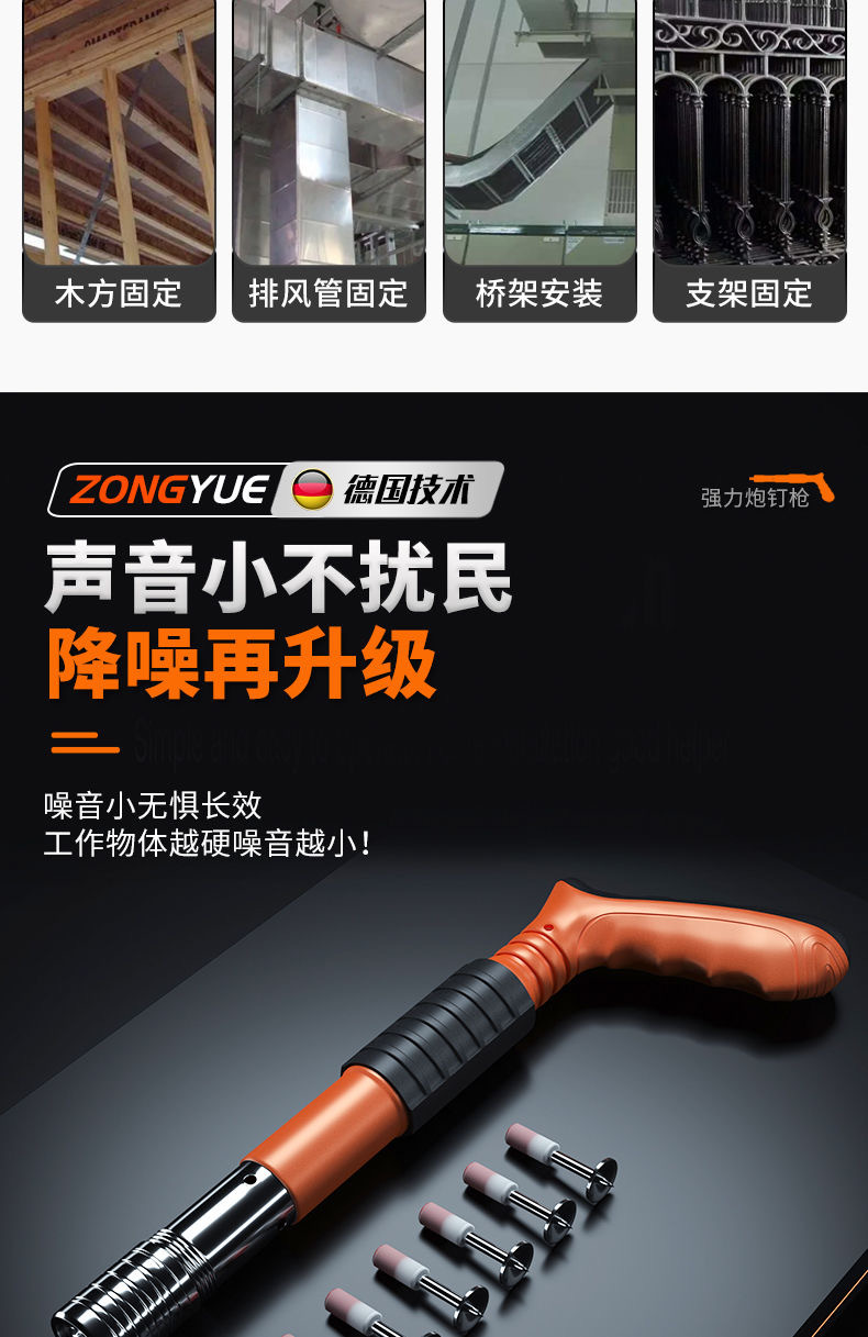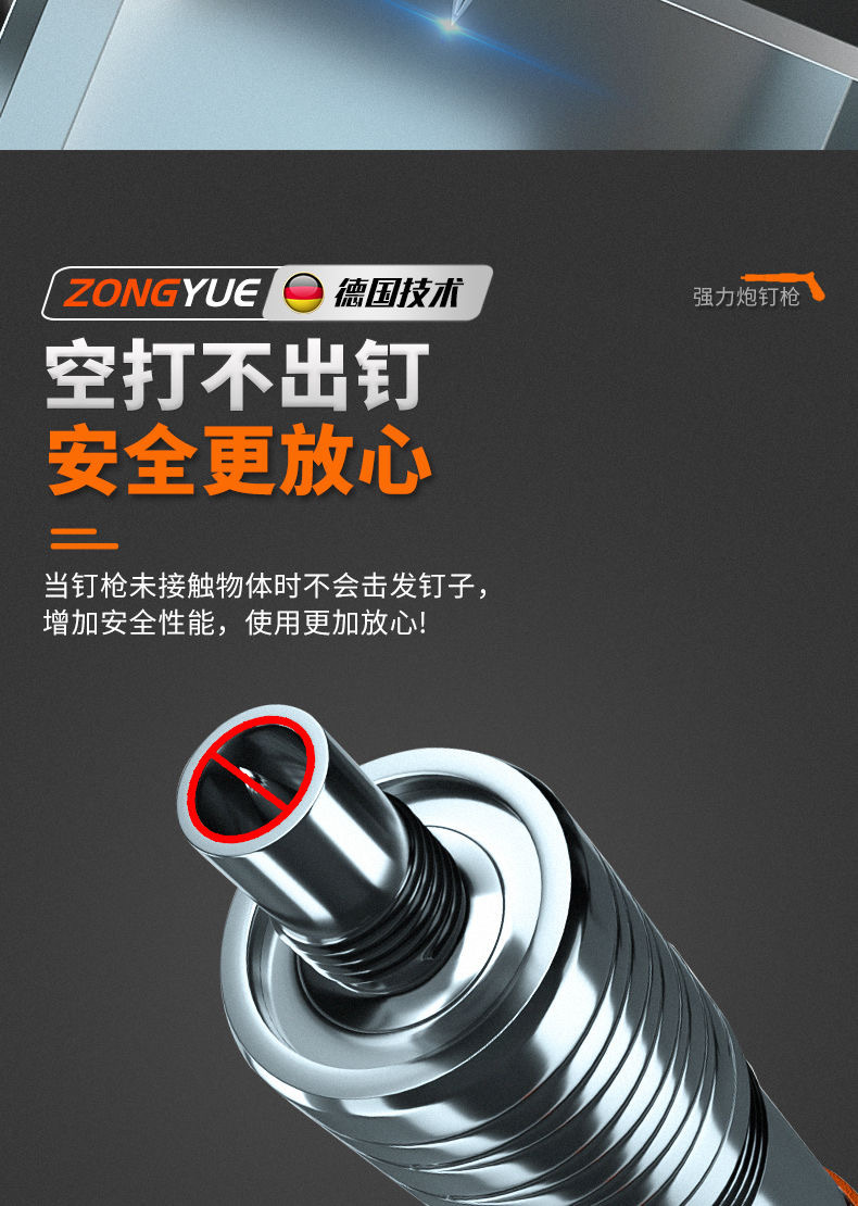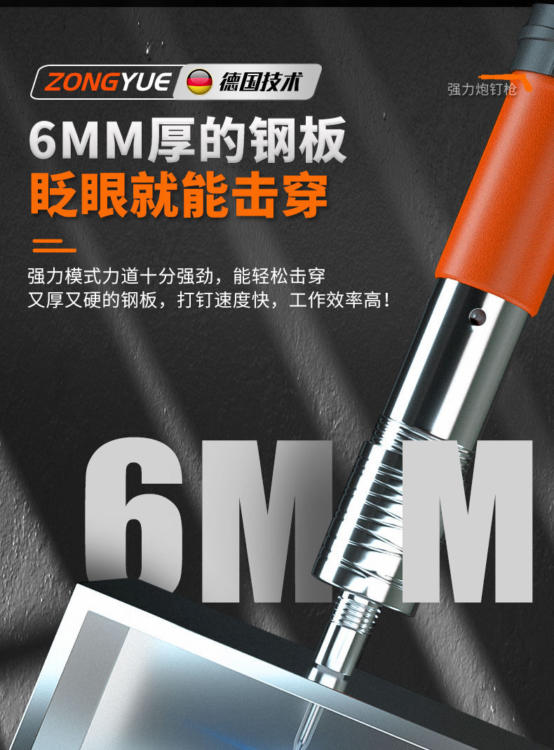 • [독일 기술 - 평생 보증] 모든 강철 몸체 대포 못총 + 도구 상자 + 25관 고정 못 100개, 5단 조절 및 3개의 총 머리