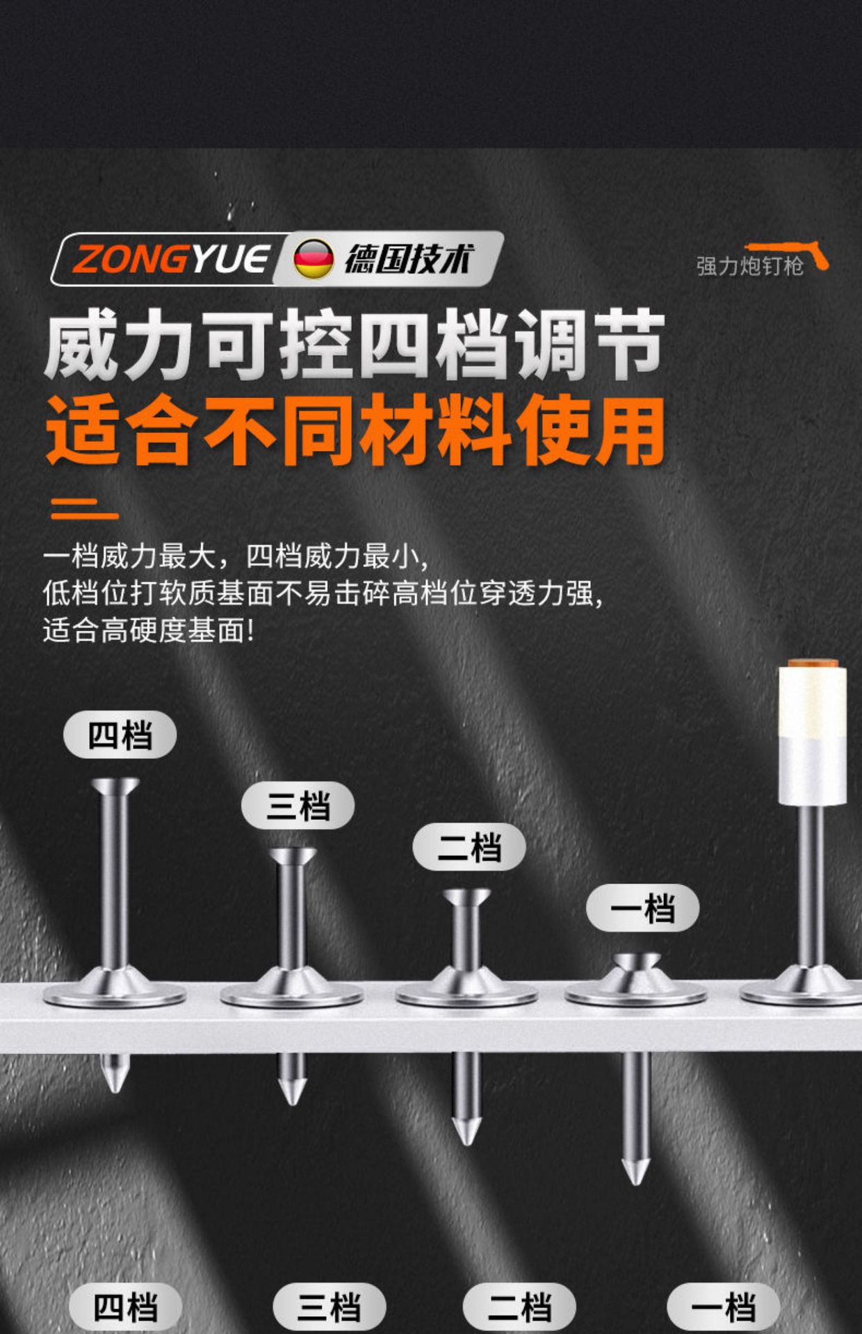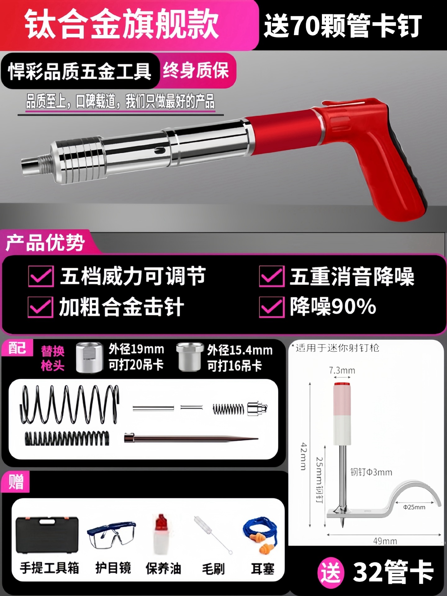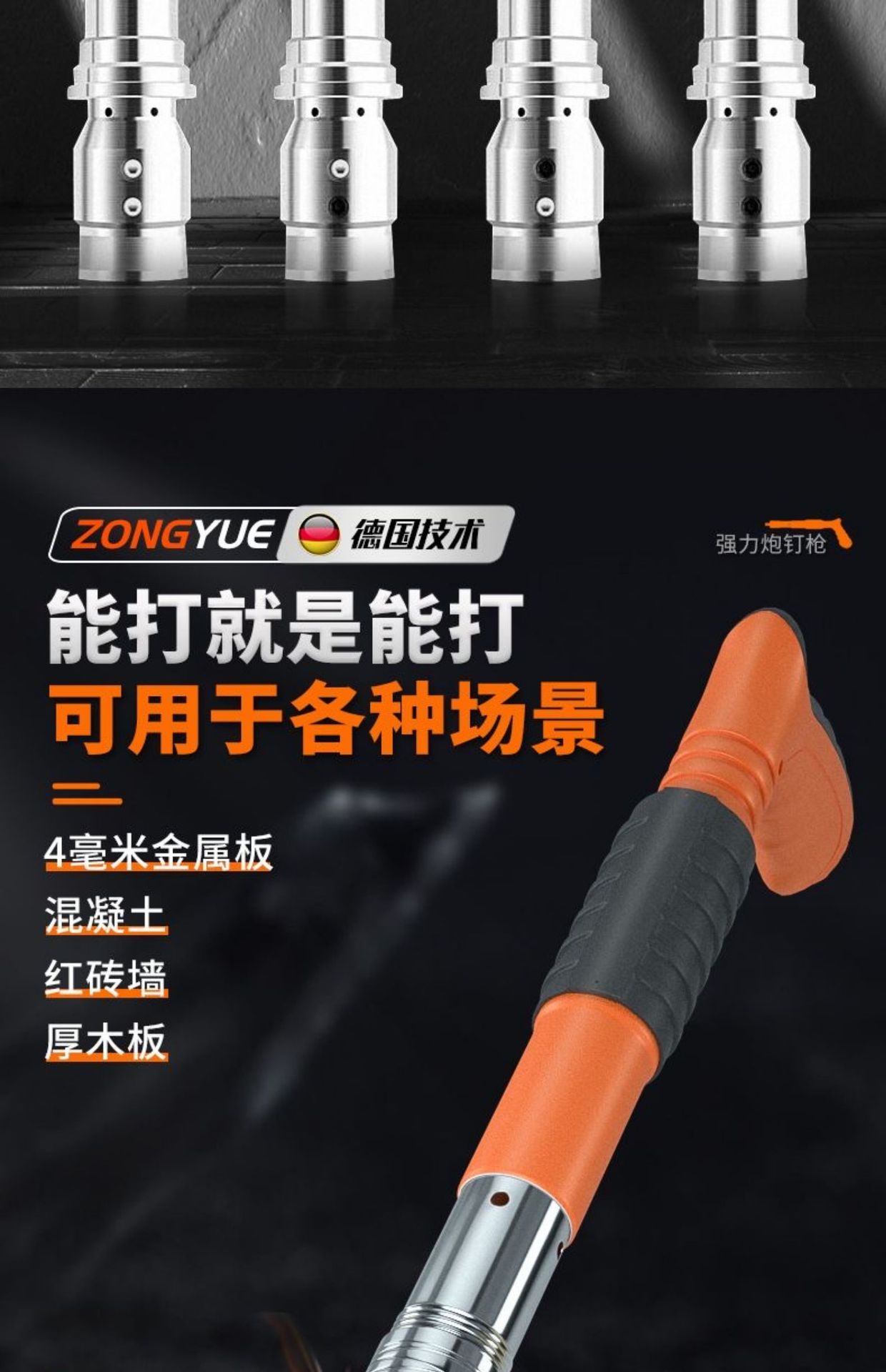 • [독일 기술 - 평생 보증] 모든 강철 몸체 대포 못총 + 도구 상자 + 25관 고정 못 100개, 5단 조절 및 3개의 총 머리