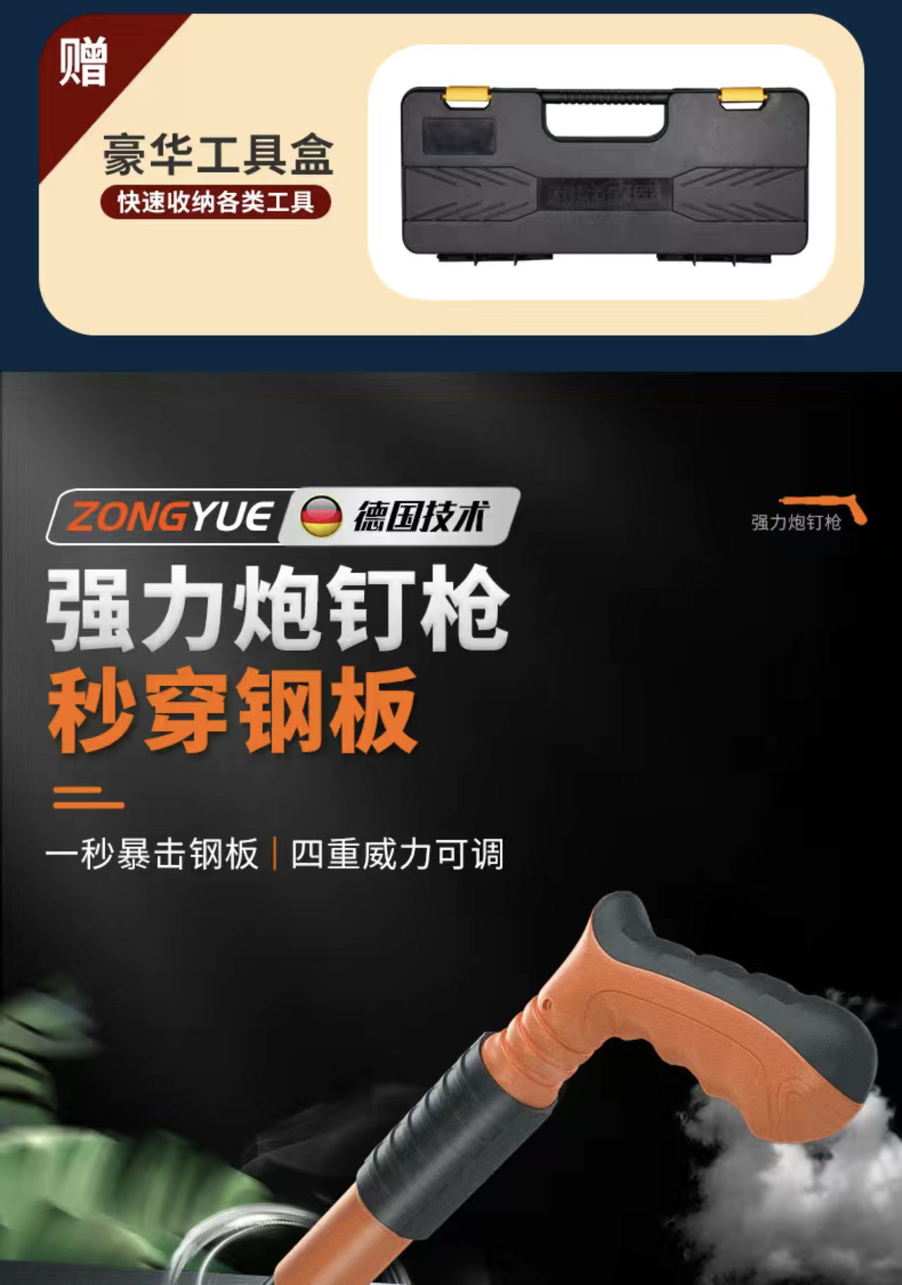 • [독일 기술 - 평생 보증] 모든 강철 몸체 못총 + 도구 상자 + 둥근 못 5개