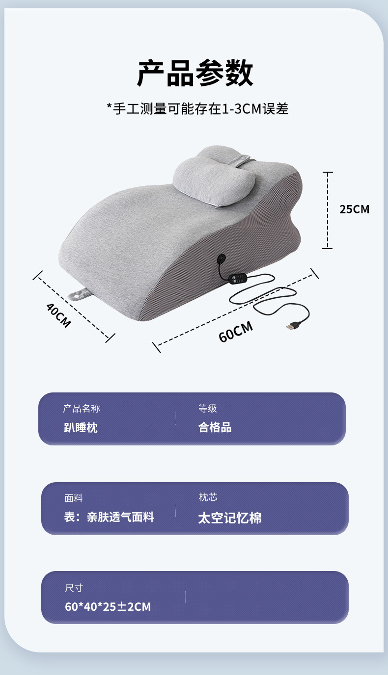 • 다기능 엎드려 자는 베개 기본 젤 타입 (통기성 좋은 버드아이 원단 & 연회색 커버 포함)