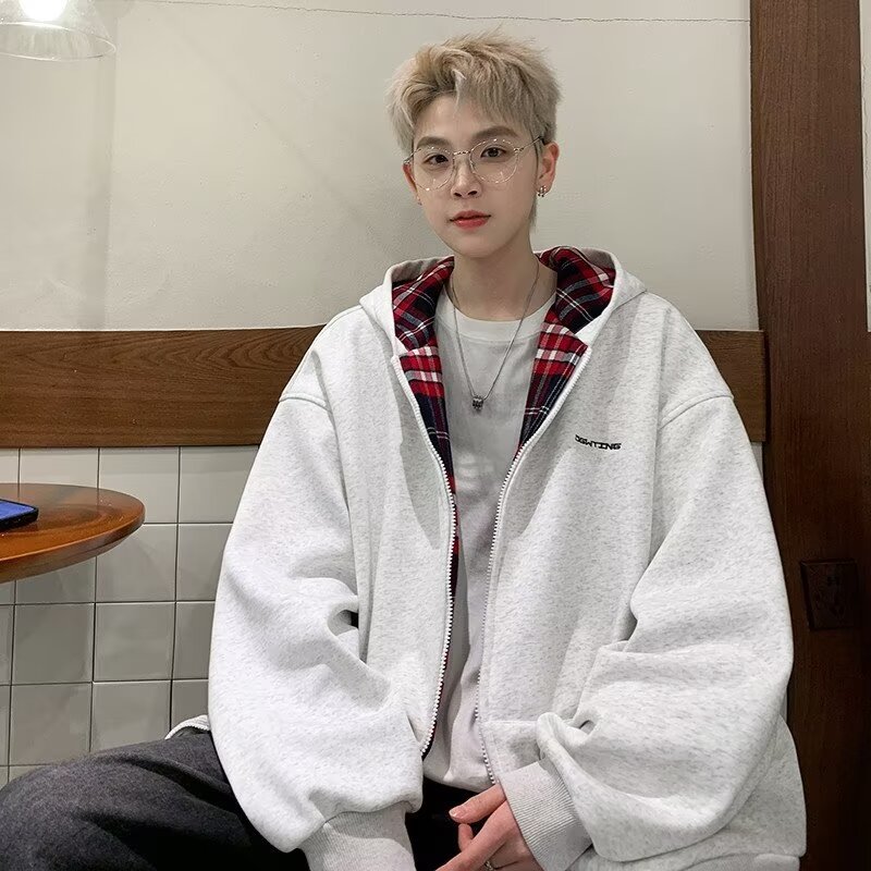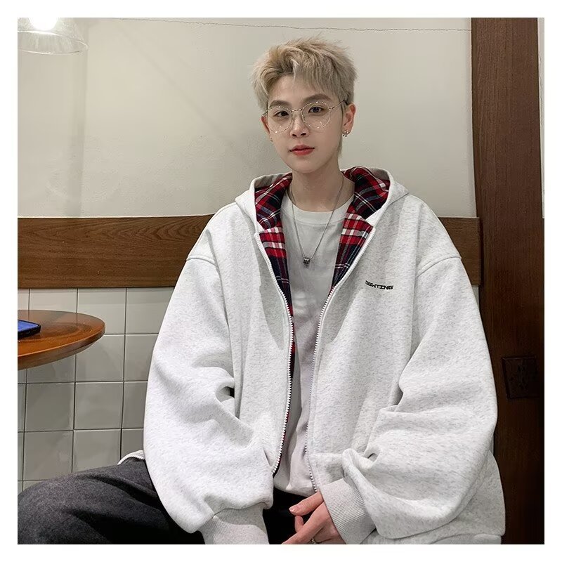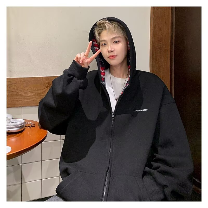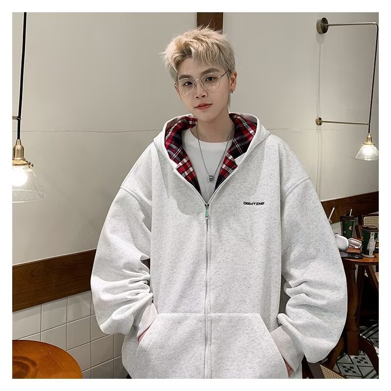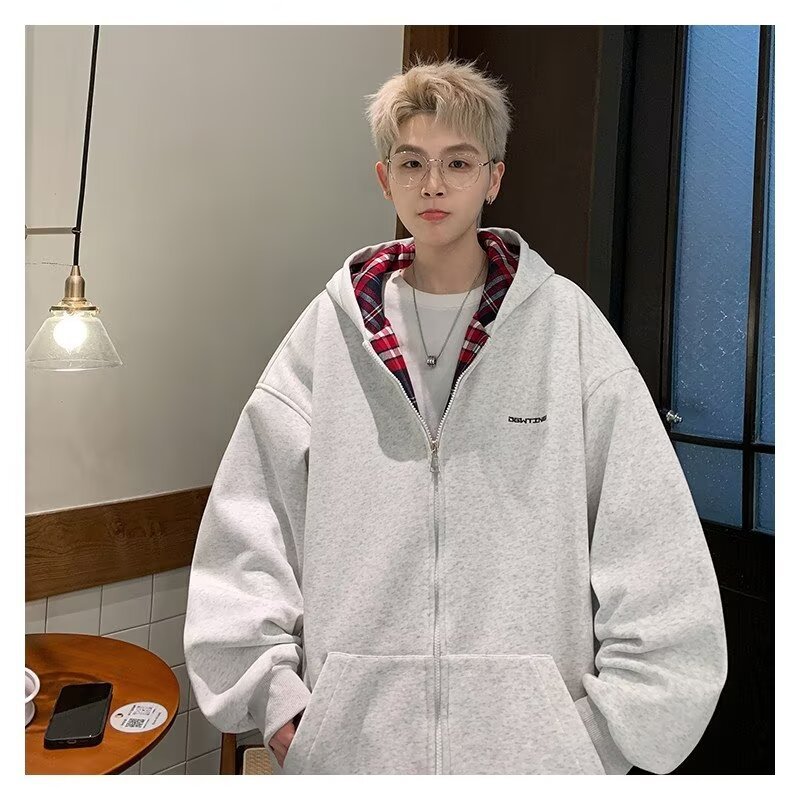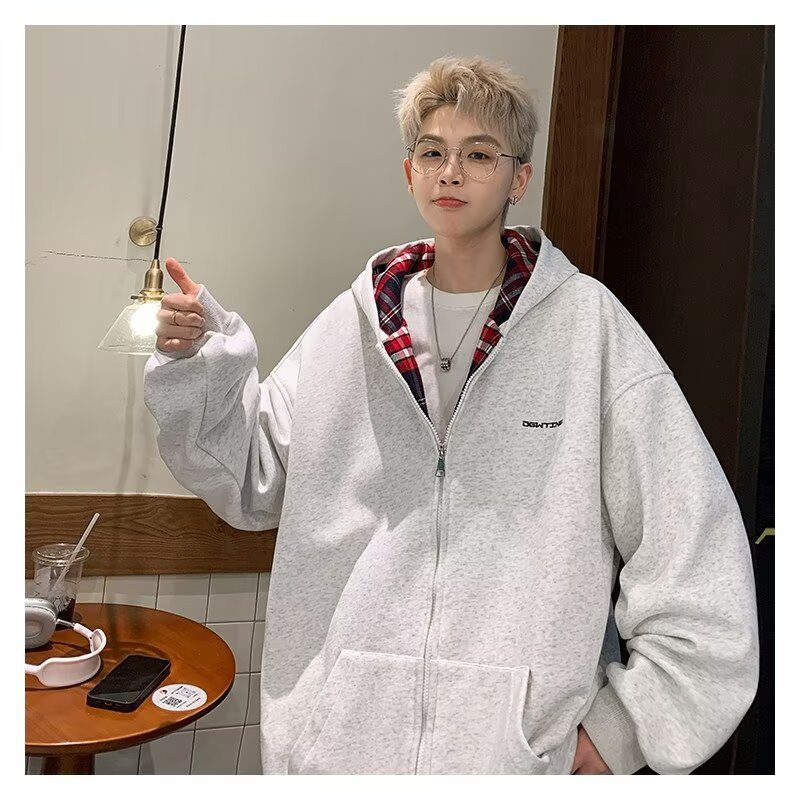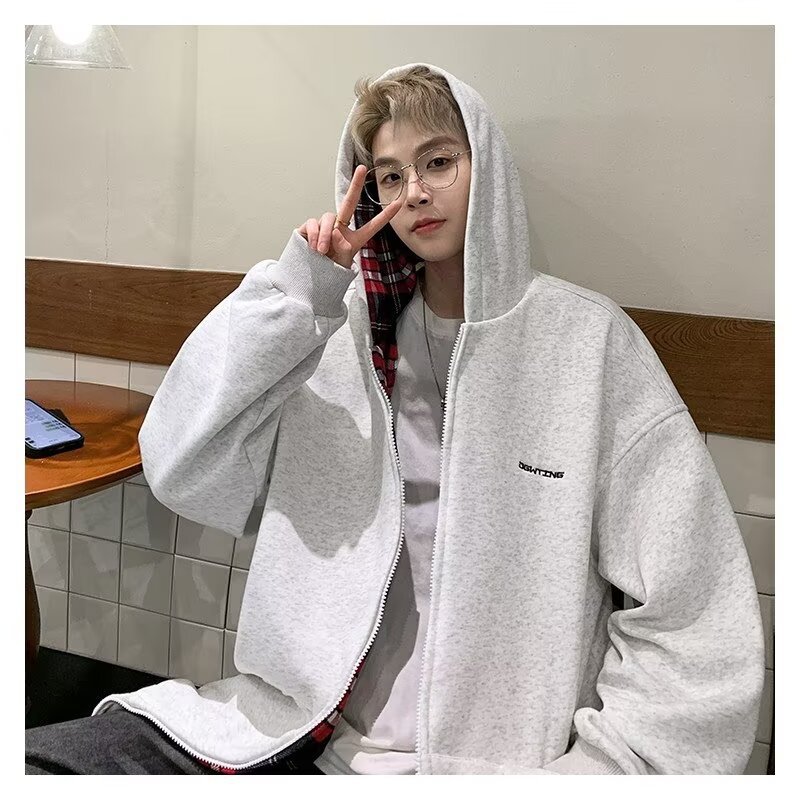 미국 스타일의 두꺼운 기모 가디건 스웨트셔츠 남성용 2026 가을 겨울 신상 루즈핏 트렌디 브랜드 청소년 캐주얼 후드 재킷스토어 가기
