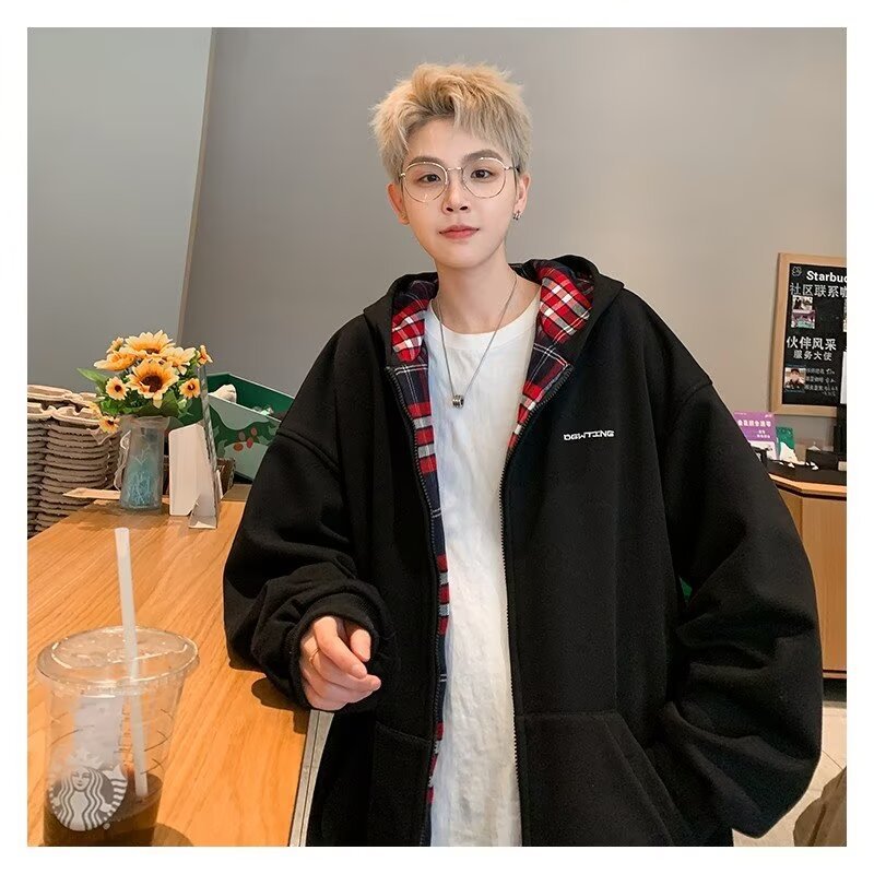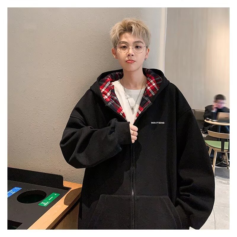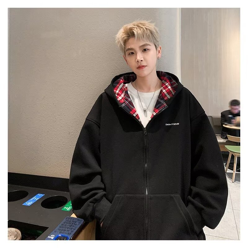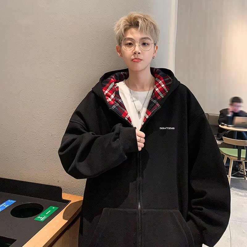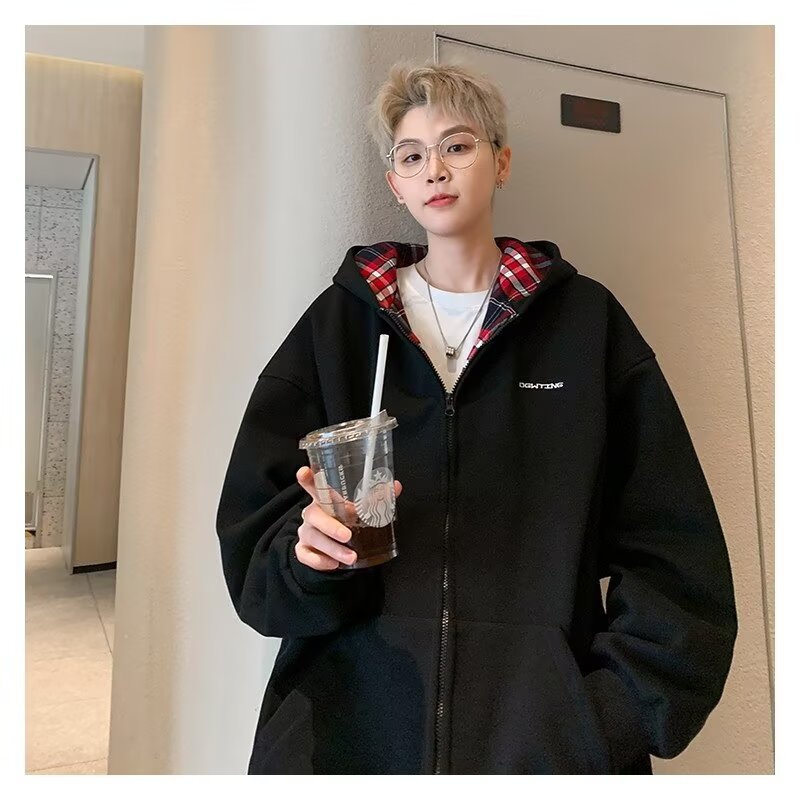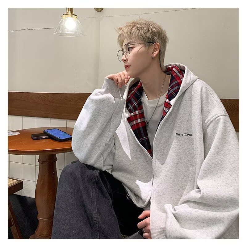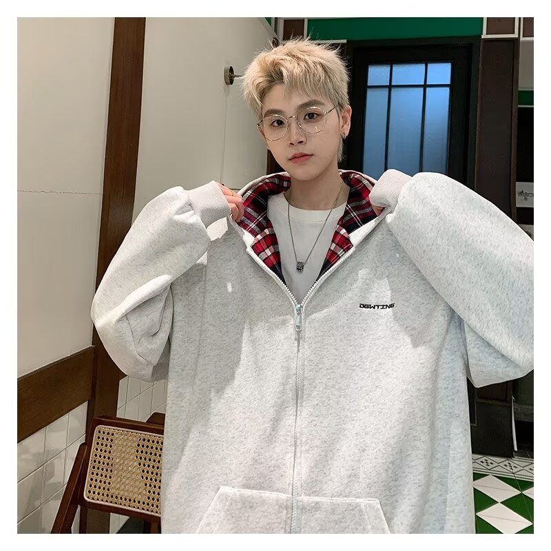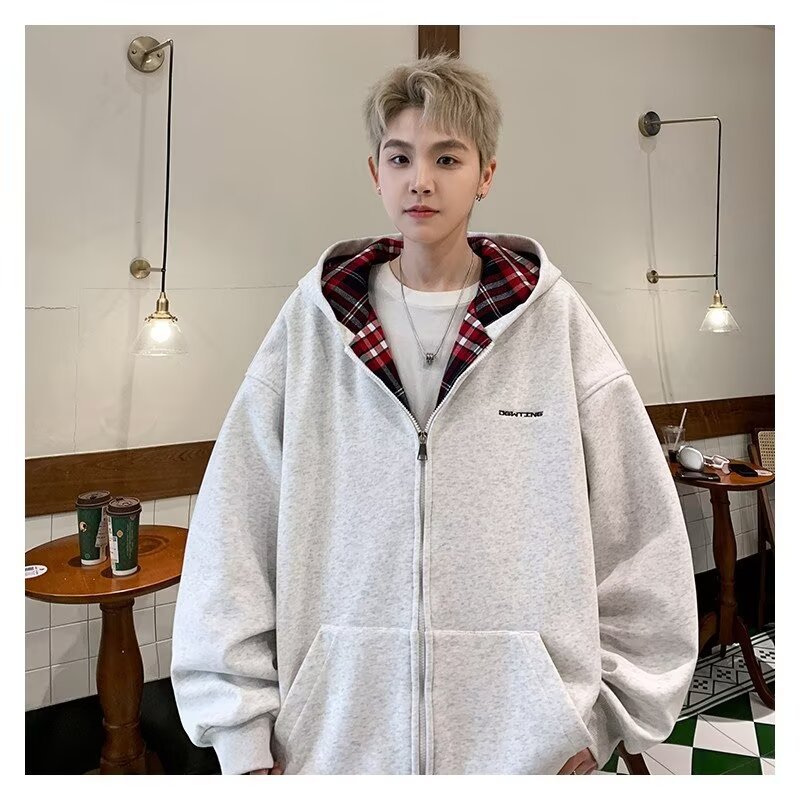 미국 스타일의 두꺼운 기모 가디건 스웨트셔츠 남성용 2026 가을 겨울 신상 루즈핏 트렌디 브랜드 청소년 캐주얼 후드 재킷스토어 가기