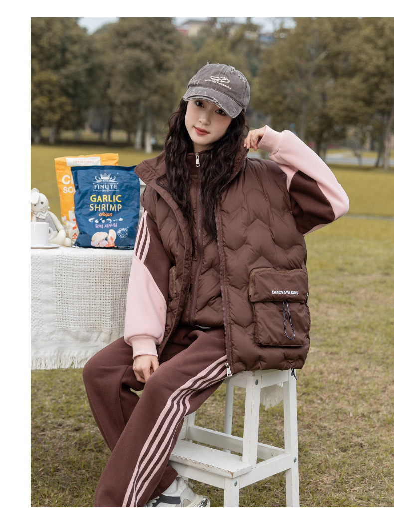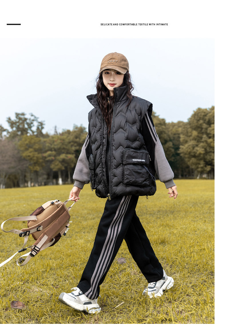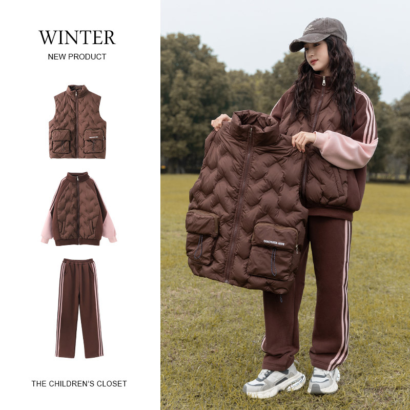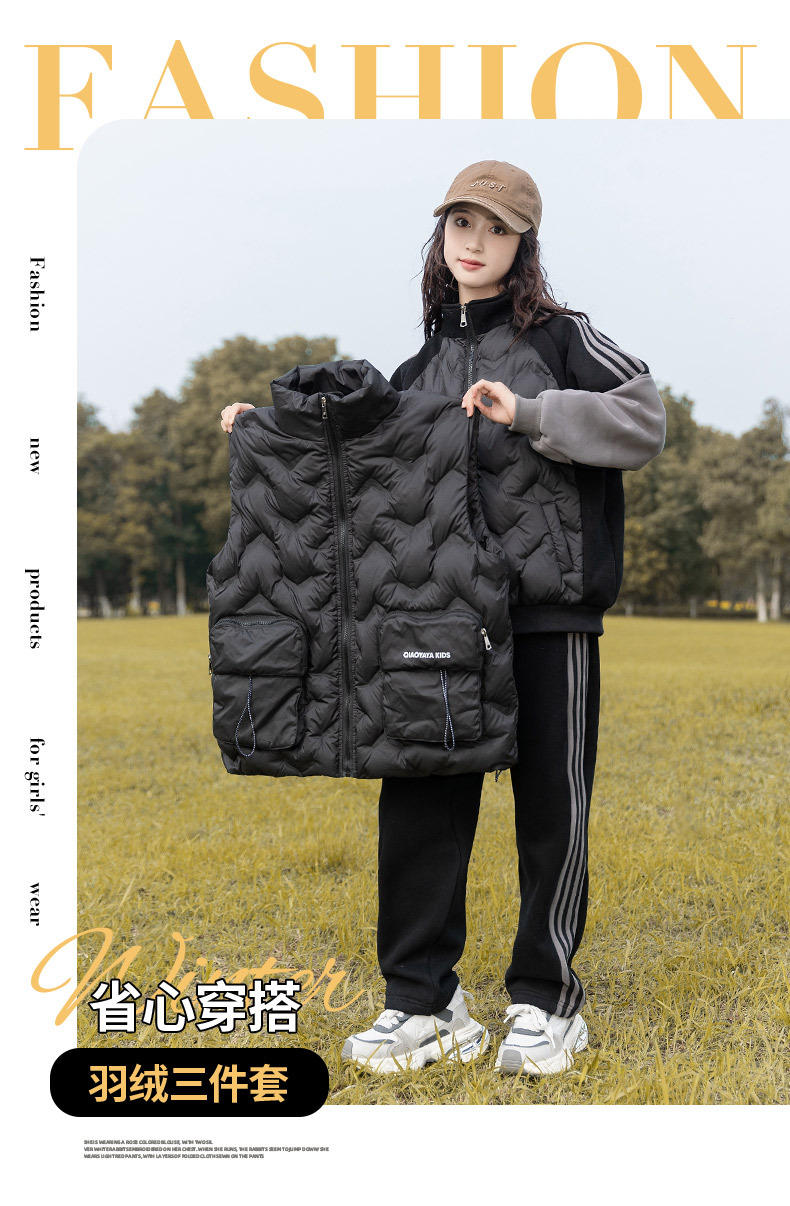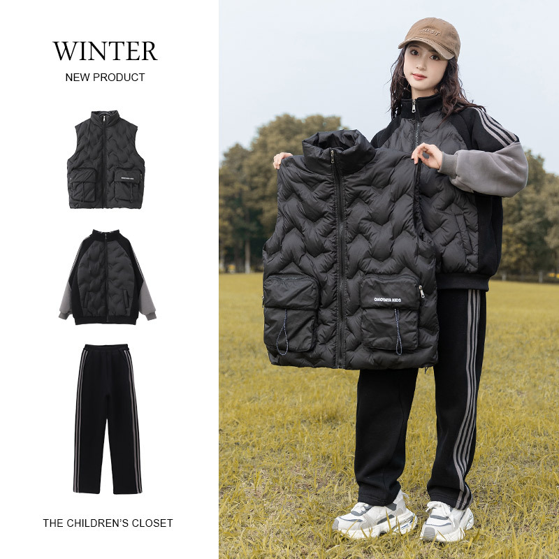 여아용 다운 조끼 가을 겨울 2025 신상 스타일리시한 큰 아이들용 두꺼운 스웨트 셔츠 세트 어린이 겨울 3종 세트스토어 가기