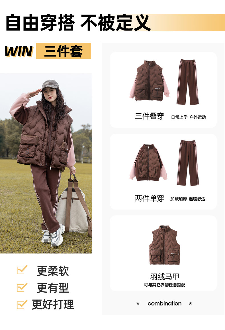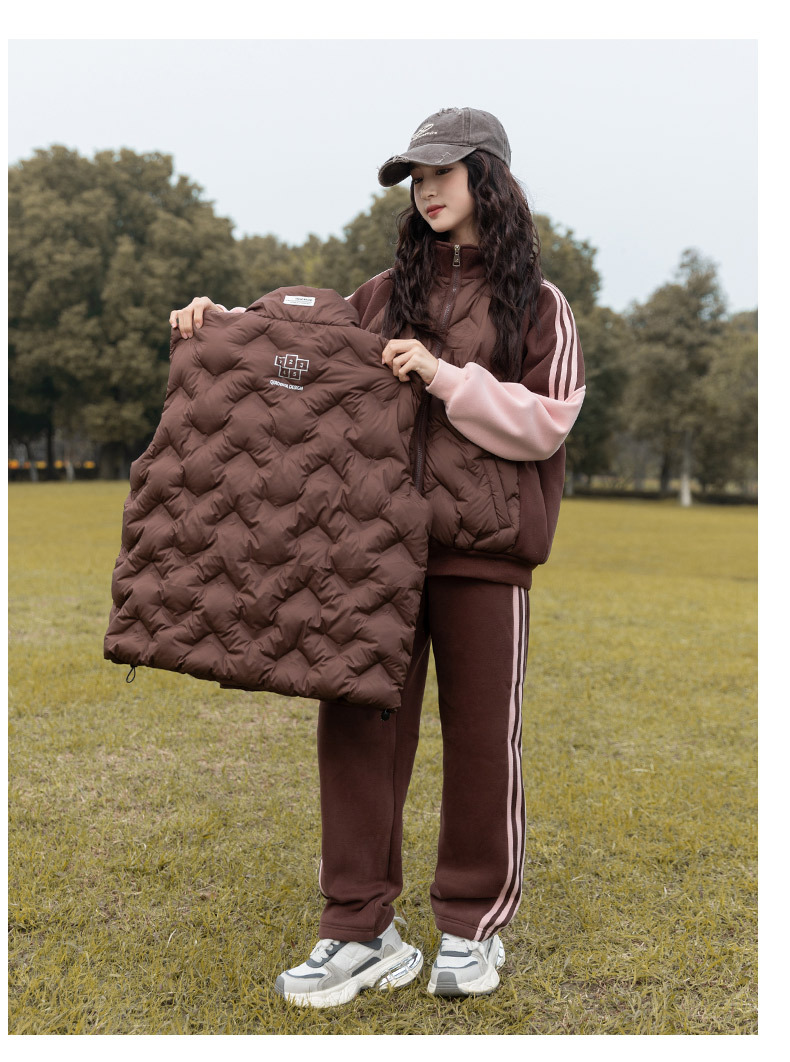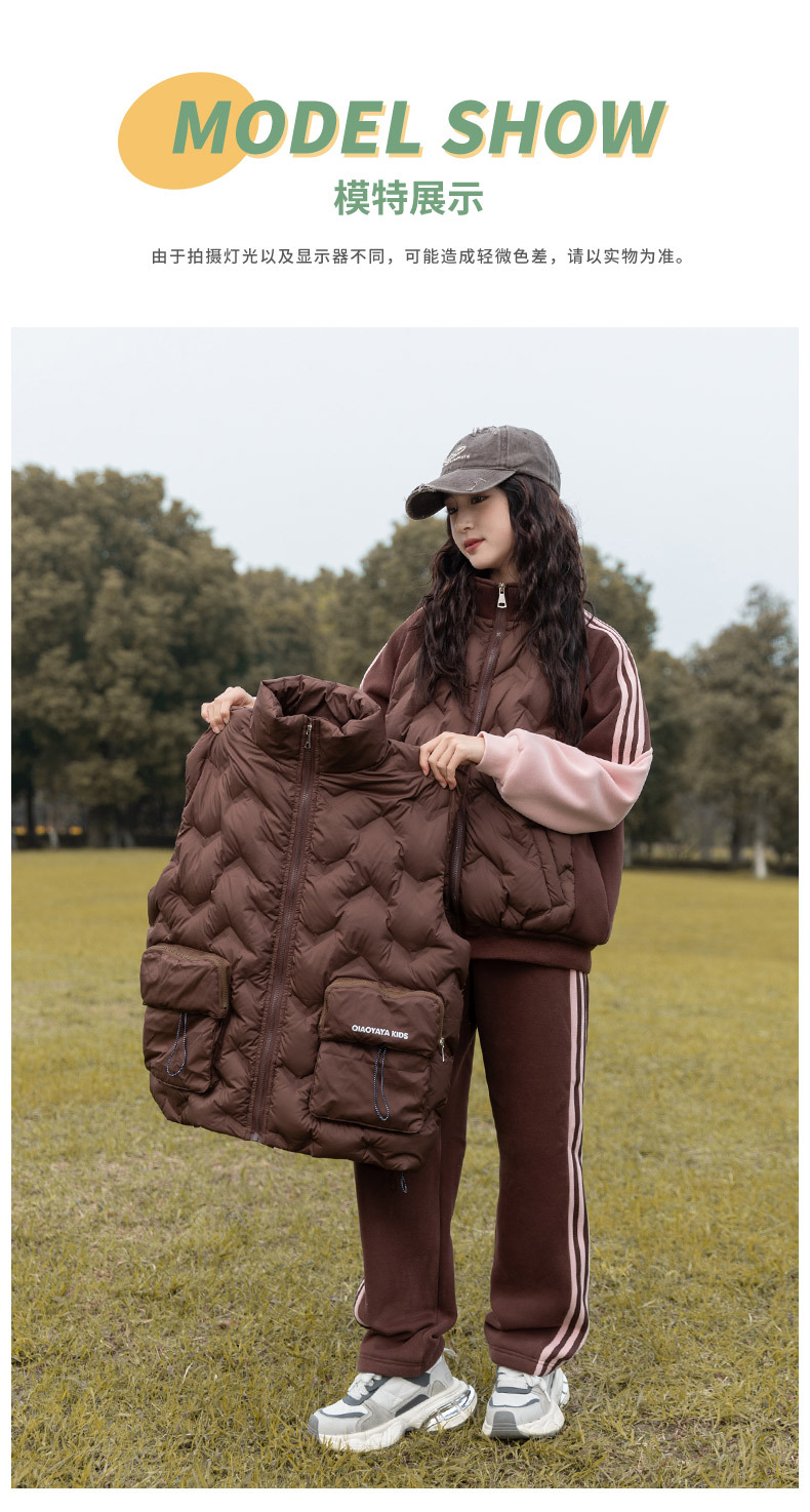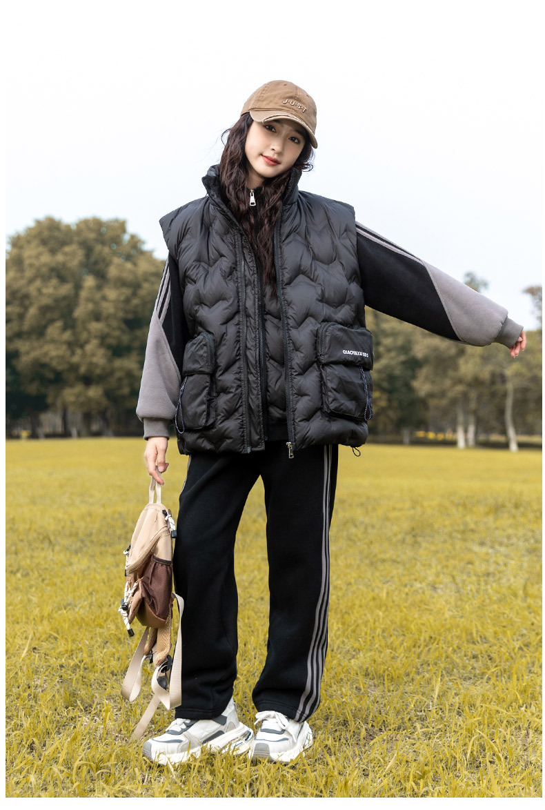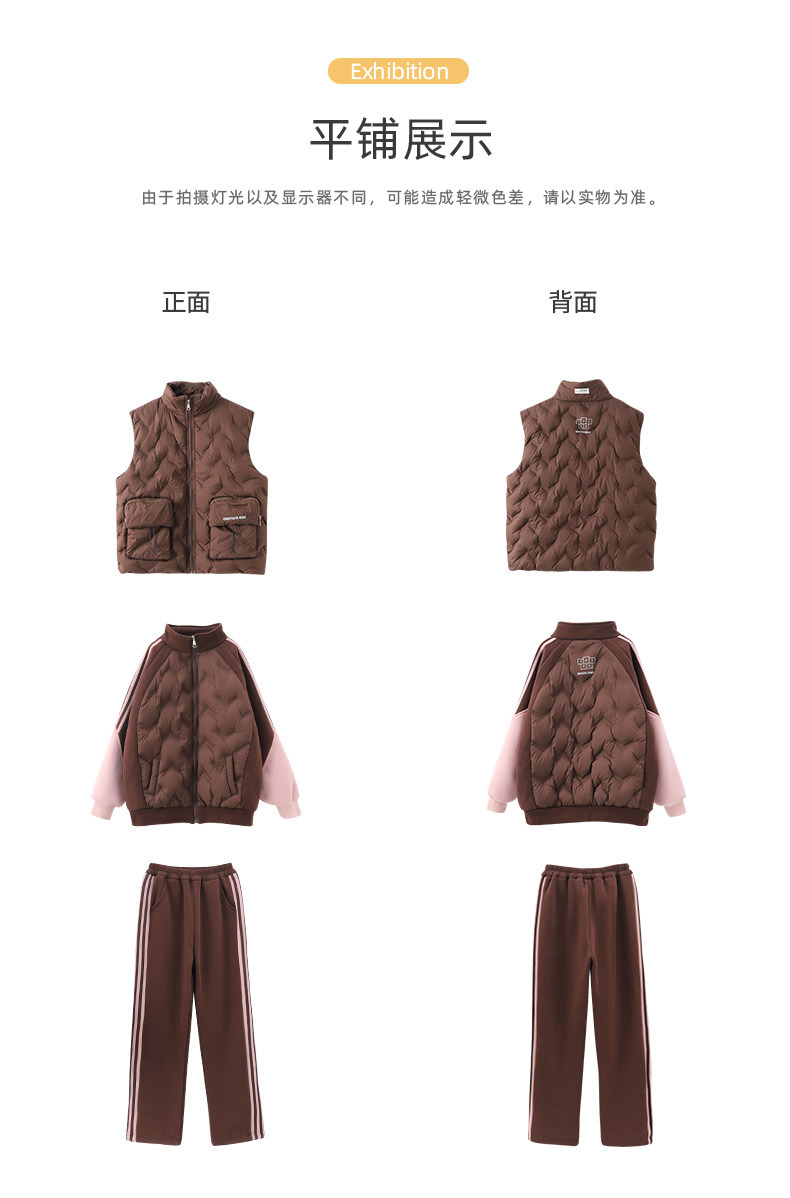 여아용 다운 조끼 가을 겨울 2025 신상 스타일리시한 큰 아이들용 두꺼운 스웨트 셔츠 세트 어린이 겨울 3종 세트스토어 가기