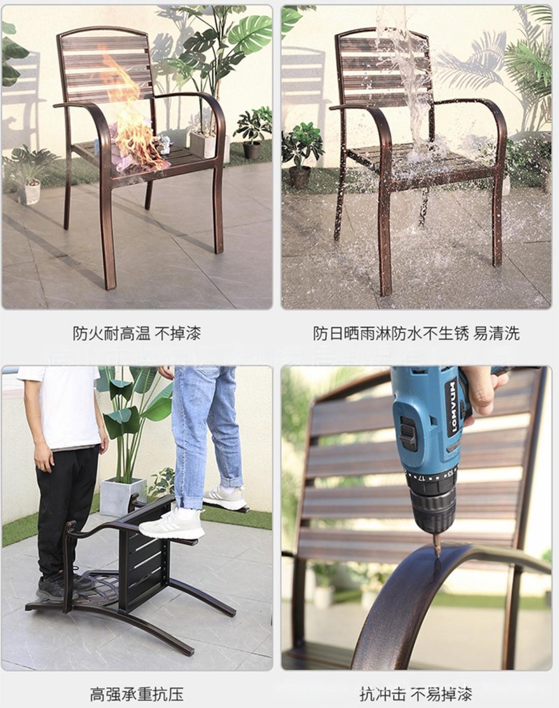 야외 주조 알루미늄 철제 테이블과 의자, 정원, 빌라, 발코니, 레저용 알루미늄 합금 야외 방수 전 알루미늄 식탁스토어 가기