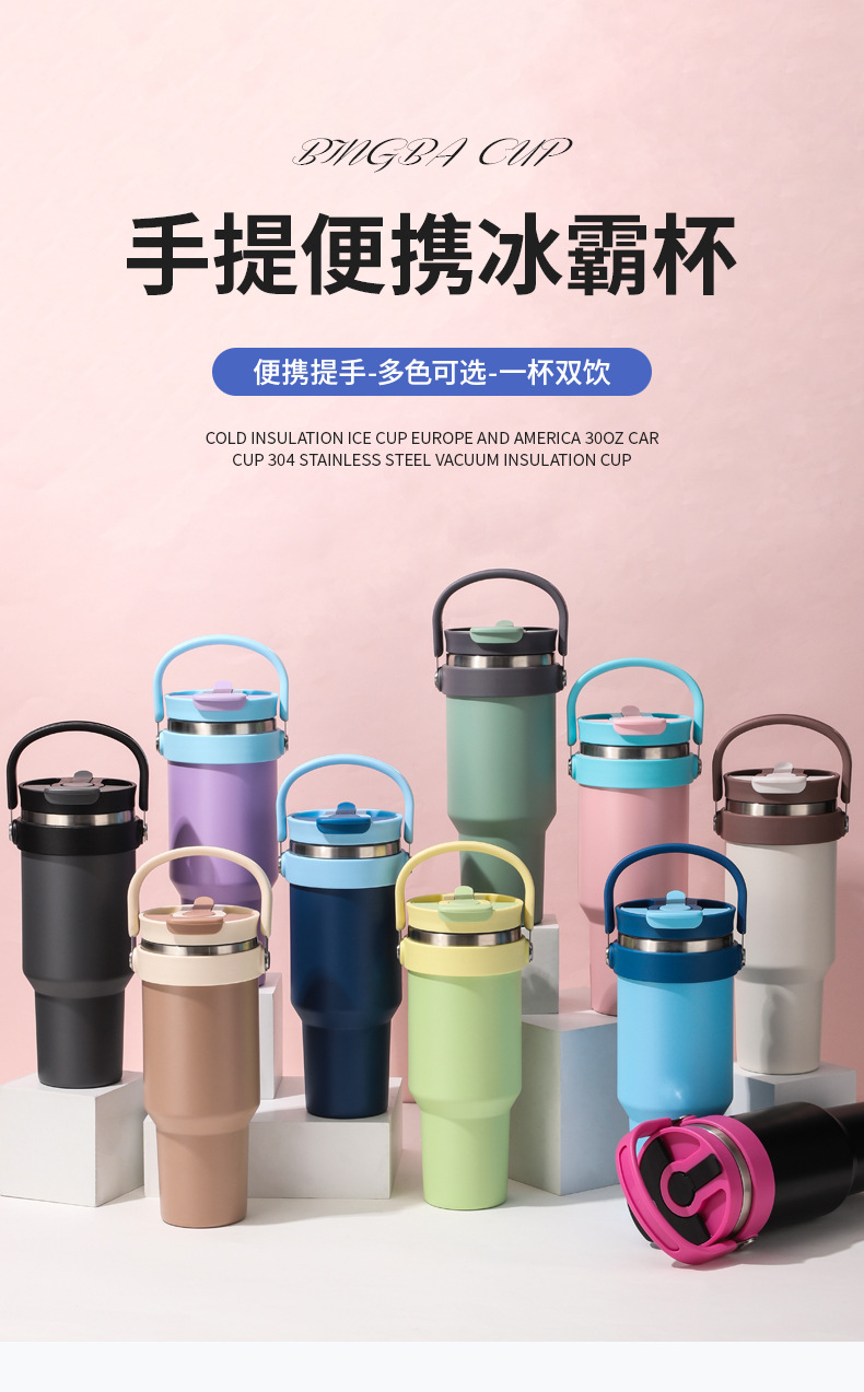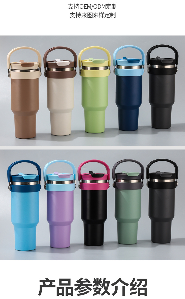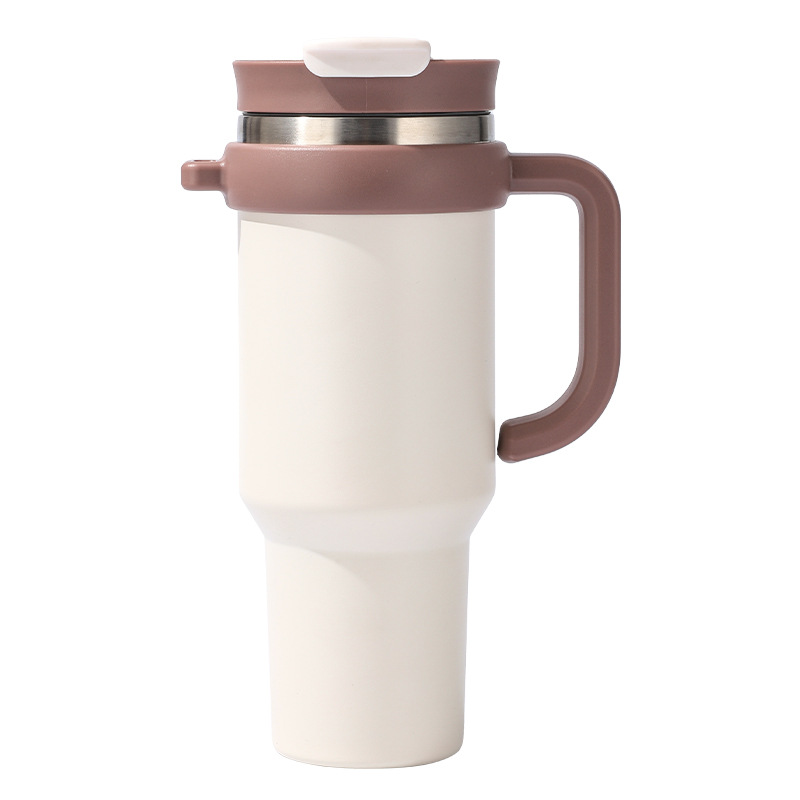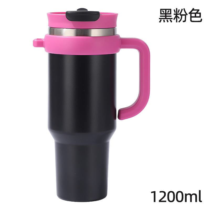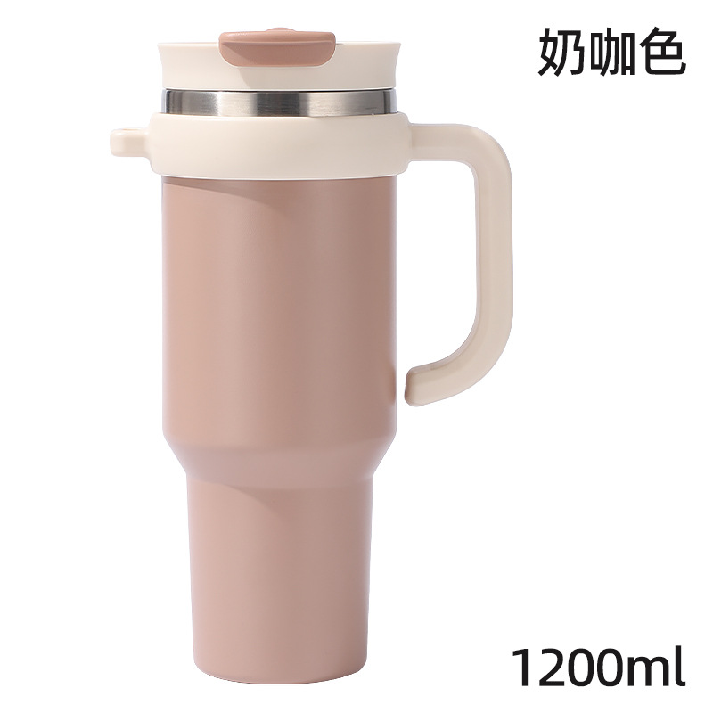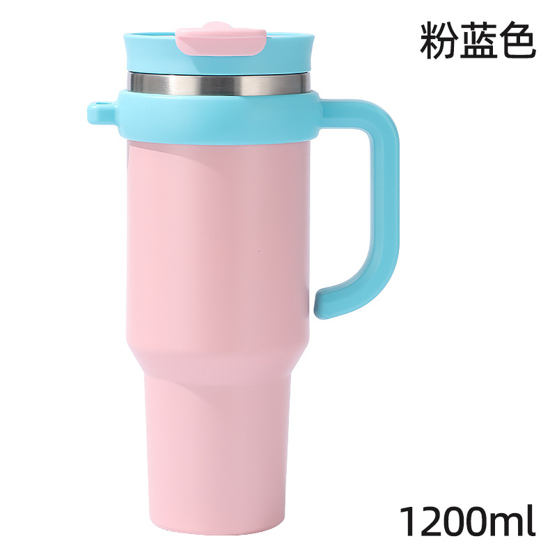 새로운 40 온스 자동차 컵 보온병 컵 내부 및 외부 304 스테인레스 스틸 대용량 가정용 핸들 빨대 더블 마시는 야외스토어 가기