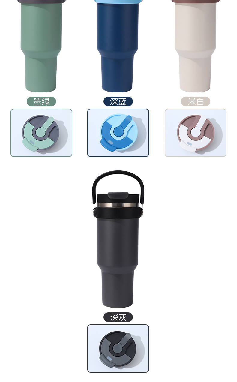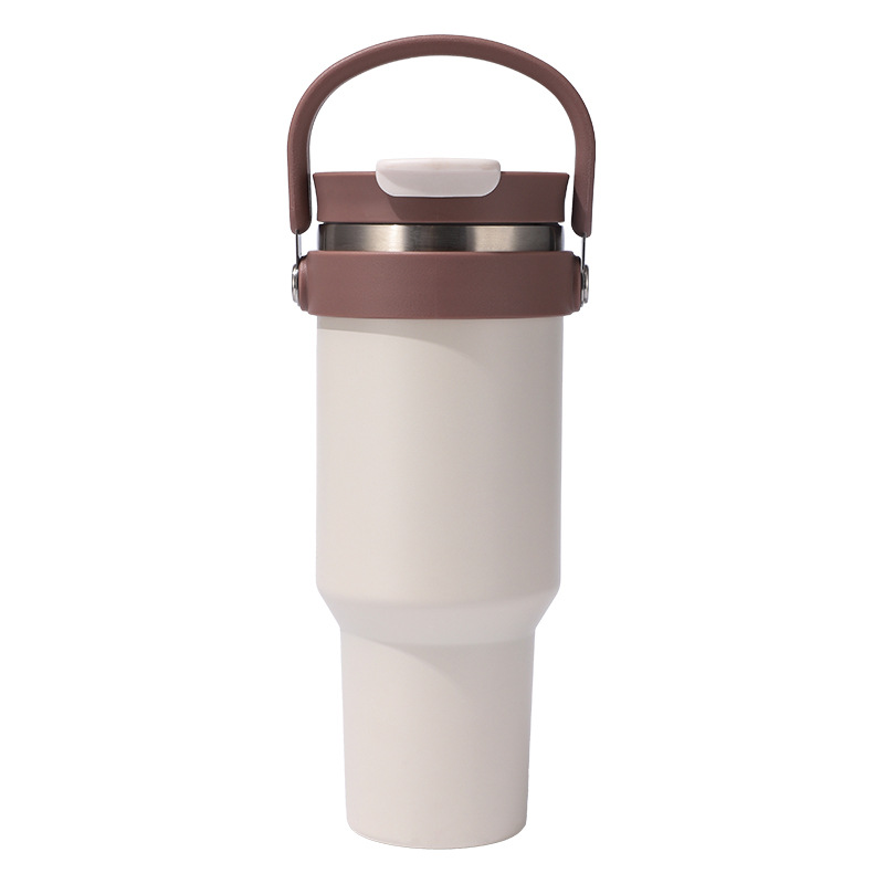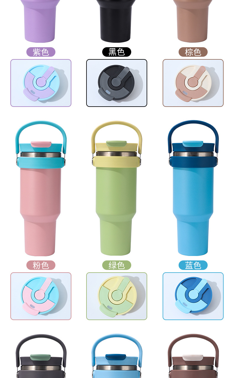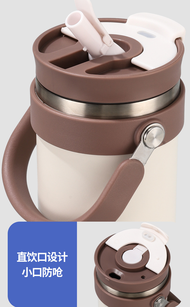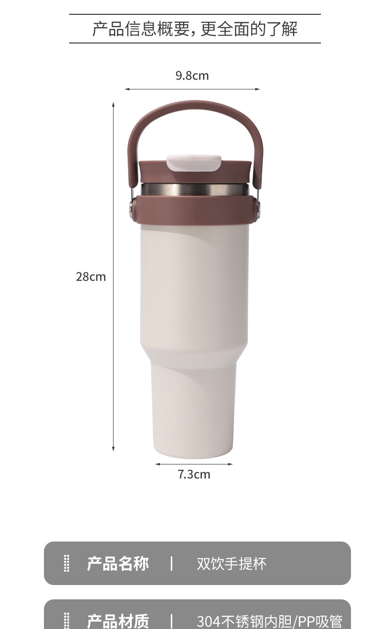 새로운 40 온스 자동차 컵 보온병 컵 내부 및 외부 304 스테인레스 스틸 대용량 가정용 핸들 빨대 더블 마시는 야외스토어 가기