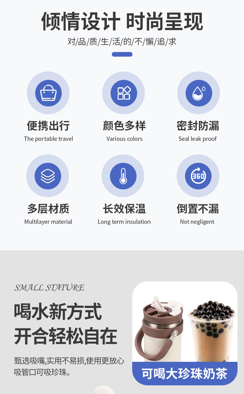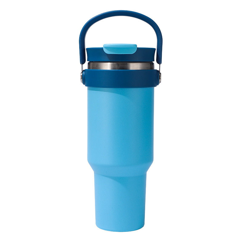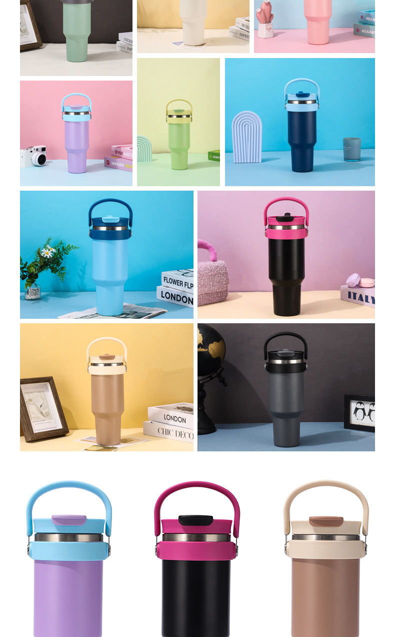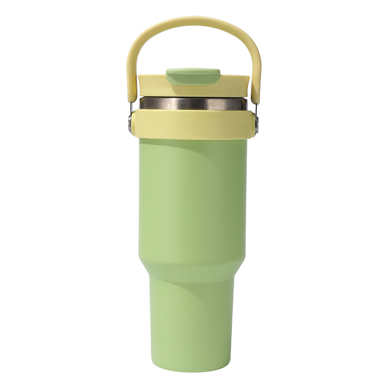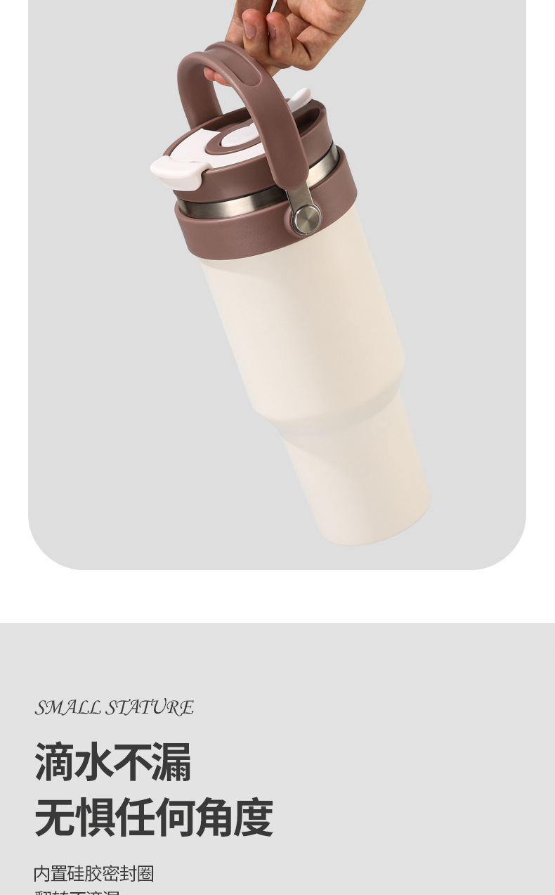 새로운 40 온스 자동차 컵 보온병 컵 내부 및 외부 304 스테인레스 스틸 대용량 가정용 핸들 빨대 더블 마시는 야외스토어 가기