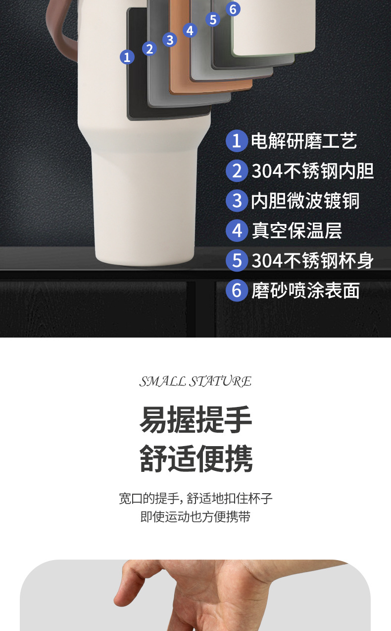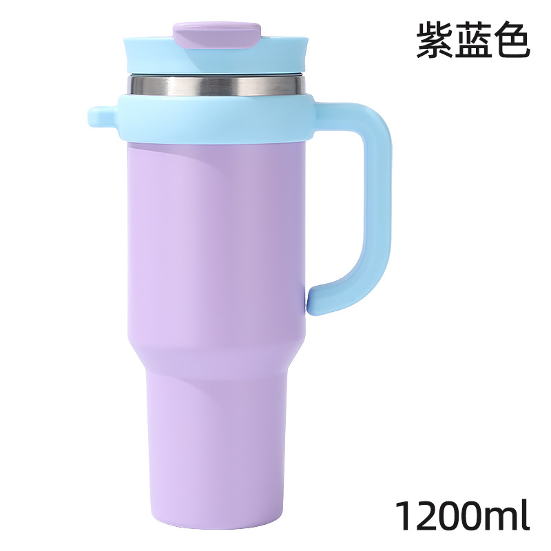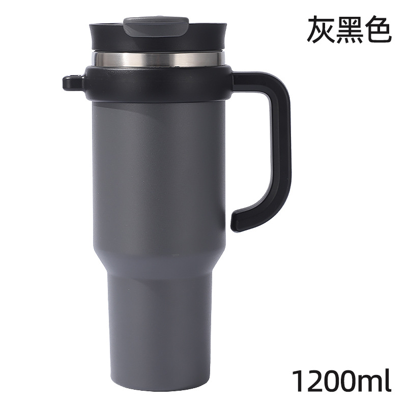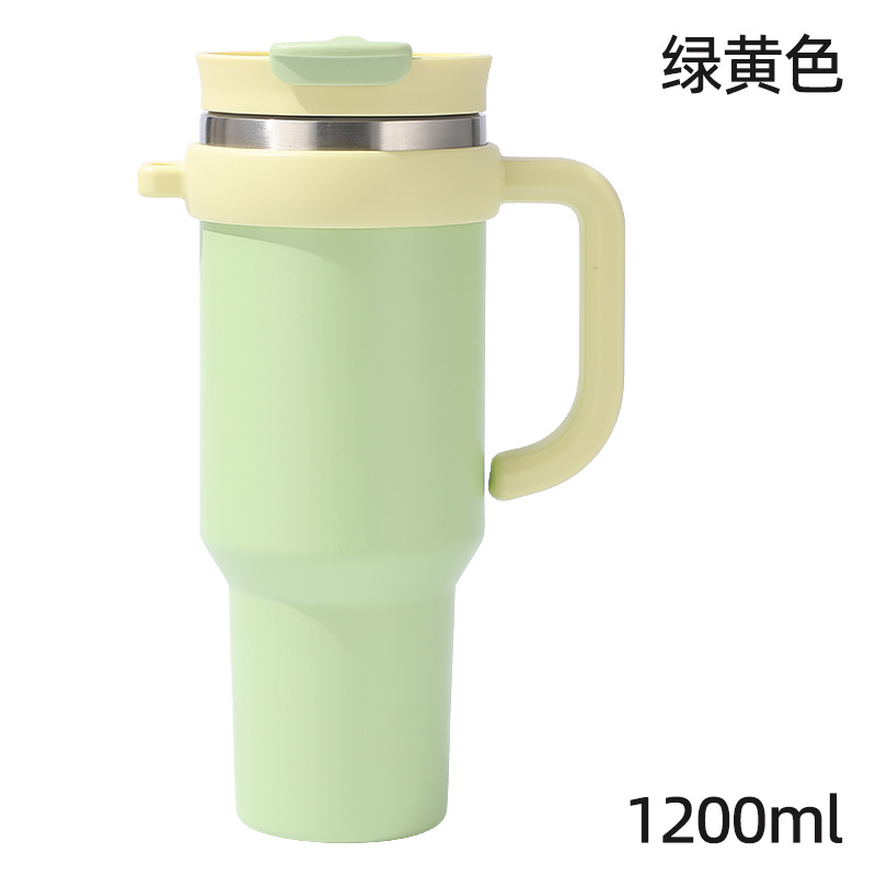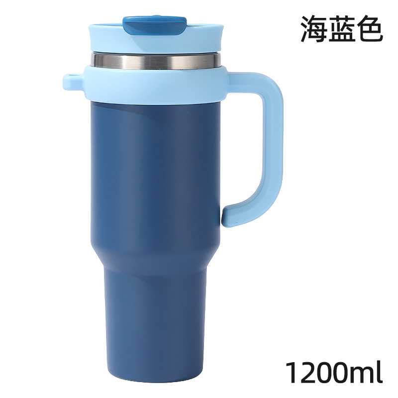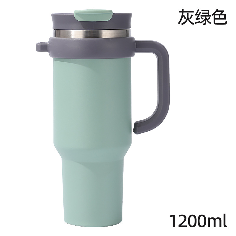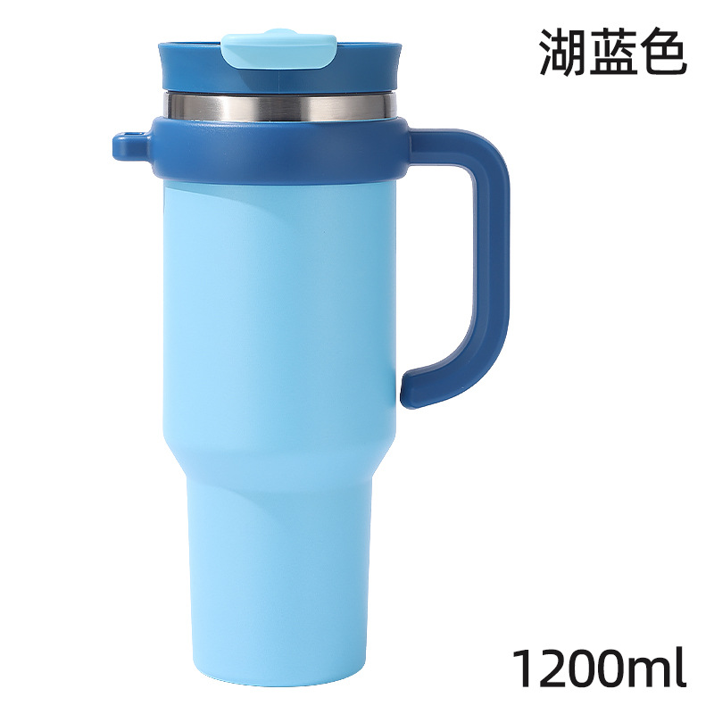 새로운 40 온스 자동차 컵 보온병 컵 내부 및 외부 304 스테인레스 스틸 대용량 가정용 핸들 빨대 더블 마시는 야외
