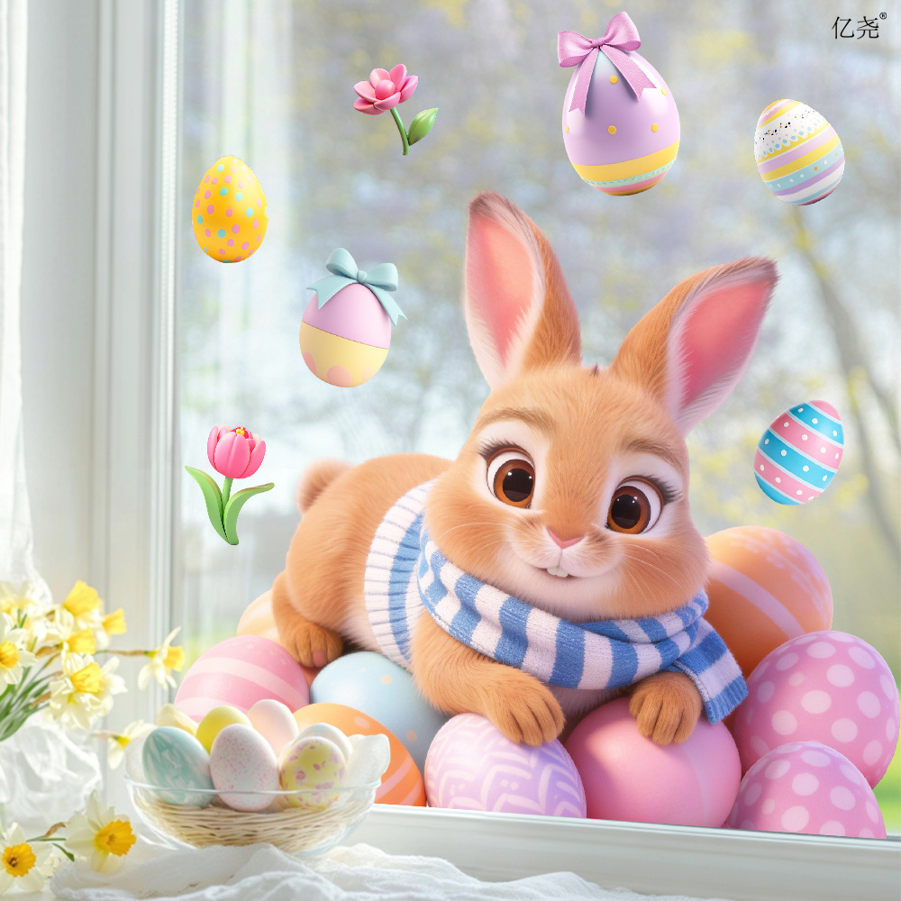 아이케 2026 신제품 부활절 토끼 양 벽 스티커 거실 창문 유리 장식 정전기 스티커