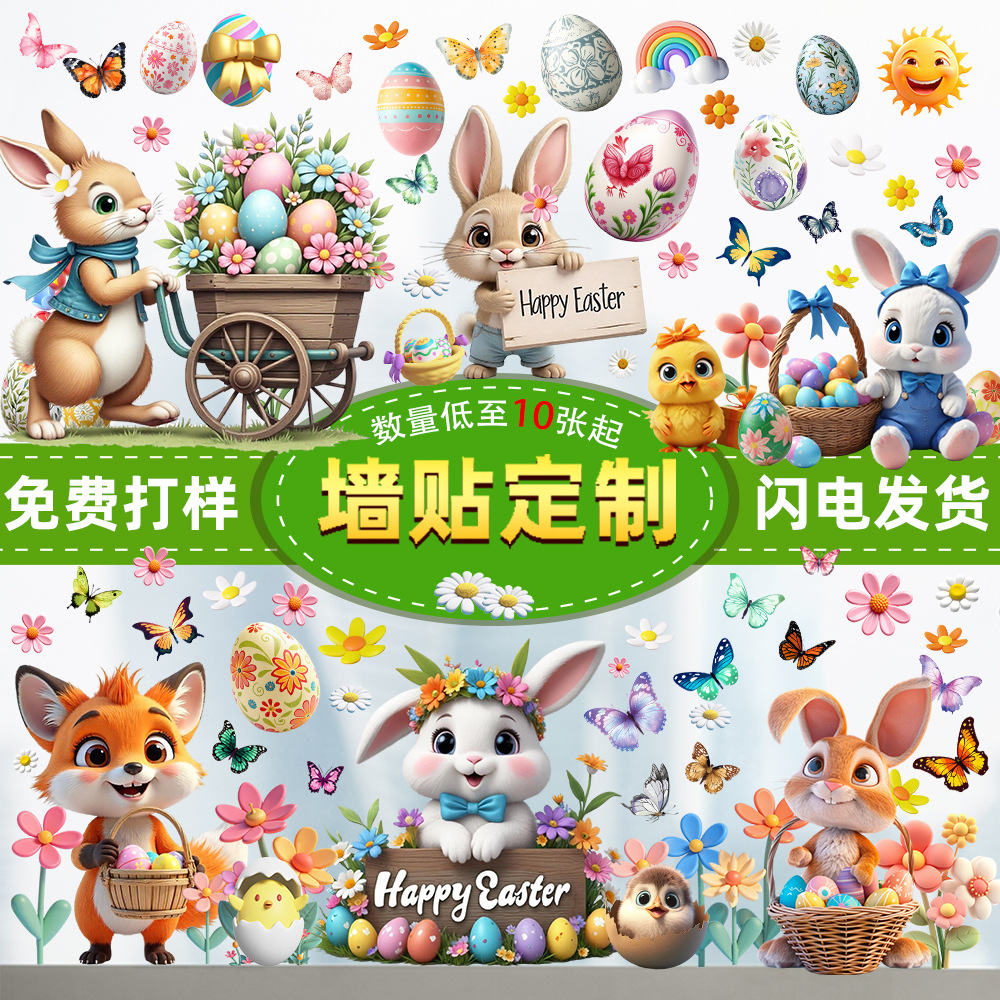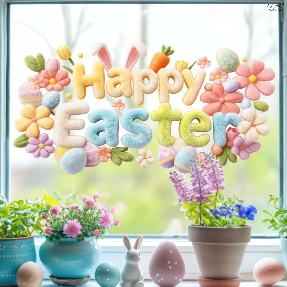 아이케 2026 신제품 부활절 토끼 양 벽 스티커 거실 창문 유리 장식 정전기 스티커스토어 가기
